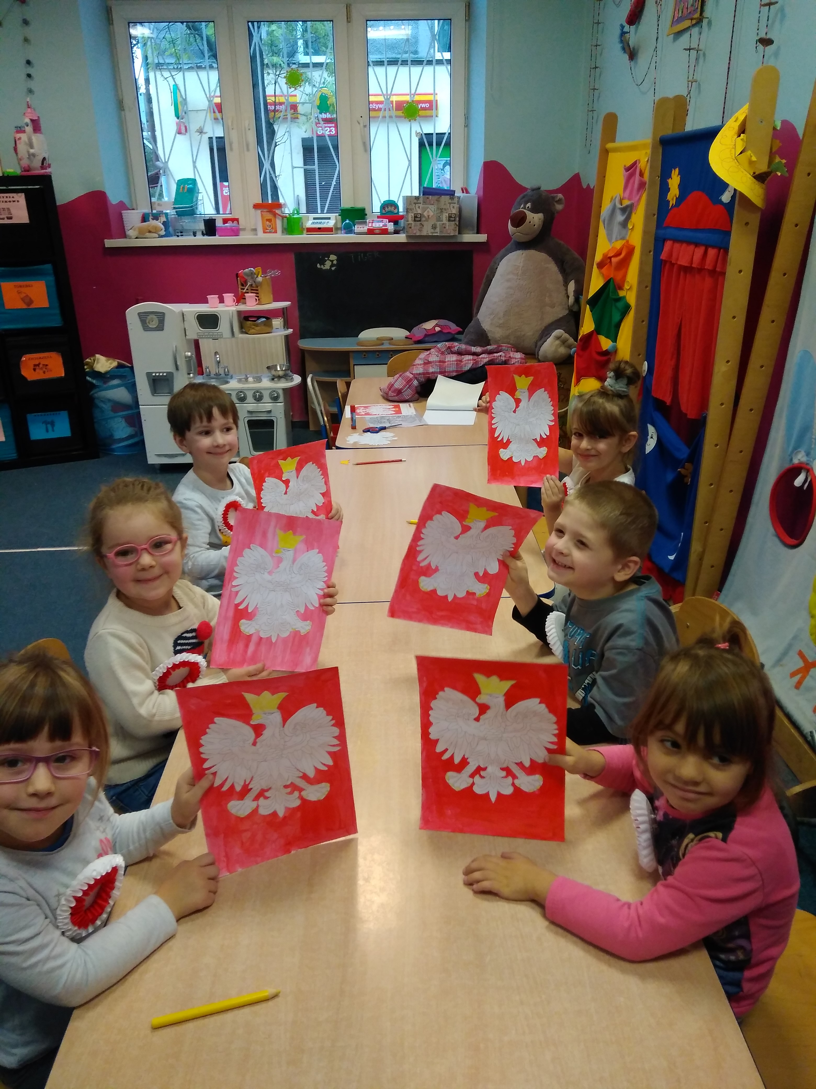 Dzieciaki z grupy „Radosne Krasnale” przygotowywały się do obchodów Święta Niepodległości. Wychowankowie poznali jak wygląda godło Polski i przygotowali piękne prace plastyczne, ponadto nauczyli się wierszyka „Kto ty jesteś?”, który z dumą recytowali.