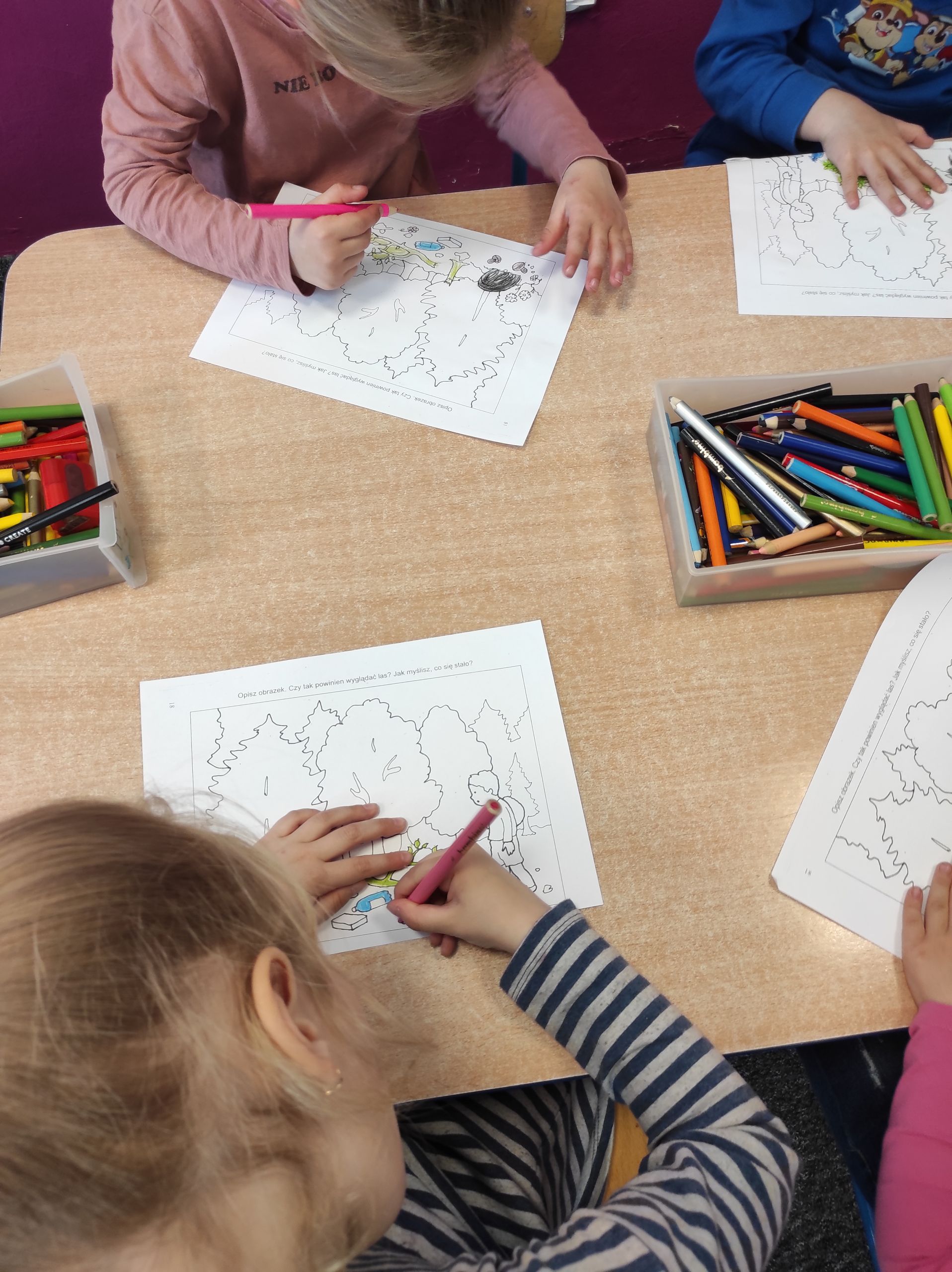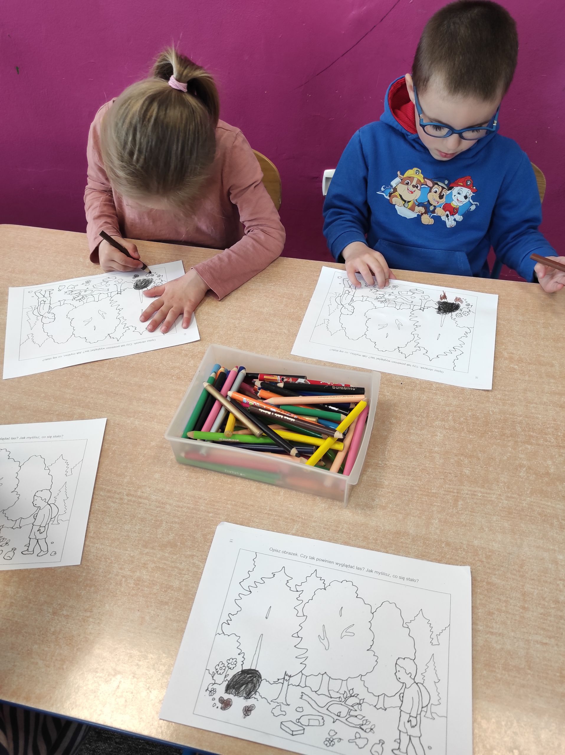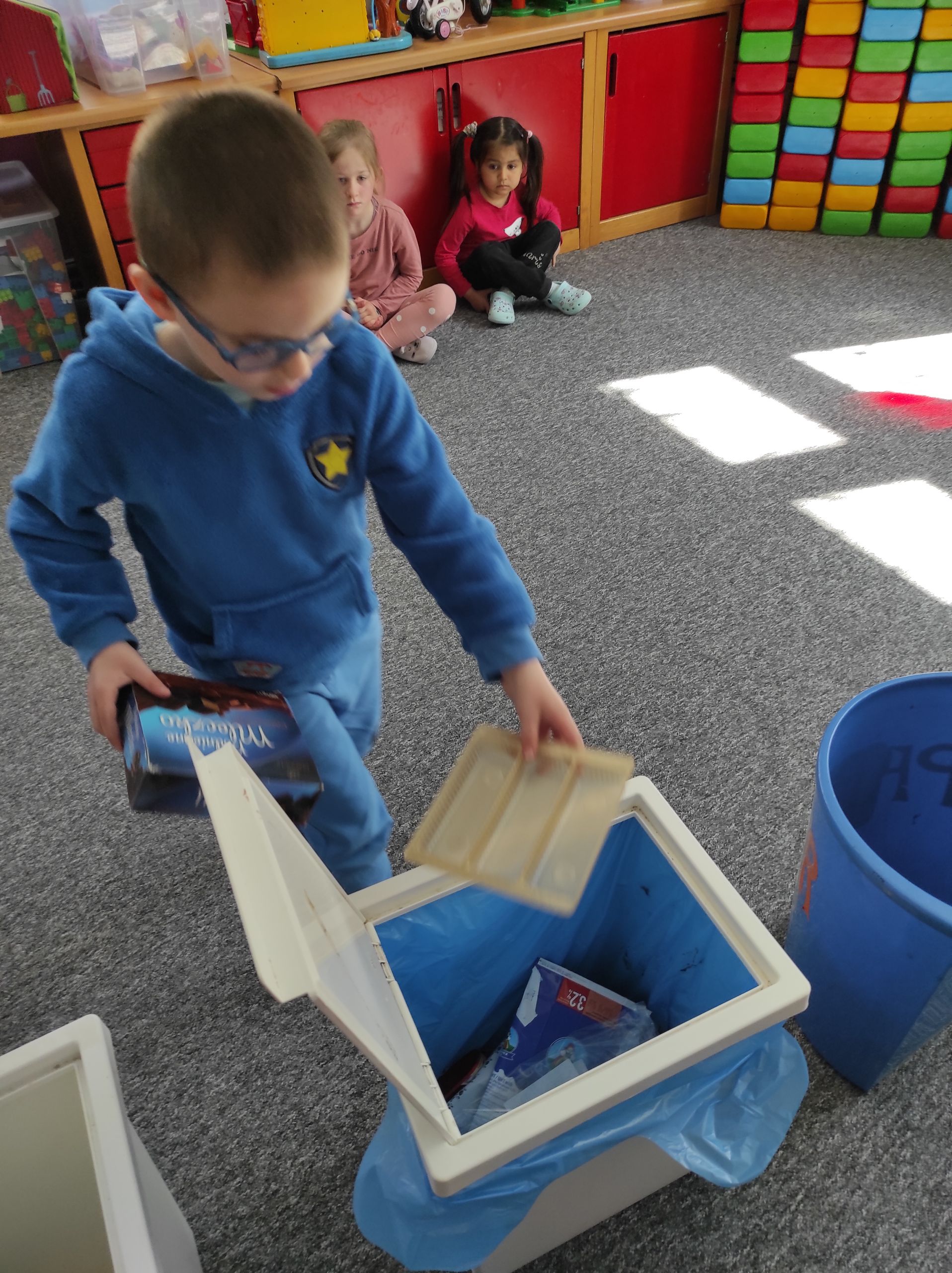 „Radosne Krasnale” również obchodziły w naszym Centrum Dzień Ziemi. 22.04.2022r. przedszkolaki przyniosły do naszego Centrum różne śmieci, które następnie uczyły się segregować. Poznaliśmy wszystkie kolory koszy oraz jaki rodzaj śmieci do nich wrzucamy i przede wszystkim dlaczego jest to tak bardzo ważne dla zdrowia naszej Ziemi! Dodatkowo dzieci wykonały prace grafomotoryczne, w których rozmawiały jak powinien wyglądać las i jak każdy z nas powinien się w nim zachowywać. Jesteśmy bardzo dumne z naszych maluchów, ponieważ wiedziały bardzo dużo i czujemy dużą nadzieję, że rośnie nam takie pokolenie, które chce dbać o naszą planetę.