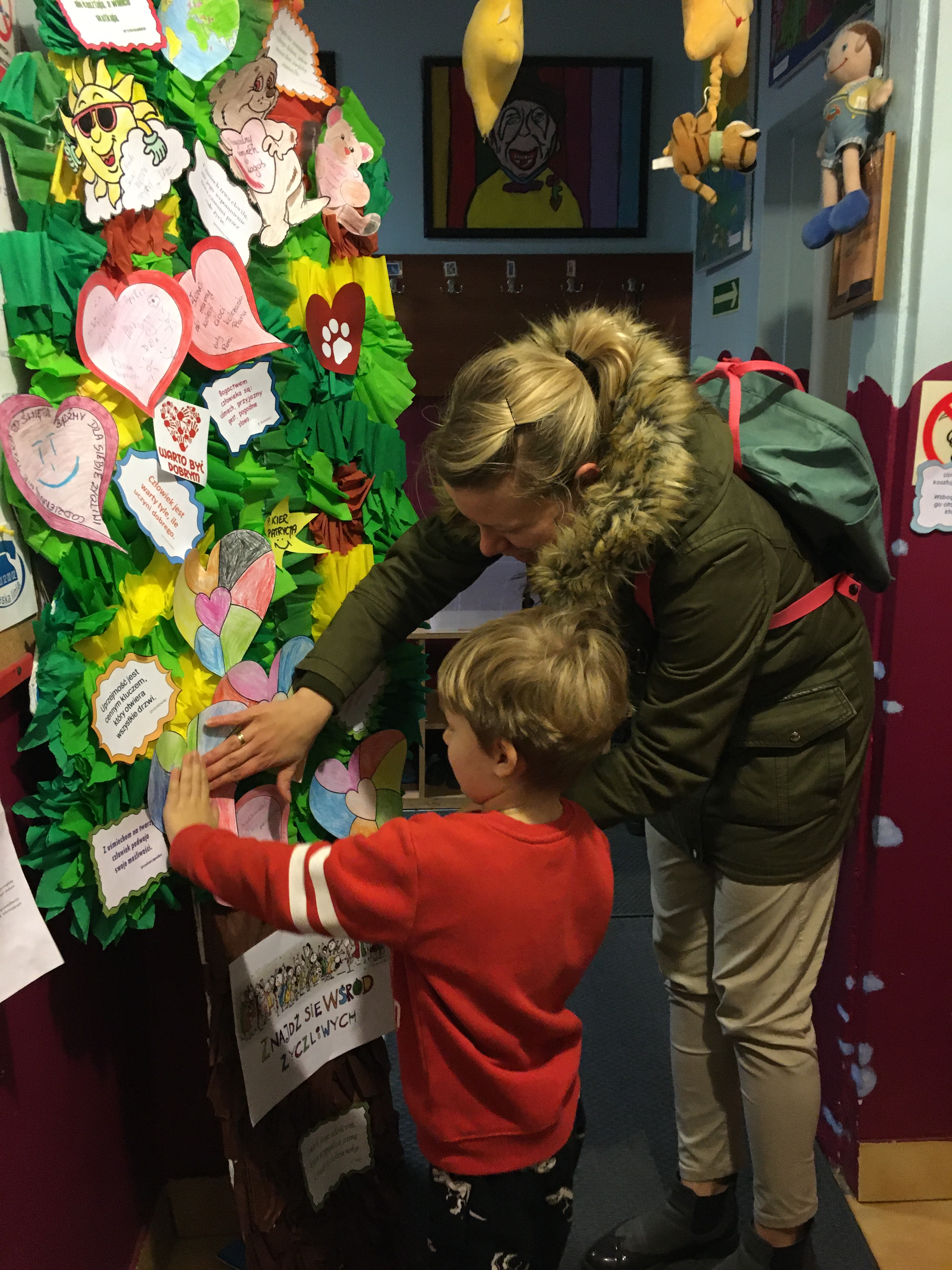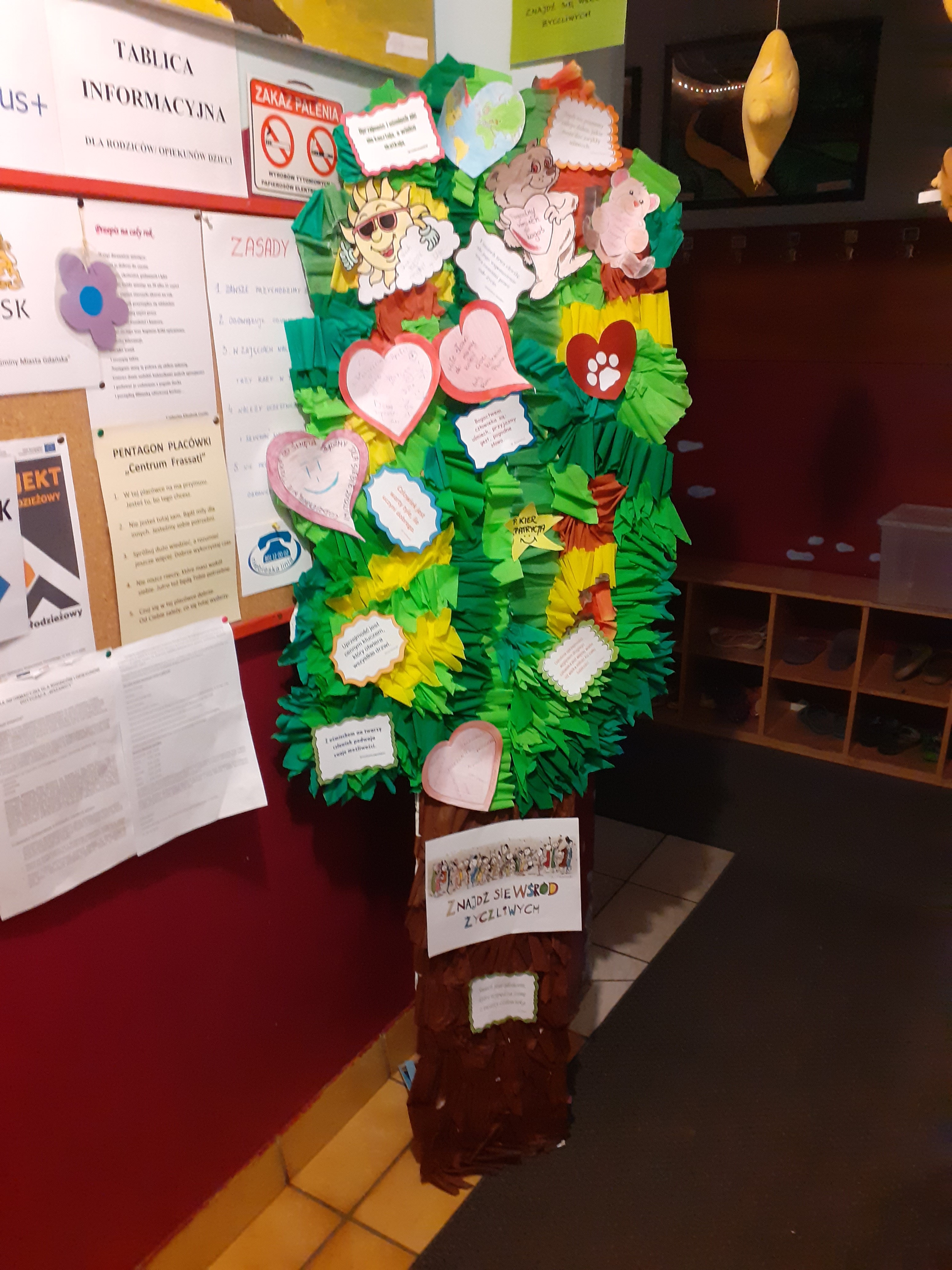 21.11.2019r. obchodziliśmy w naszym Centrum „Dzień Życzliwości”. Dla „Anielskiej Krainy” był to wręcz projekt, w który zaangażowali się całym sercem. W trakcie zajęć dzieci przygotowały piękne drzewo, na którym w czwartek pojawiły się same serdeczności. Każdy mógł zrobić lub napisać coś od serca. „Radosne Krasnale” oraz ich rodzice również wzięli udział w projekcie, tworzyli sentencje i rysunki, które następnie wspólnie zawiesili na drzewie. Teraz drzewo stoi na stałe w naszym Centrum i przypomina nam, że najlepiej jest być życzliwym codziennie, a nie tylko od święta. Bądźmy życzliwi, świat jest wtedy piękniejszy! 🙂