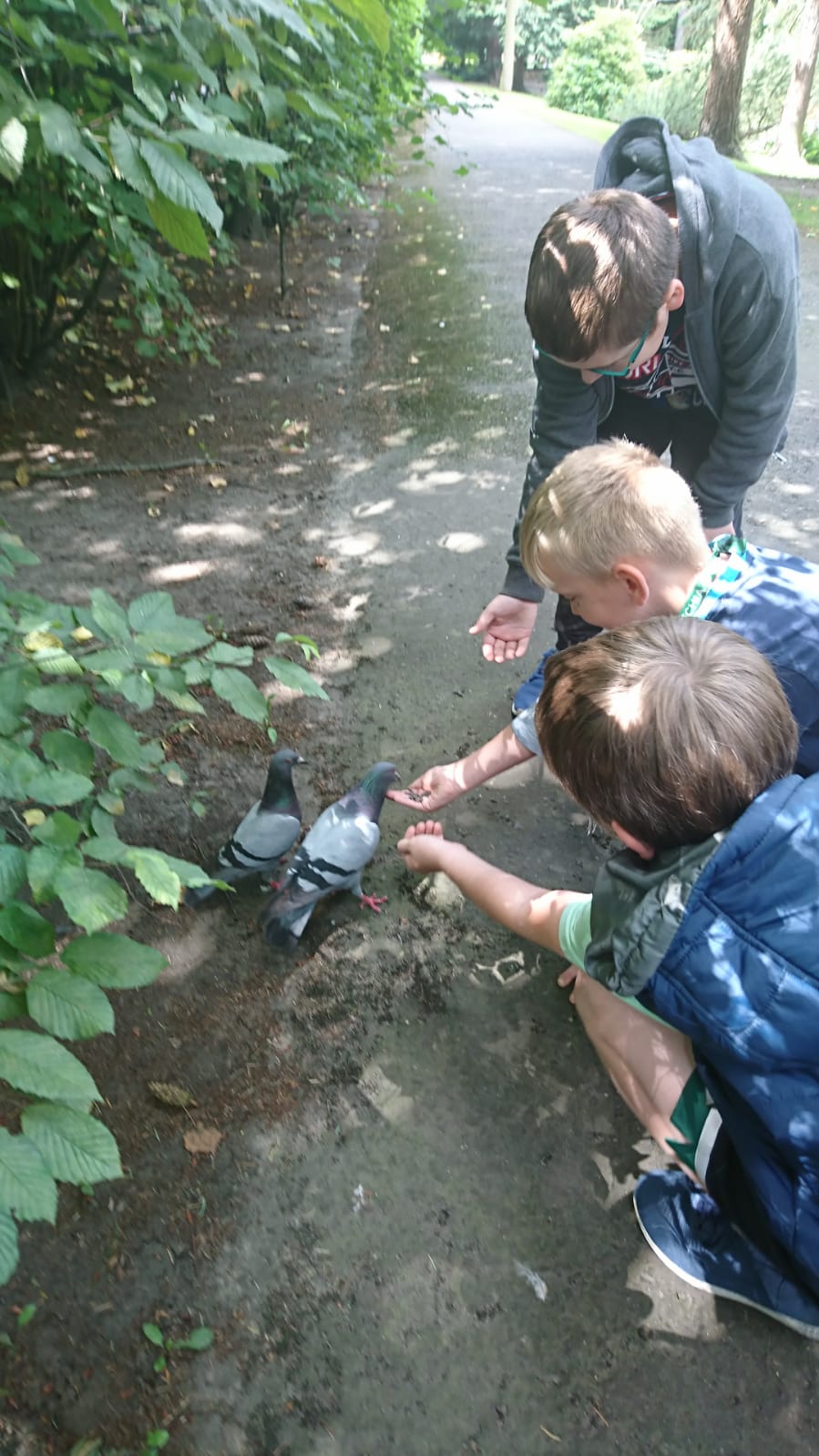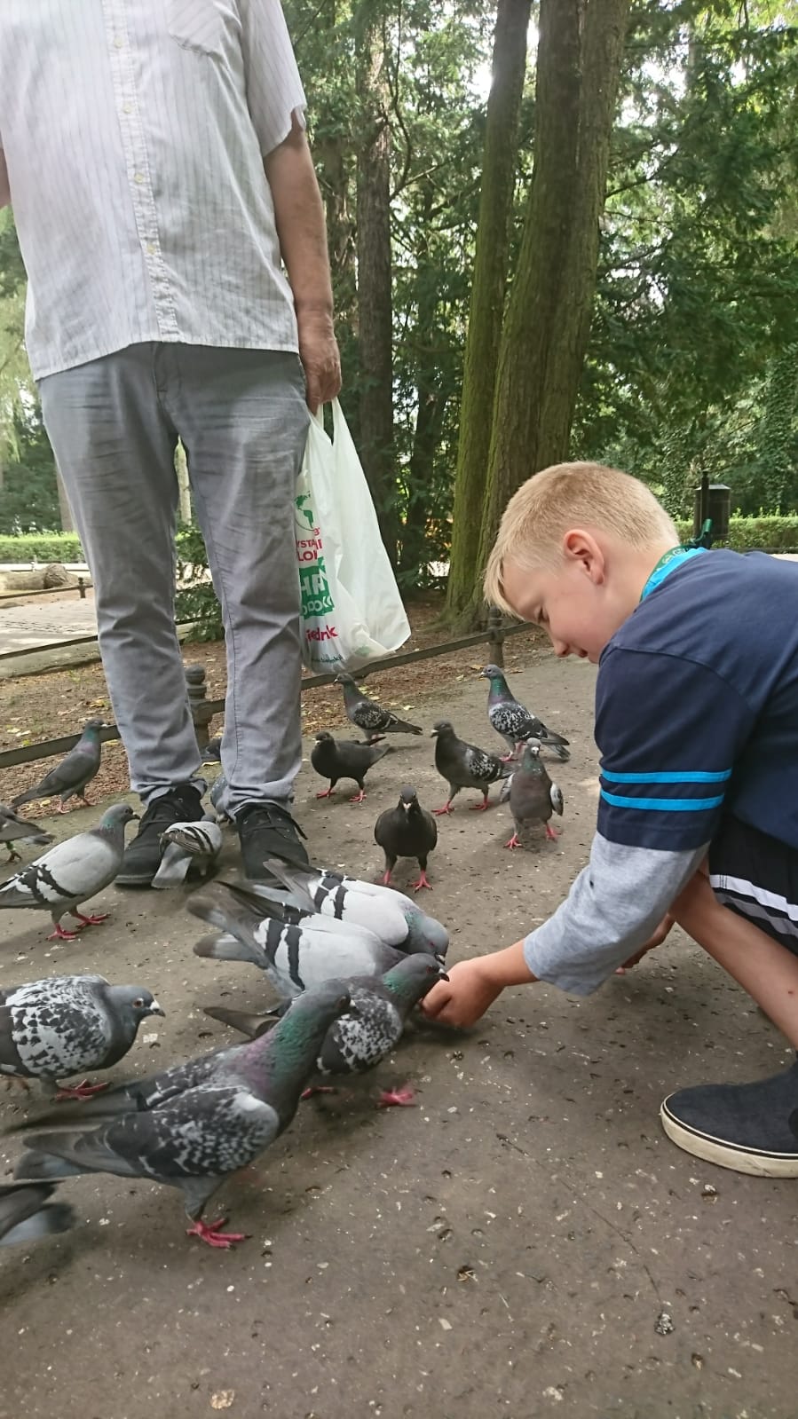 We wtorek 16.07.2019r. wybraliśmy się na spacer do Parku Oliwskiego. Niezwykłą przyjemność i radość sprawiło nam tam spotkanie z gołębiami. Wiemy, że najlepiej nie karmić ich chlebem, a ziarnami i tak też zrobiliśmy. To był piękny czas blisko natury i chociaż aktywny, to przyniósł dużo spokoju.