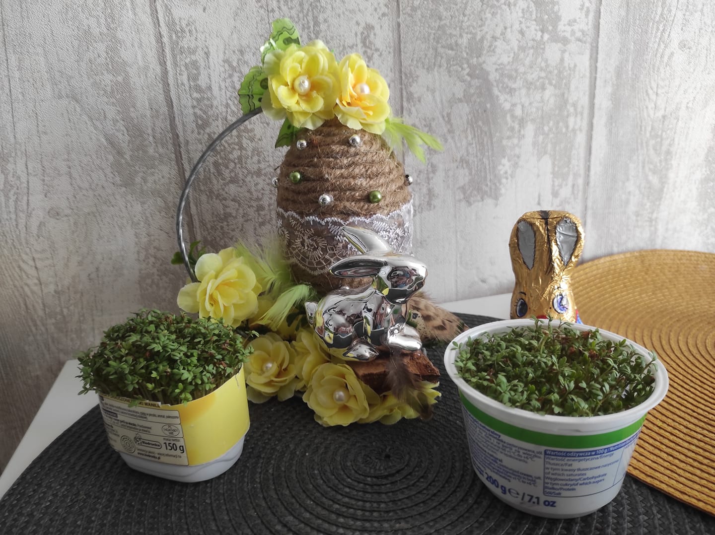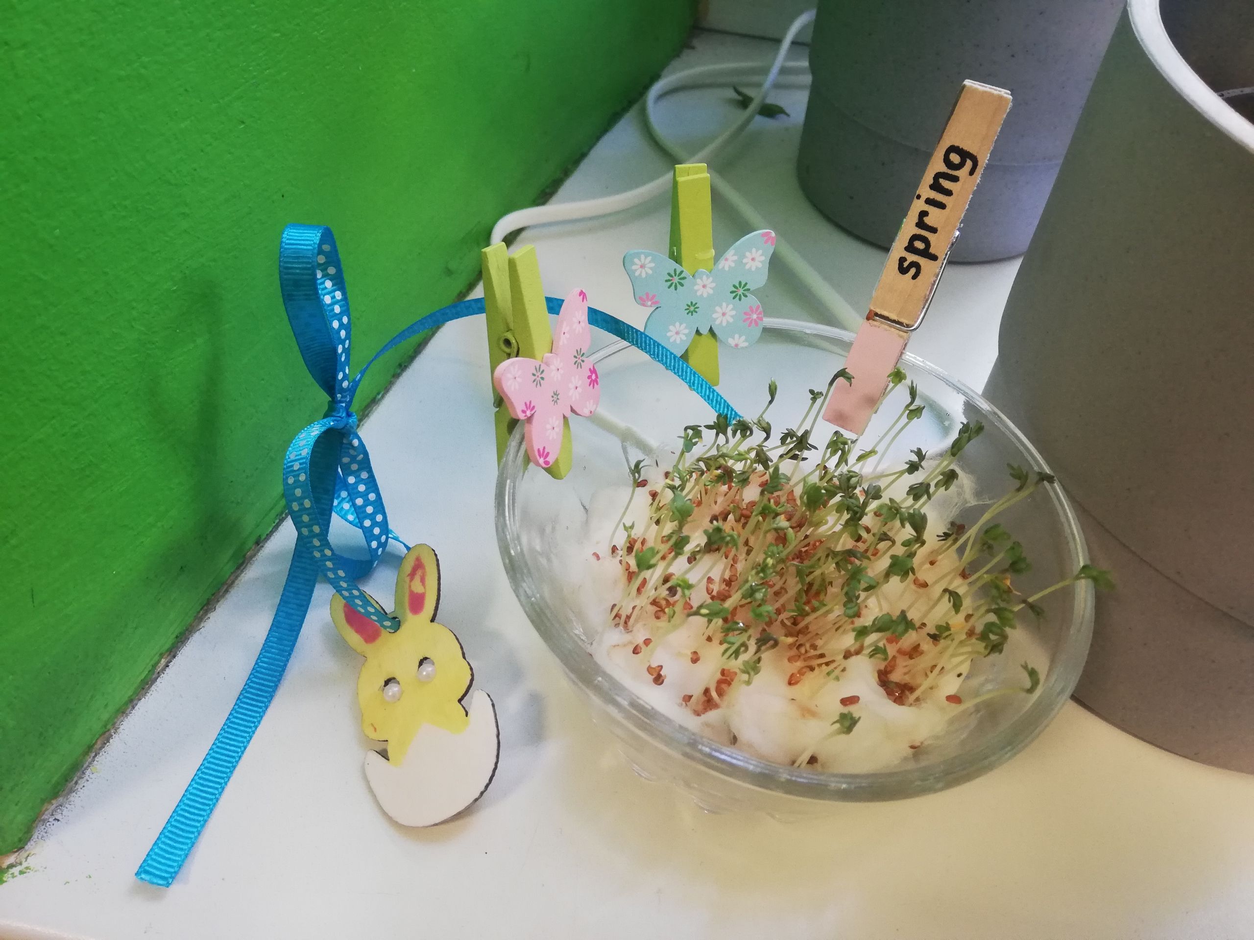 W Świetlicy przez cały tydzień trwały przygotowania do Świąt Wielkanocnych i możemy w końcu stwierdzić, że zakończyliśmy je sukcesem 🙂 Rzeżucha zasiana kilka dni temu zaczęła pięknie rozkwitać.