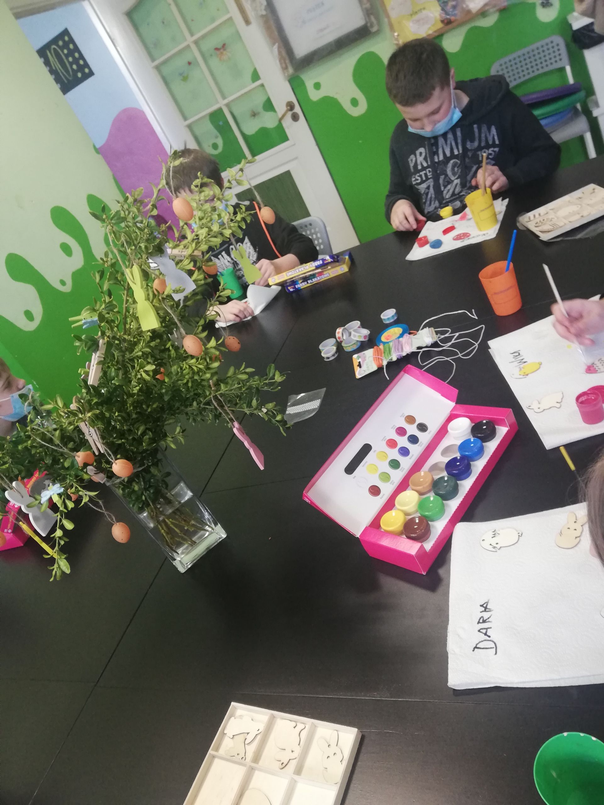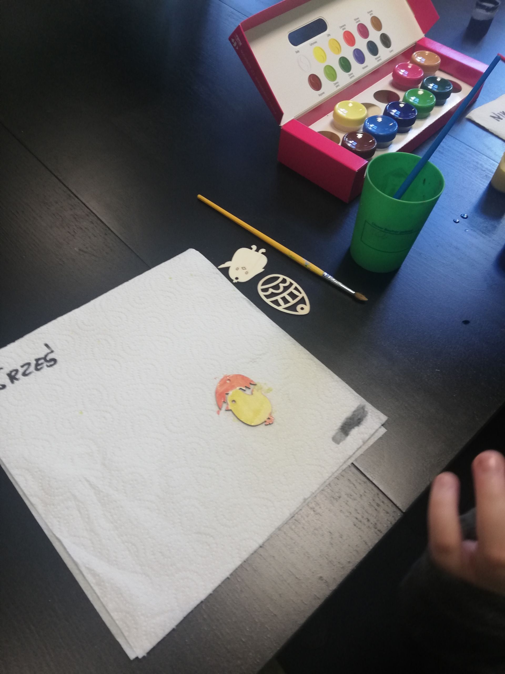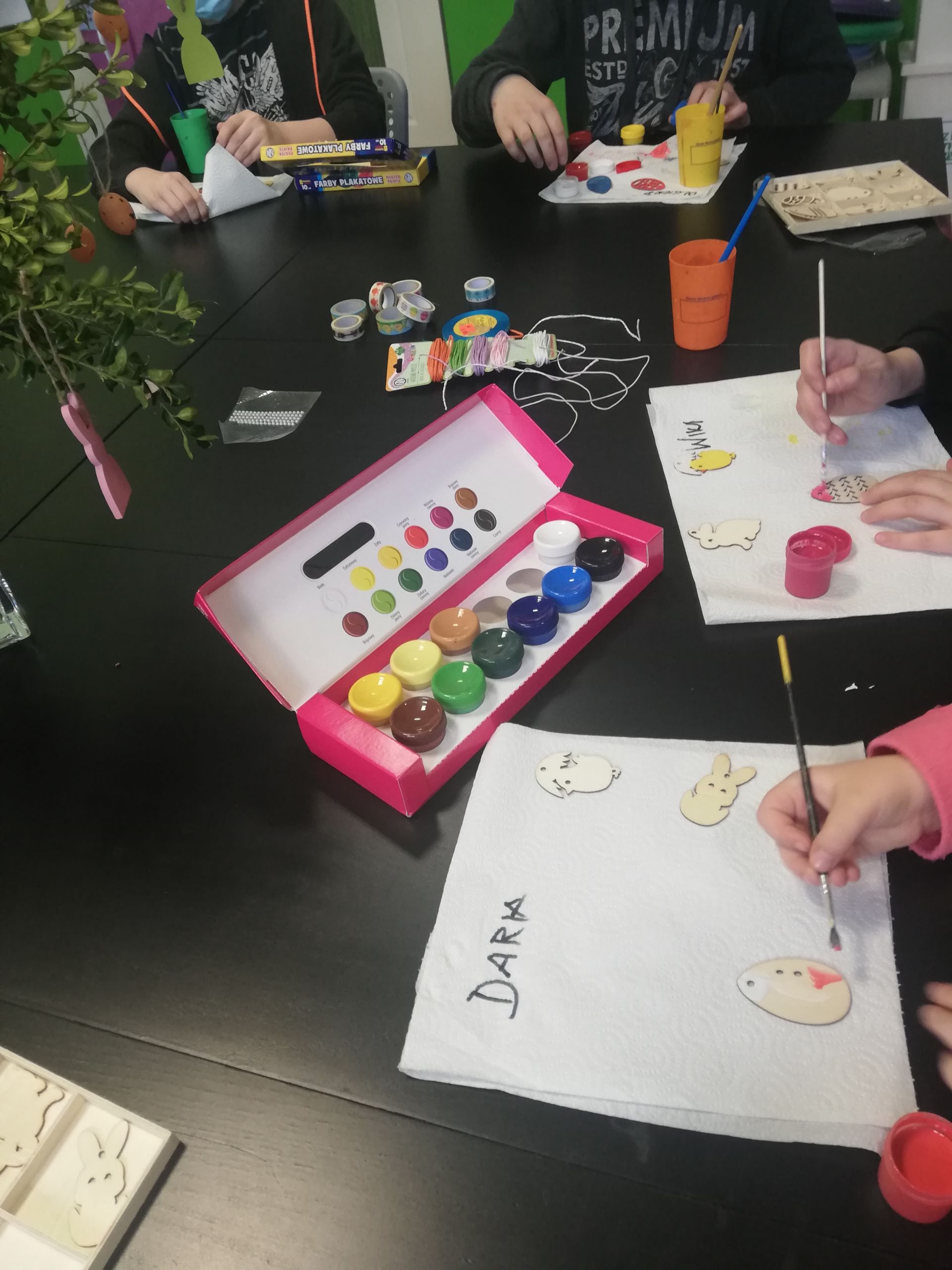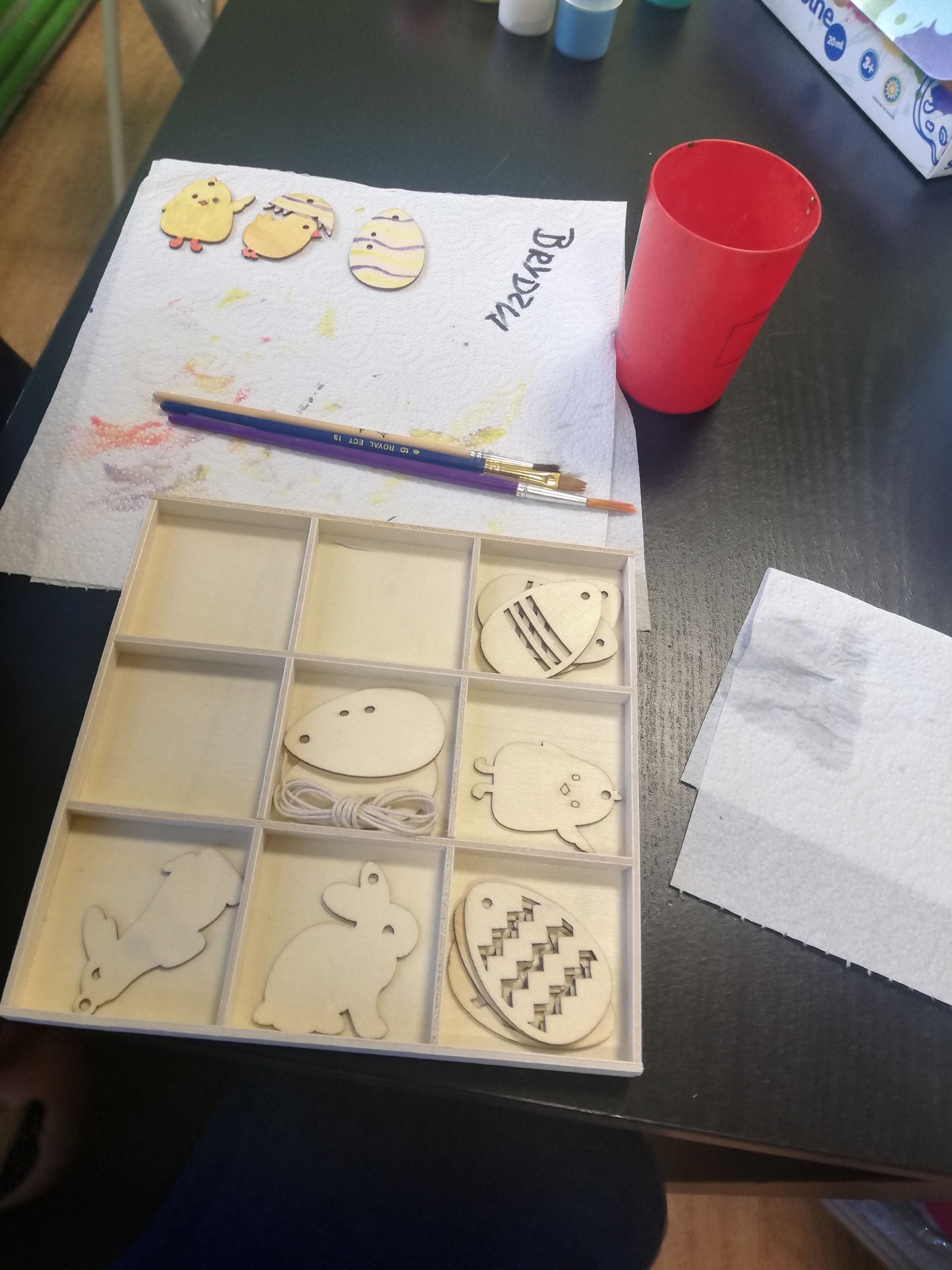 30.03.2021 skupiliśmy się na ozdobach Wielkanocnych. Dzieci poruszyły swoją kreatywność i przy pomocy farbek zmieniły drewniane kształty symboli Wielkiej Nocy w piękne kolorowe dekoracje.