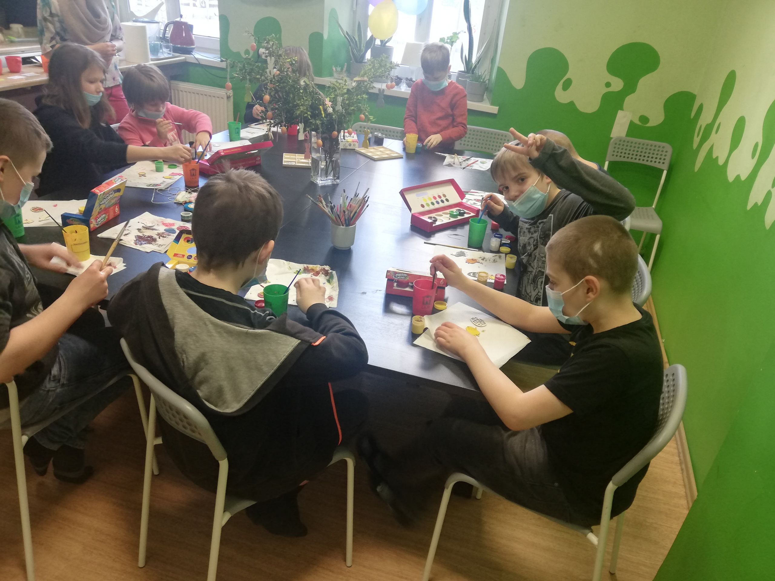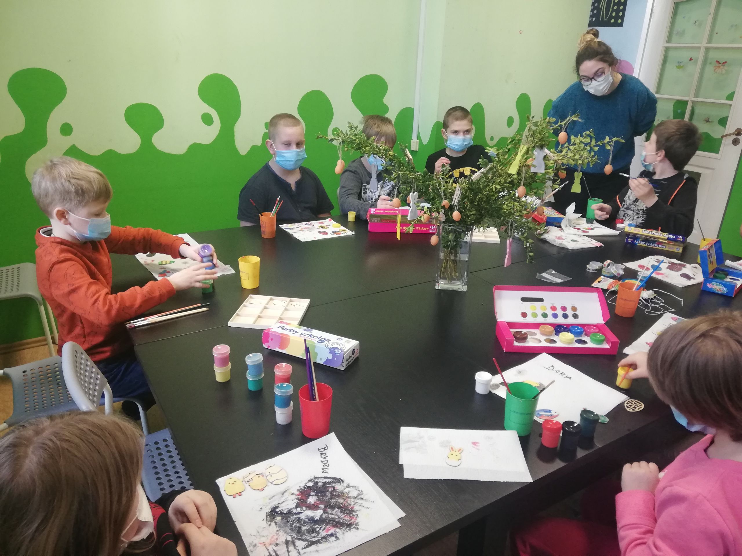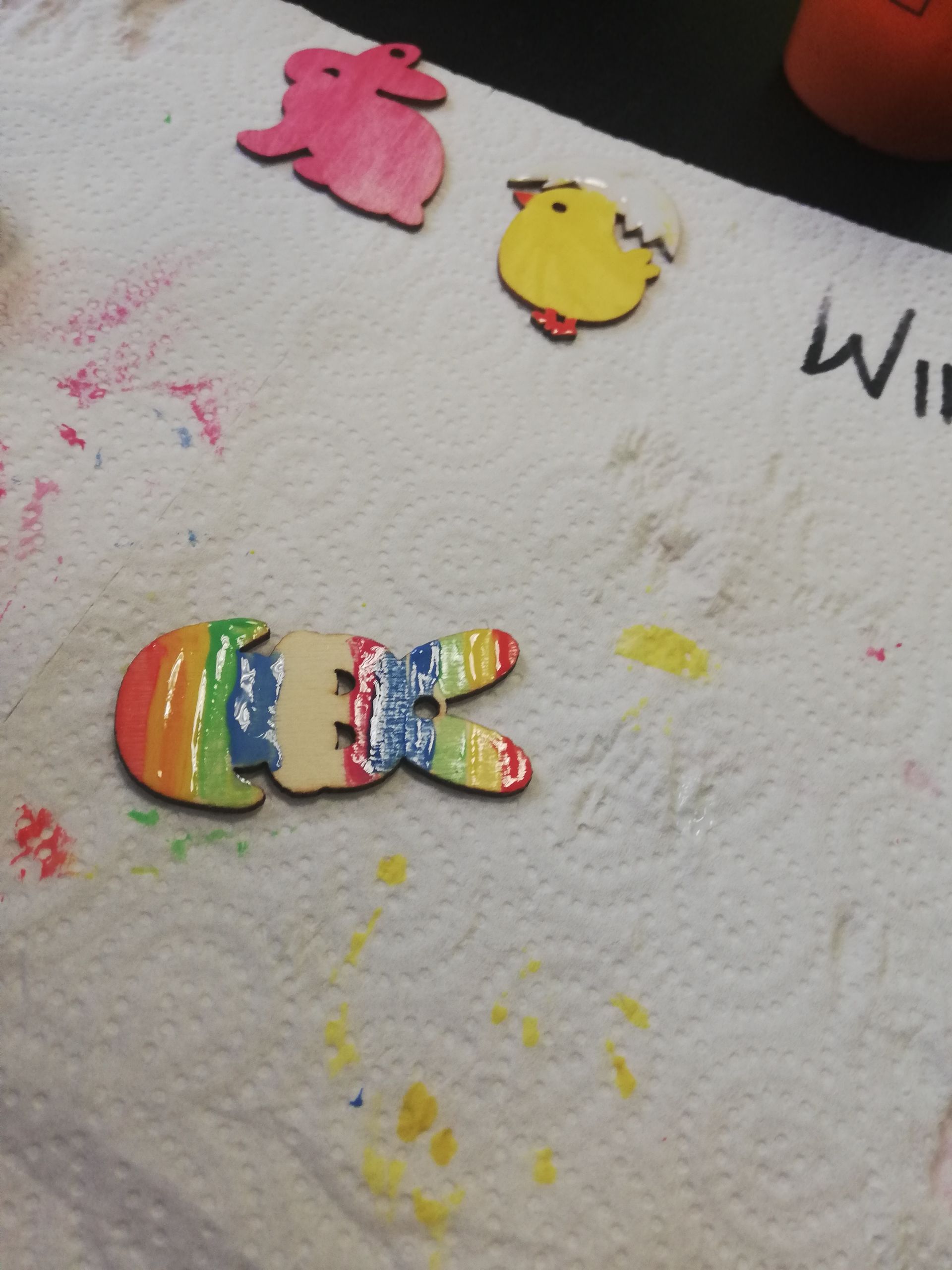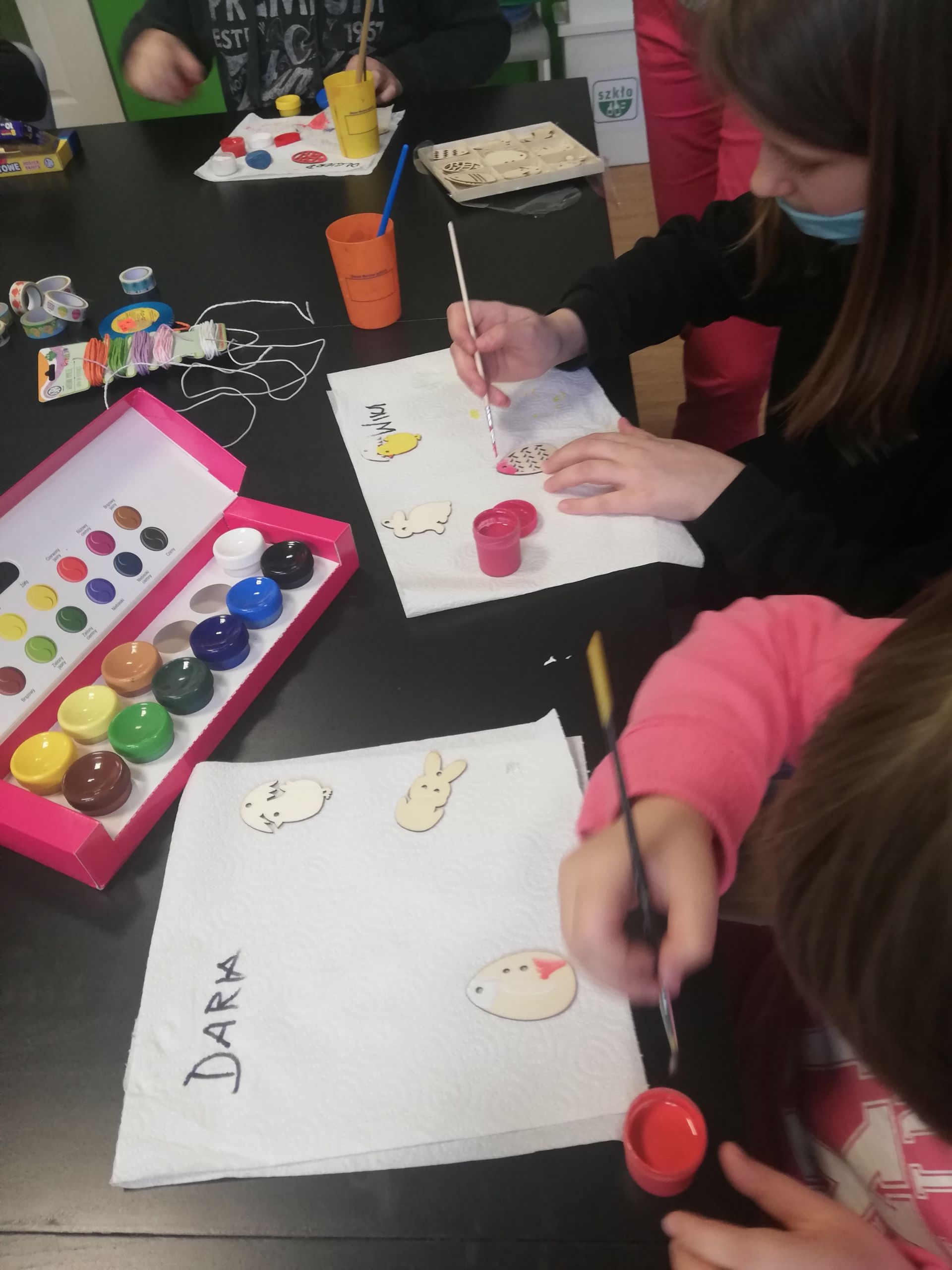 30.03.2021 skupiliśmy się na ozdobach Wielkanocnych. Dzieci poruszyły swoją kreatywność i przy pomocy farbek zmieniły drewniane kształty symboli Wielkiej Nocy w piękne kolorowe dekoracje.