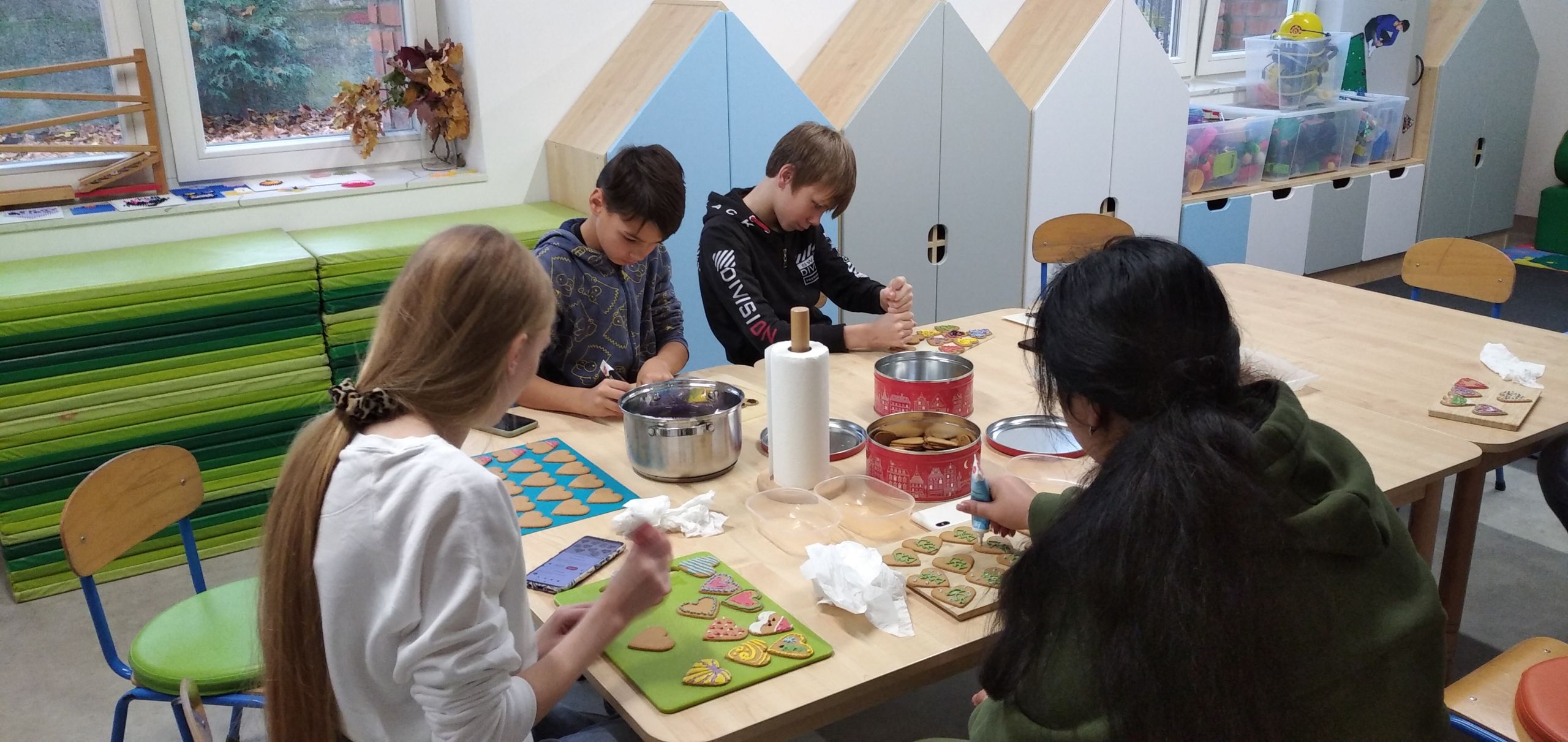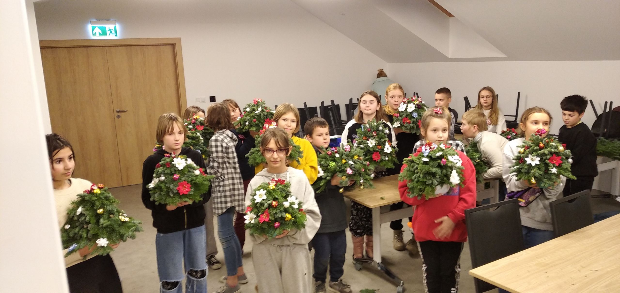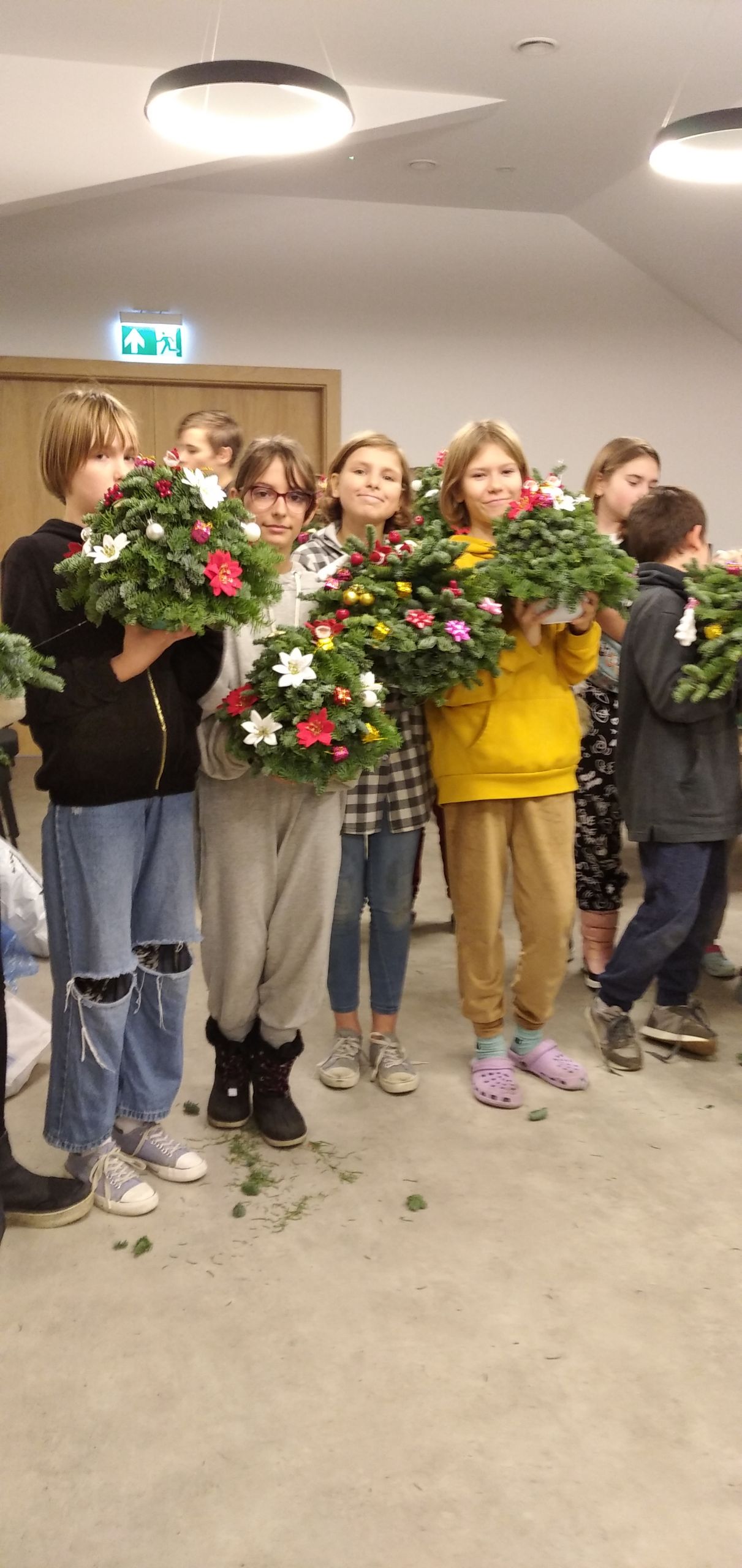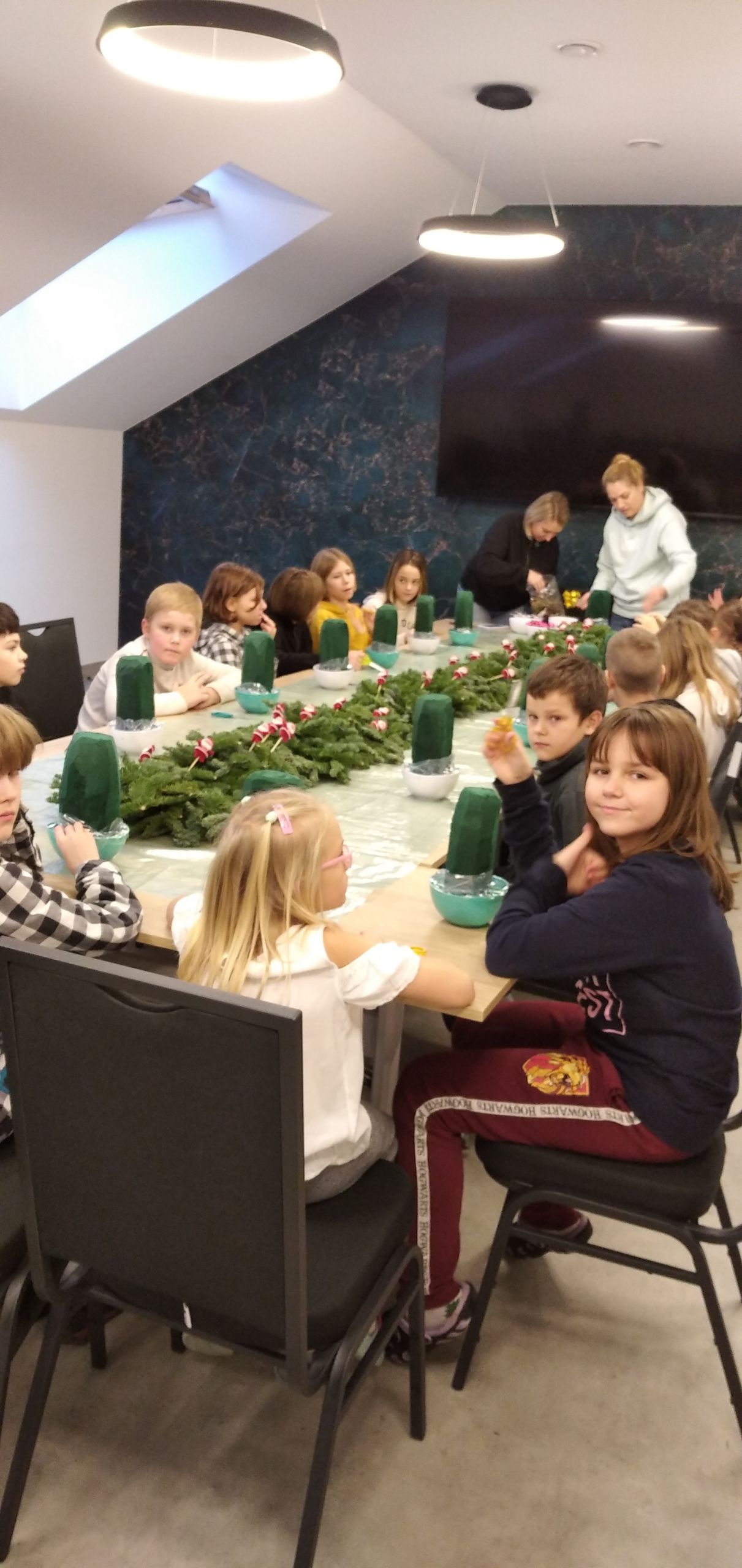 Poza codziennymi aktywnościami robiliśmy stroiki świąteczne, braliśmy udział w warsztatach, grach i zabawach integracyjnych.