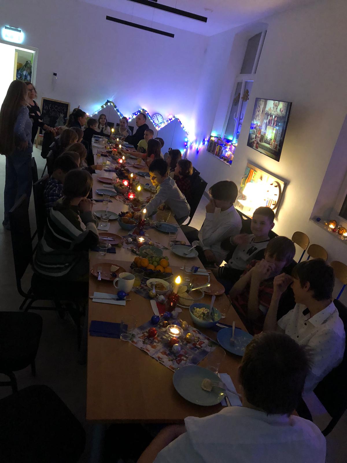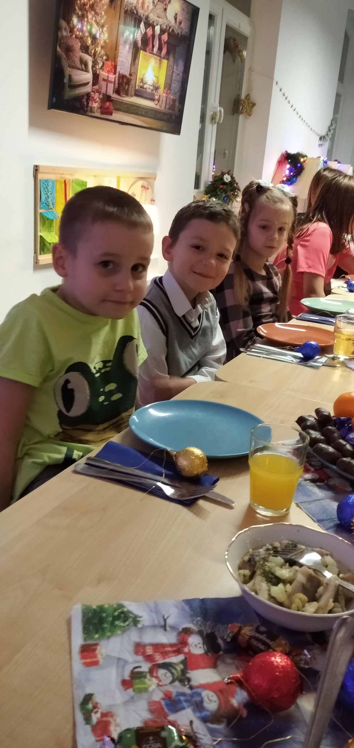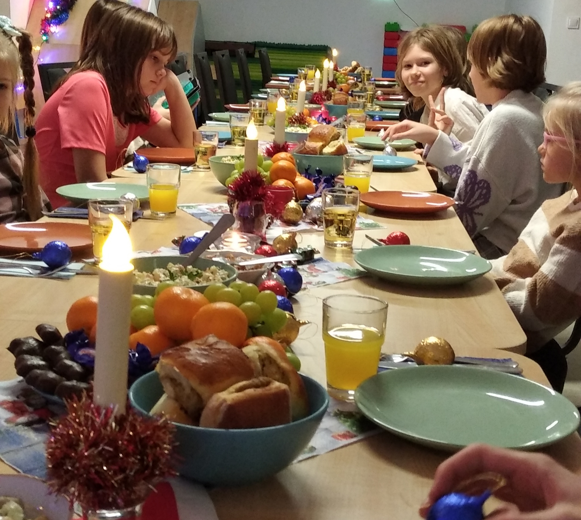 Wszyscy, przy wspólnym stole spędziliśmy radosny wigilijny czas, dzieląc się opłatkiem, smakując tradycyjnych potraw, śpiewając kolędy. Nie zabrakło też niespodzianki od Świętego Mikołaja.
