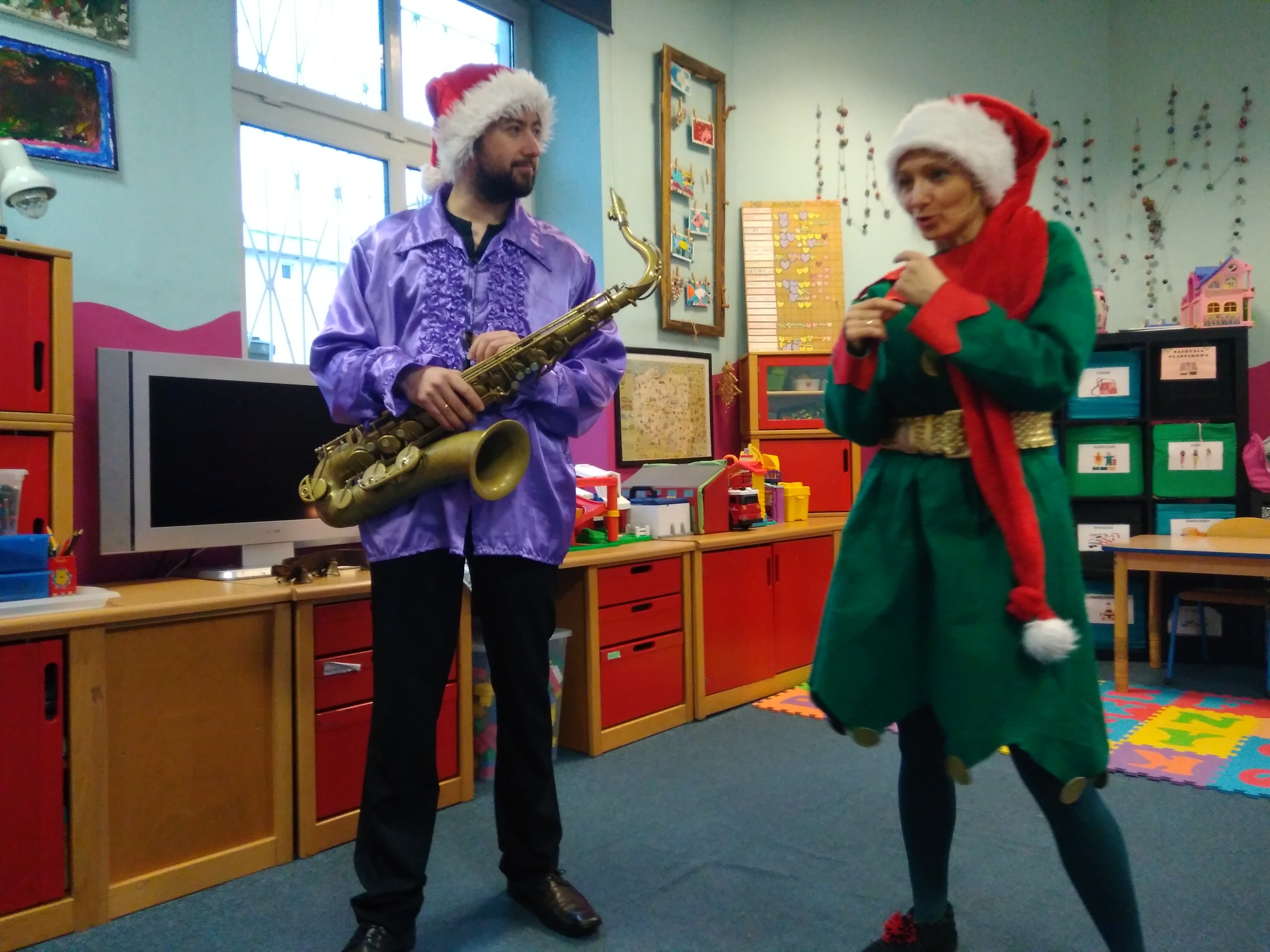 13.12.2018 ostatni raz w tym roku odwiedzili nas nasi ulubieni artyści, którzy tym razem opowiedzieli nam bajkę o „Świętym Mikołaju i świątecznym życzeniu”. Wysłuchaliśmy opowiadania, poznaliśmy saksofon i pianino elektryczne, śpiewaliśmy kolędy i tańczyliśmy w rytm muzyki. Bardzo nam się podobało! 🙂