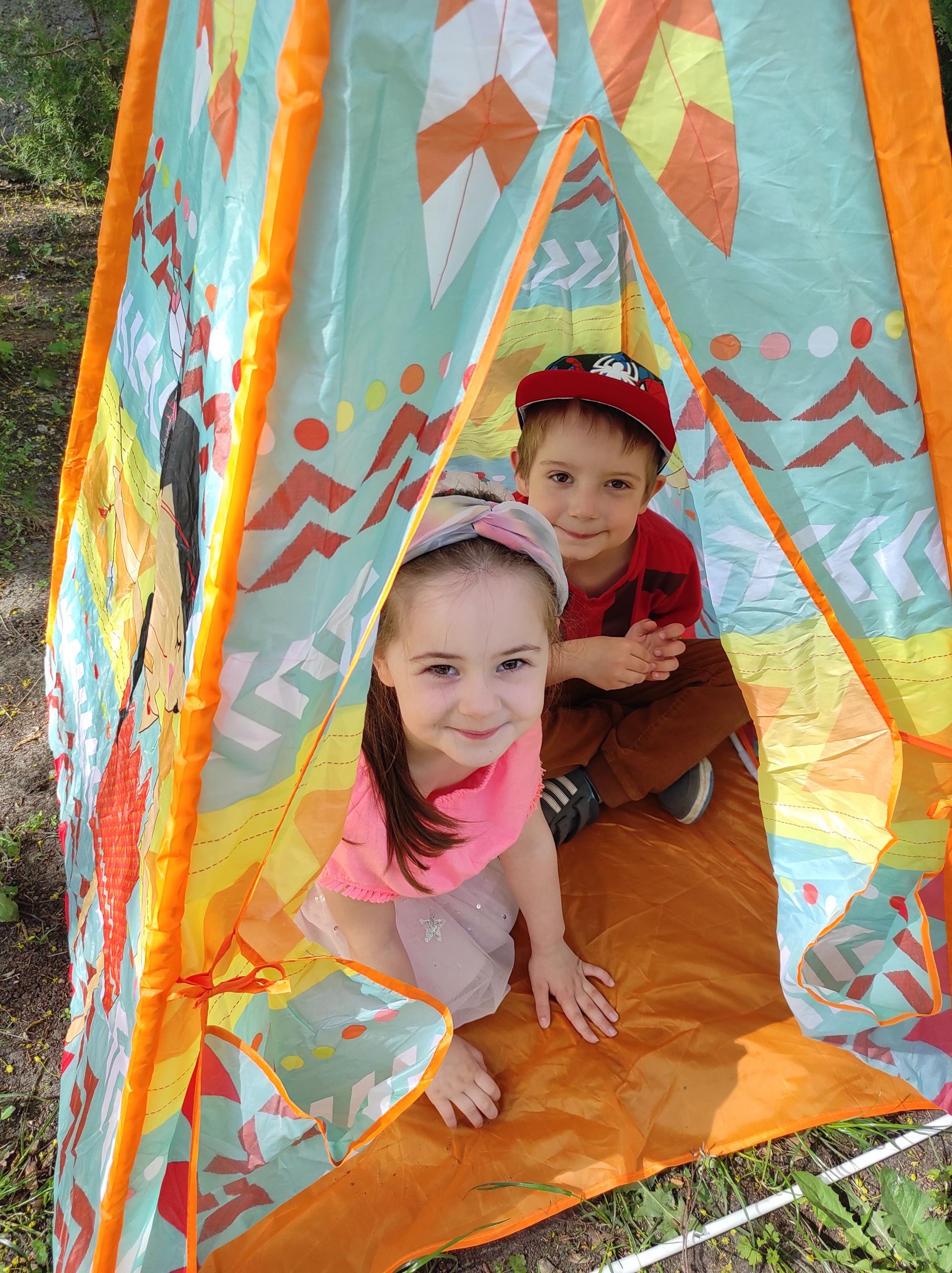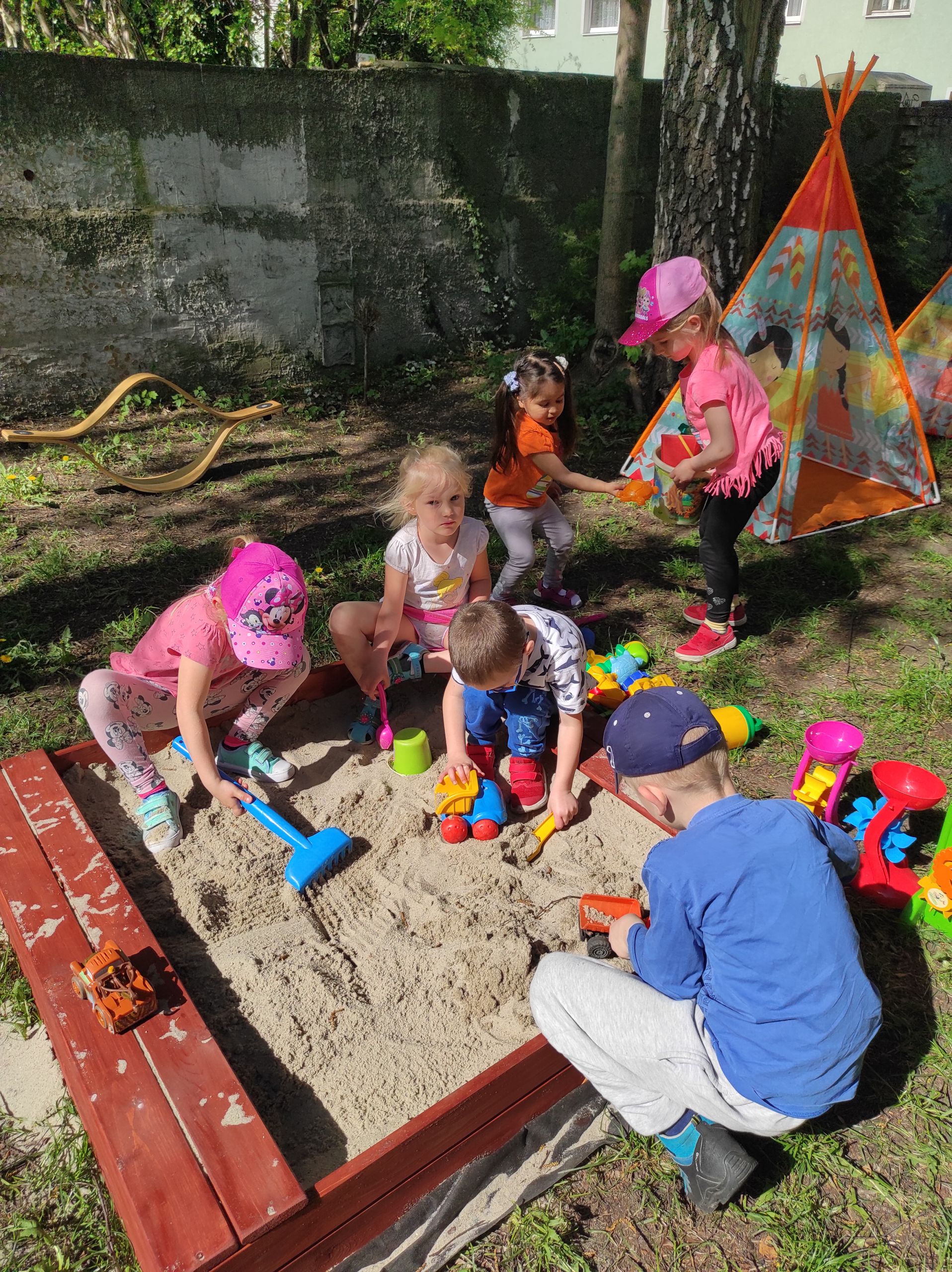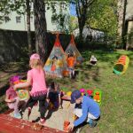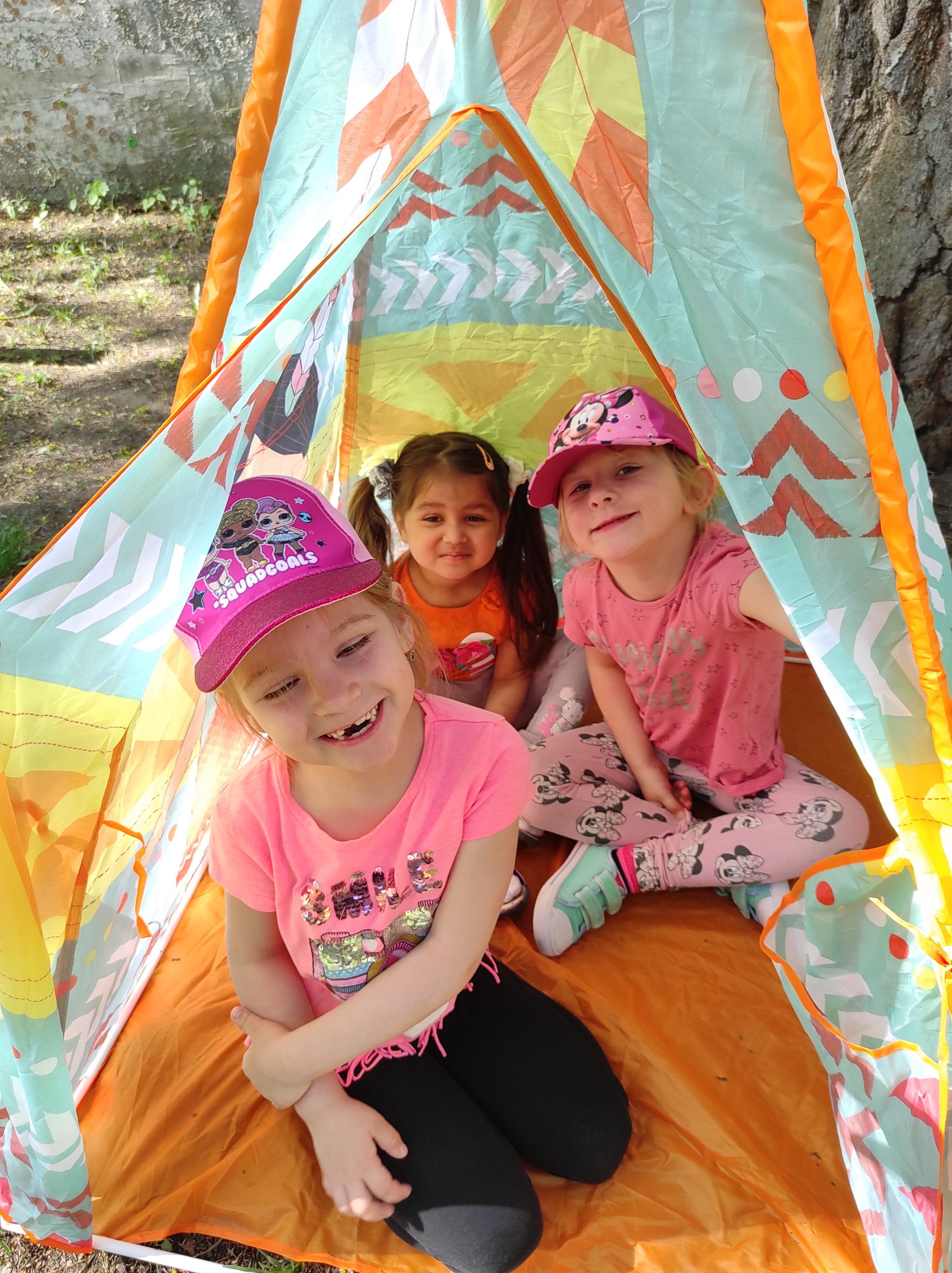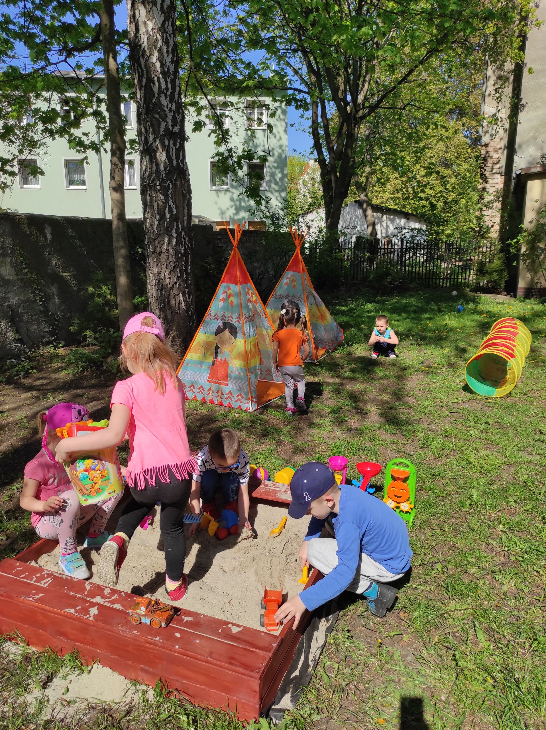 19.05.2021r. „Radosne Krasnale” skorzystały z chwili dobrej pogody i złapały trochę promieni słonecznych w naszym ogródku. Bawiliśmy się w indiańską wioskę i dowiedzieliśmy nieco o innych kulturach 🙂 Każdy moment jest dobry na odrobinę edukacji przez zabawę. Dodatkowo było dużo biegania i pracowania nad motoryką dużą i małą, a wszystko we wspaniałych okolicznościach przyrody.
