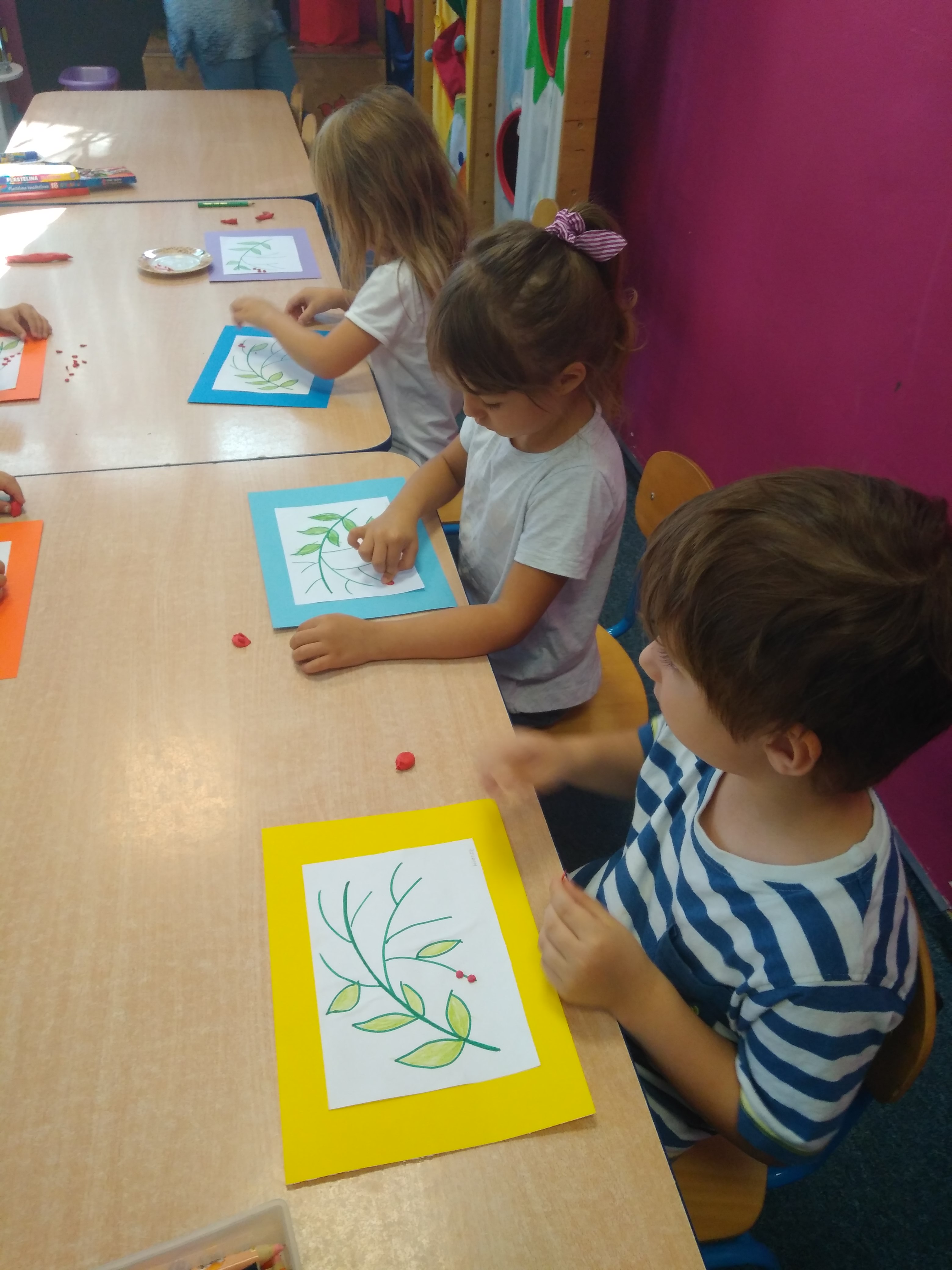 W październiku przywitaliśmy jesień jarzębiną. 03.10.2018 dzieci z grupy „Radosne Krasnale” za pomocą plasteliny wykonały dobrze nam wszystkim znane czerwone kuleczki i ozdobiły nimi pokolorowane gałązki. Uwielbiamy takie dary jesieni.