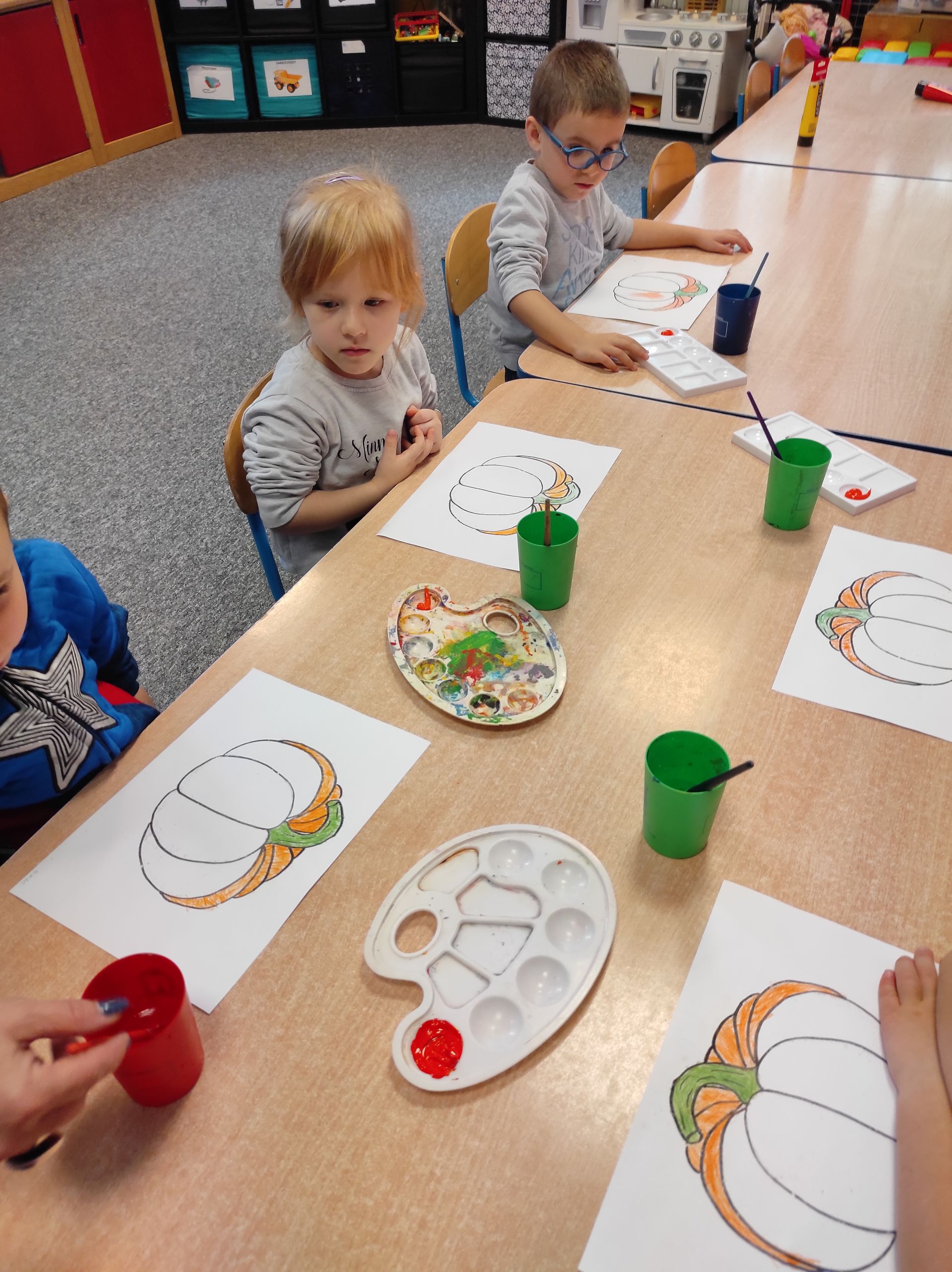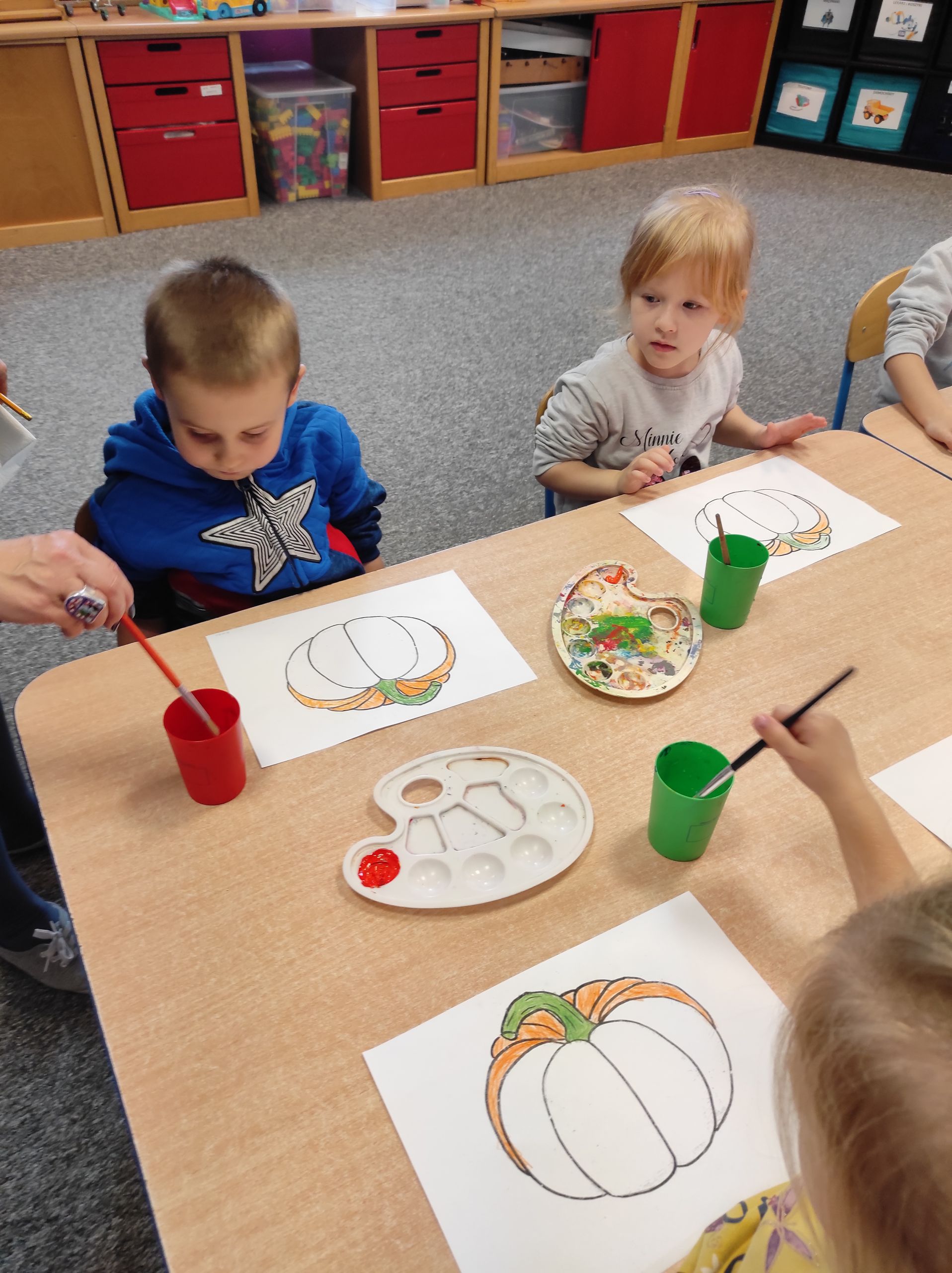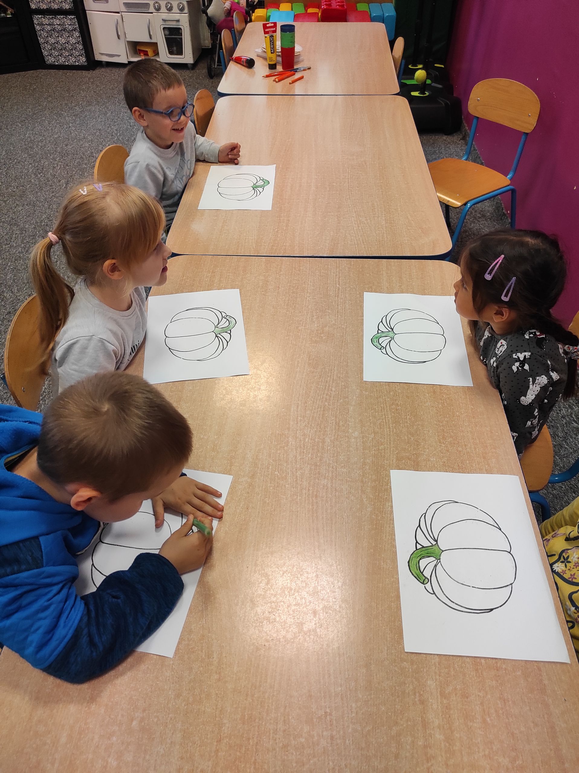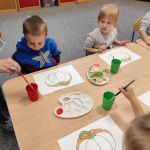 21.10.2021r. „Radosne Krasnale” rowijały swoje talenty plastyczne w iście jesiennej formie. Dzieciaki stworzyły prace plastyczne z dynią w roli głównej. Tego typu zajęcia wspaniale wpływaja na rozwój koncentracji u naszych przedszkolaków. Dzieci ćwiczą również koordynację ruchów, poznają różne techniki plastyczne, a podczas pogadanek poznają nowe słowa i poszerzają swoją wiedzę o świecie. Najważniejsze dla nas jest jednak to, że nasi podopieczni podejmują proponowane przez nas aktywności z ogromnym entuzjazjem i radością! 🙂 Bo nie ma nic wspanialszego niż zadwolone dzieciaki 🙂