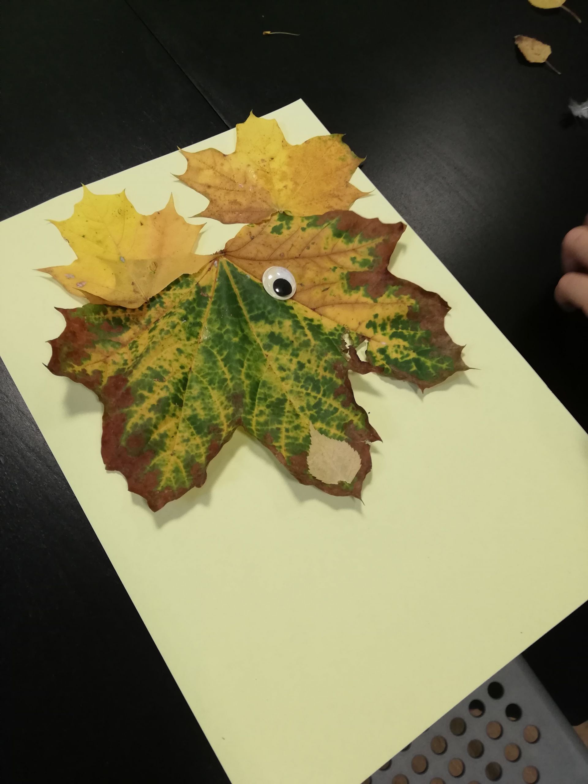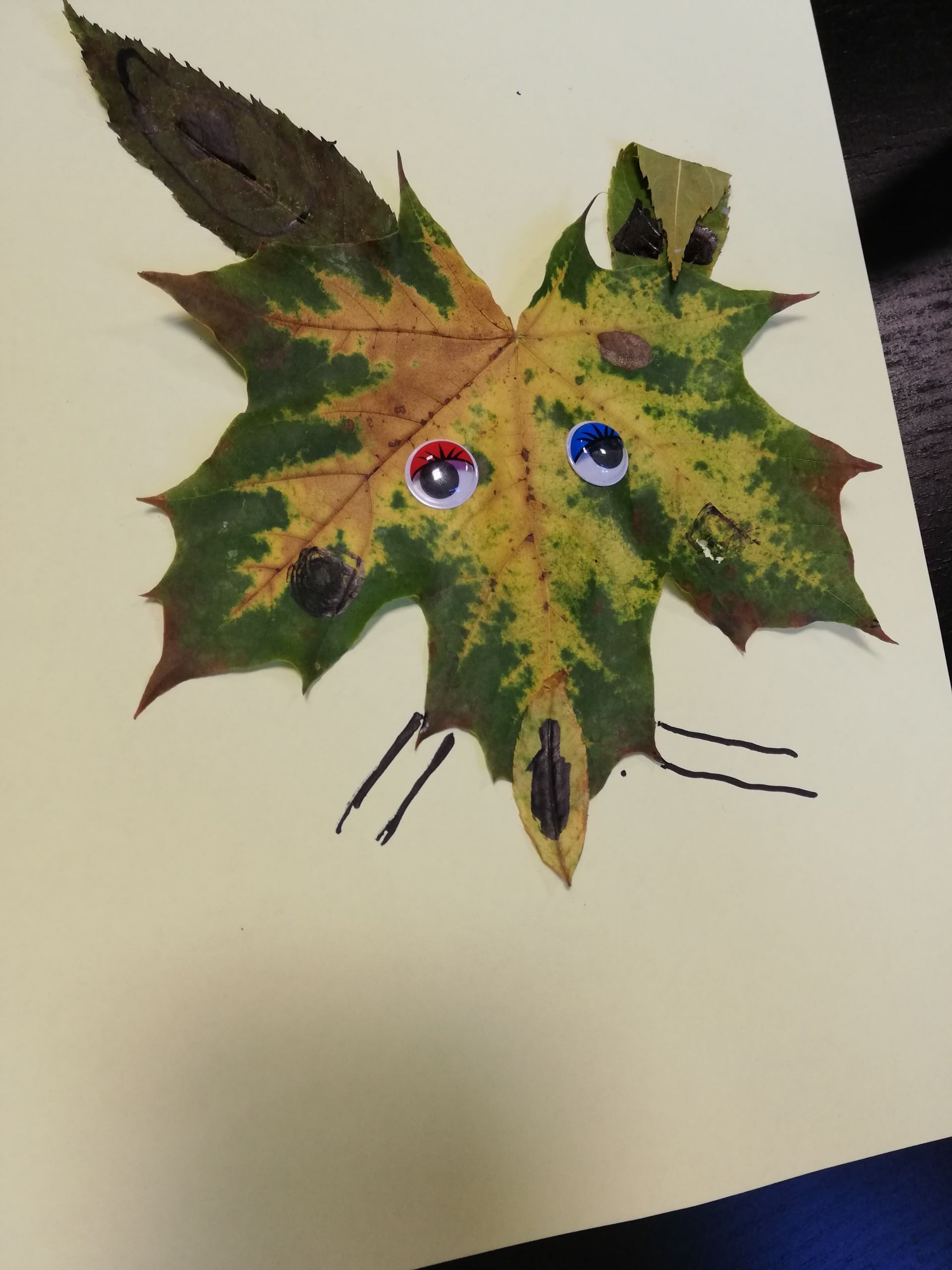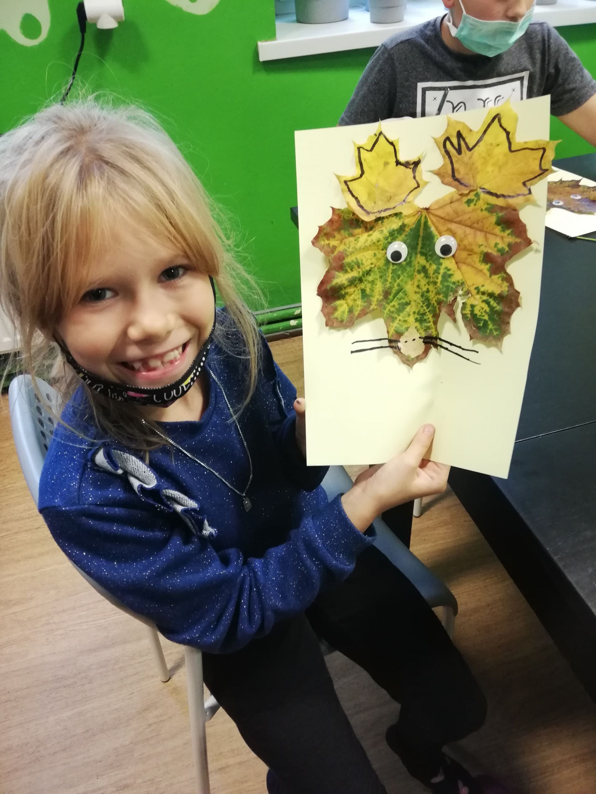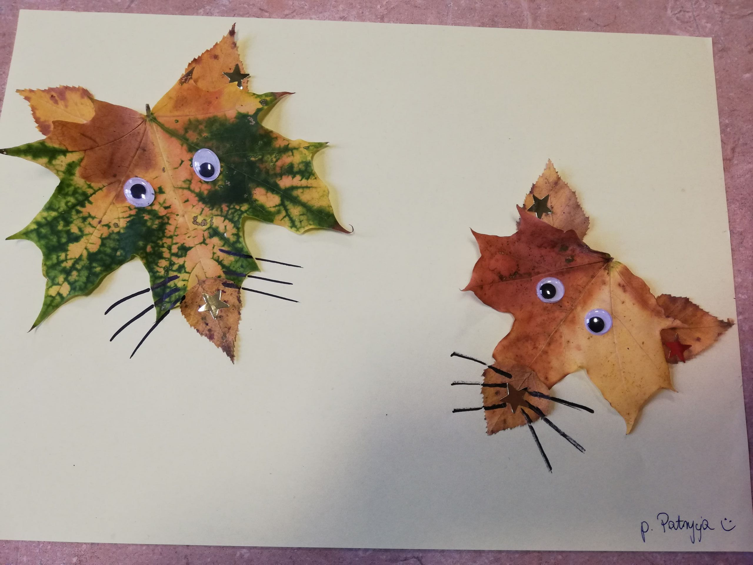 Jeśli ktoś się zastanawia, to zapraszamy do zrobienia własnej pracy – nic prostszego! Wystarczy mieć kilka jesiennych liści, kartkę, klej i mazak 🙂