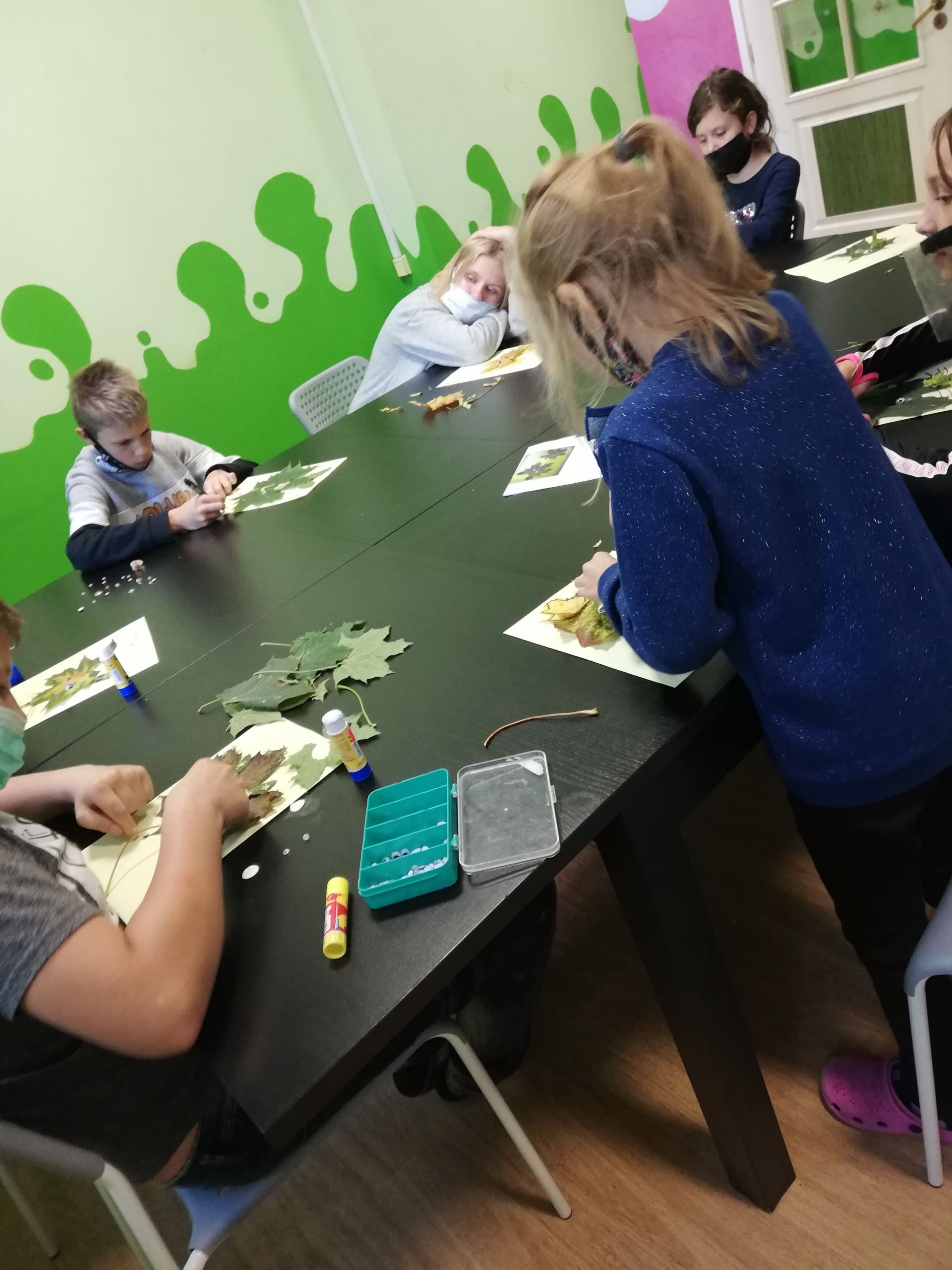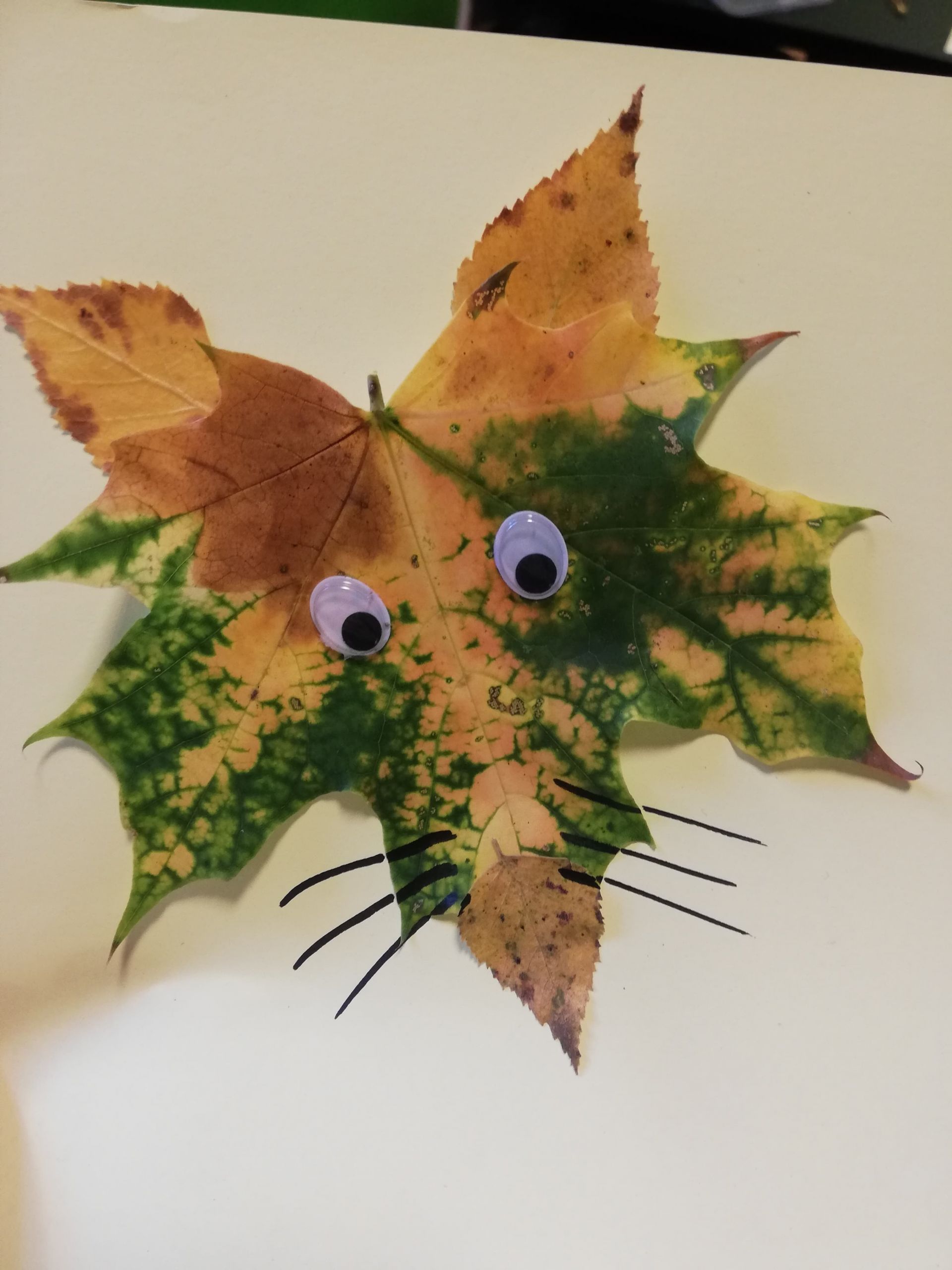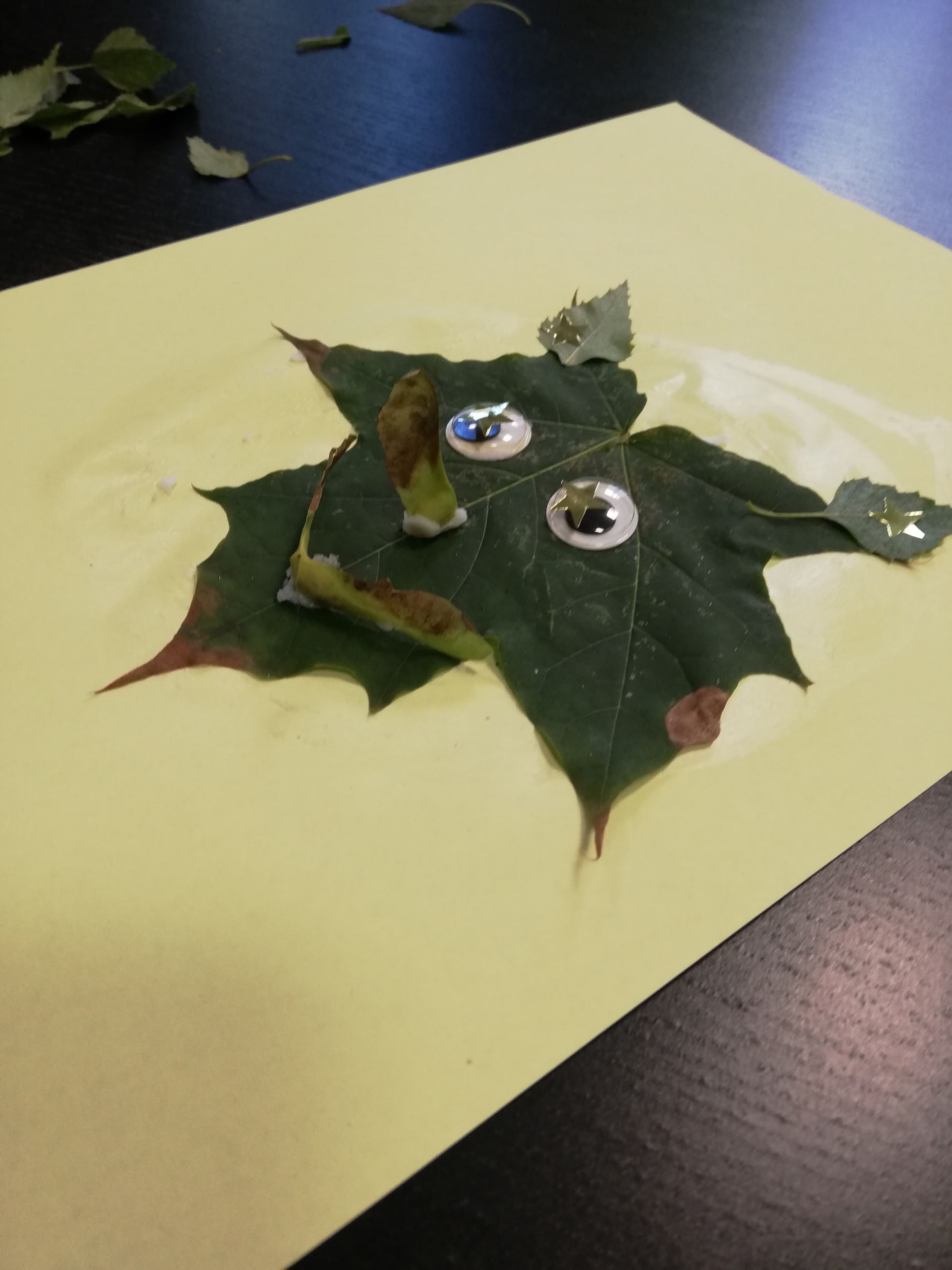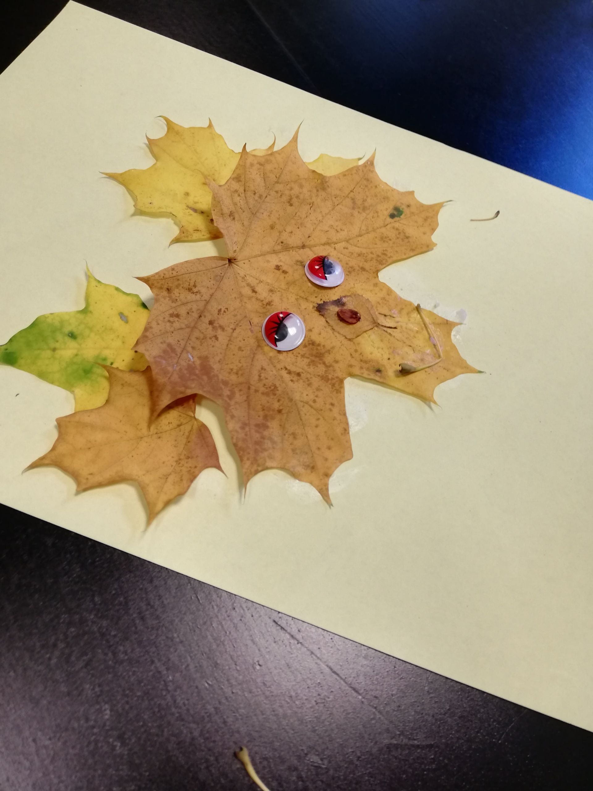 Jeśli ktoś się zastanawia, to zapraszamy do zrobienia własnej pracy – nic prostszego! Wystarczy mieć kilka jesiennych liści, kartkę, klej i mazak 🙂