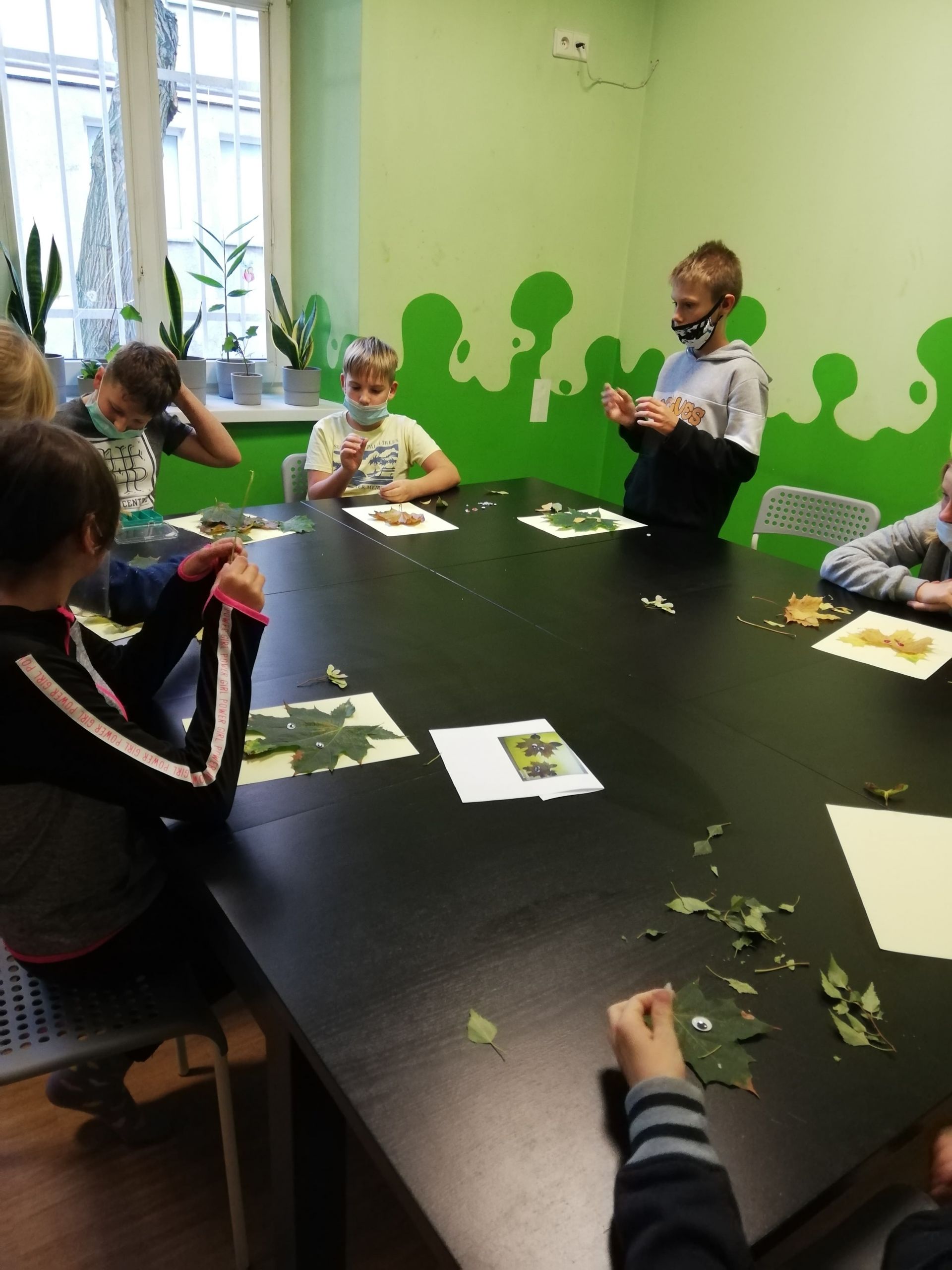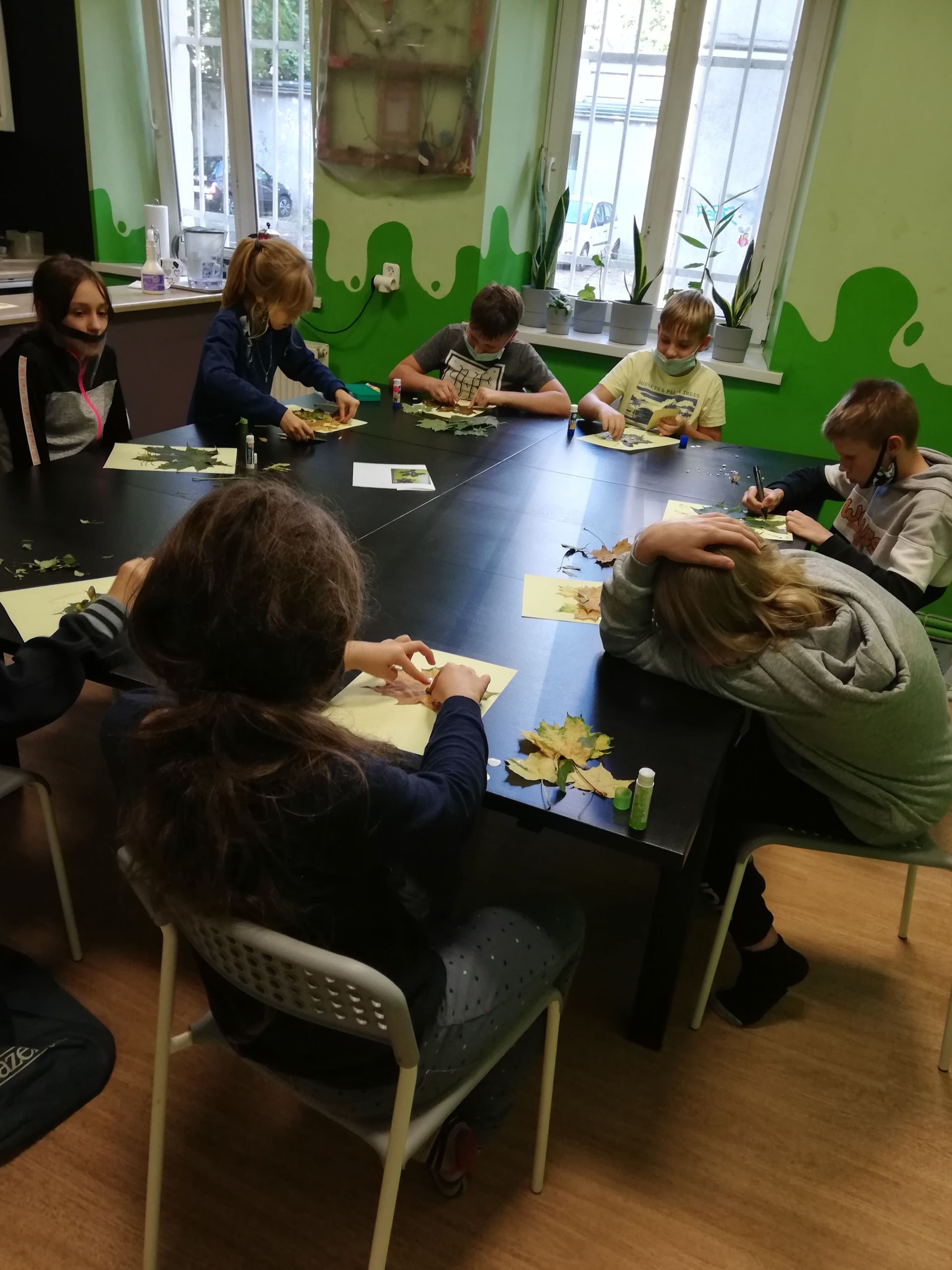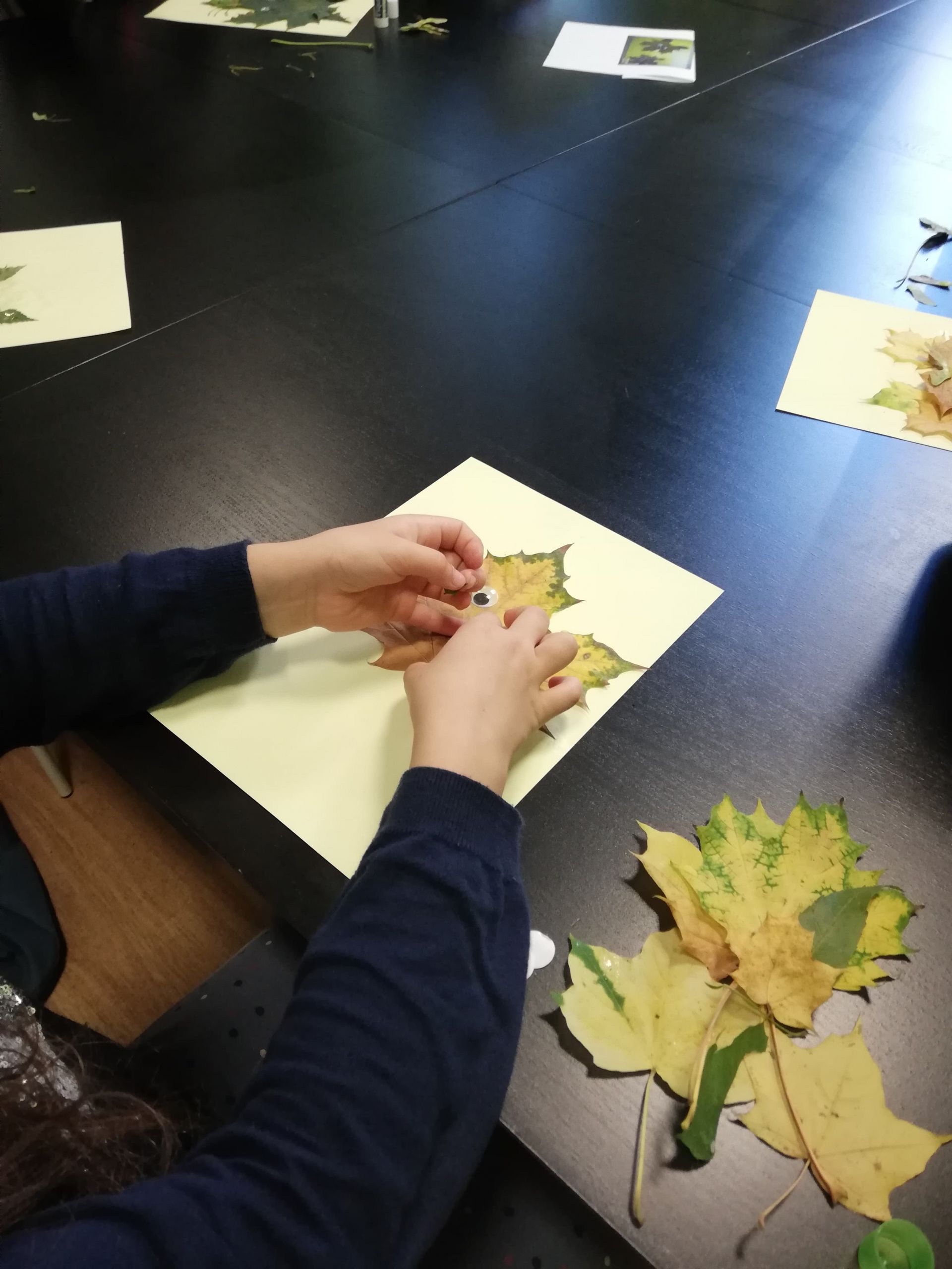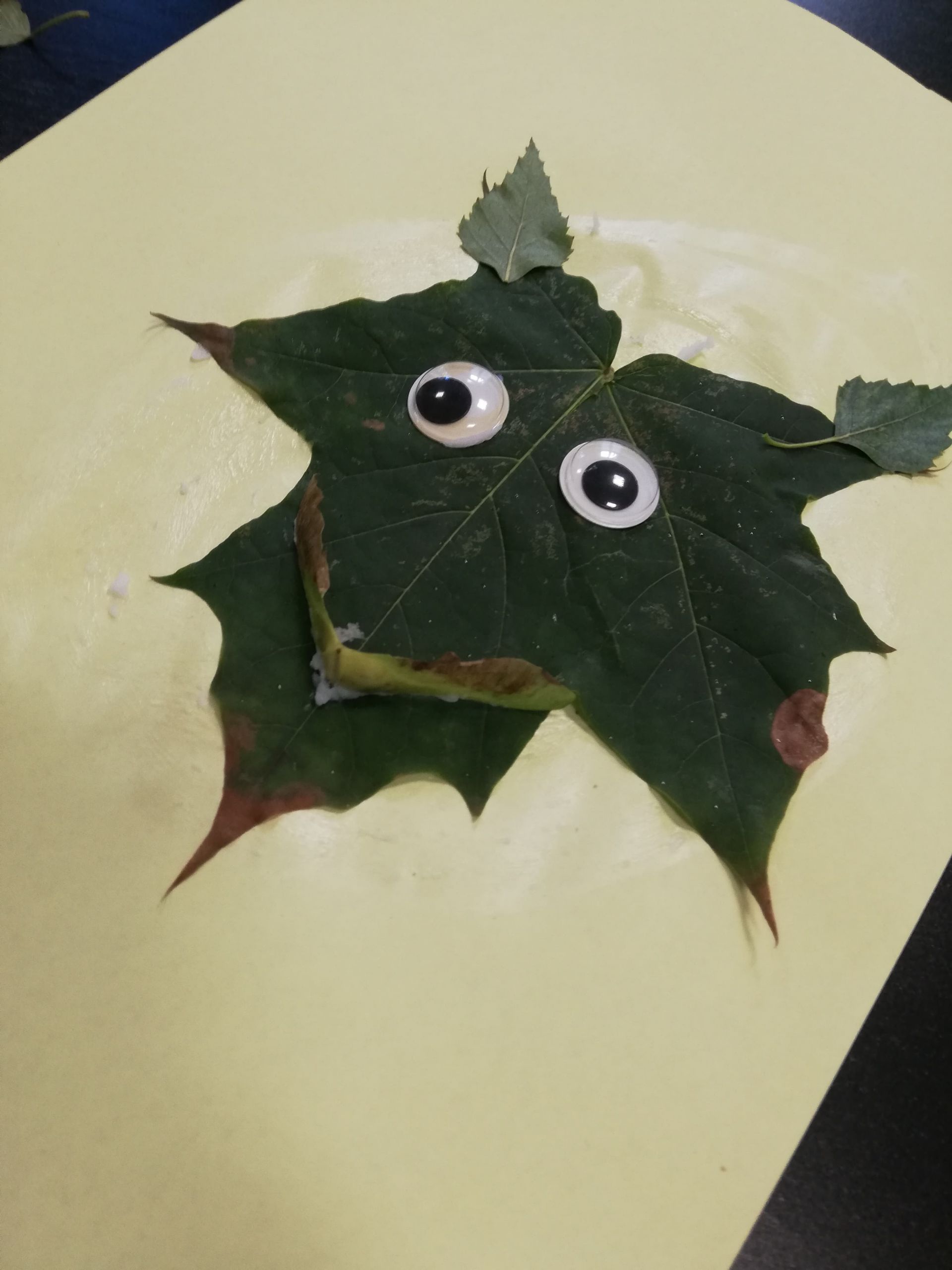 Jeśli ktoś się zastanawia, to zapraszamy do zrobienia własnej pracy – nic prostszego! Wystarczy mieć kilka jesiennych liści, kartkę, klej i mazak 🙂
