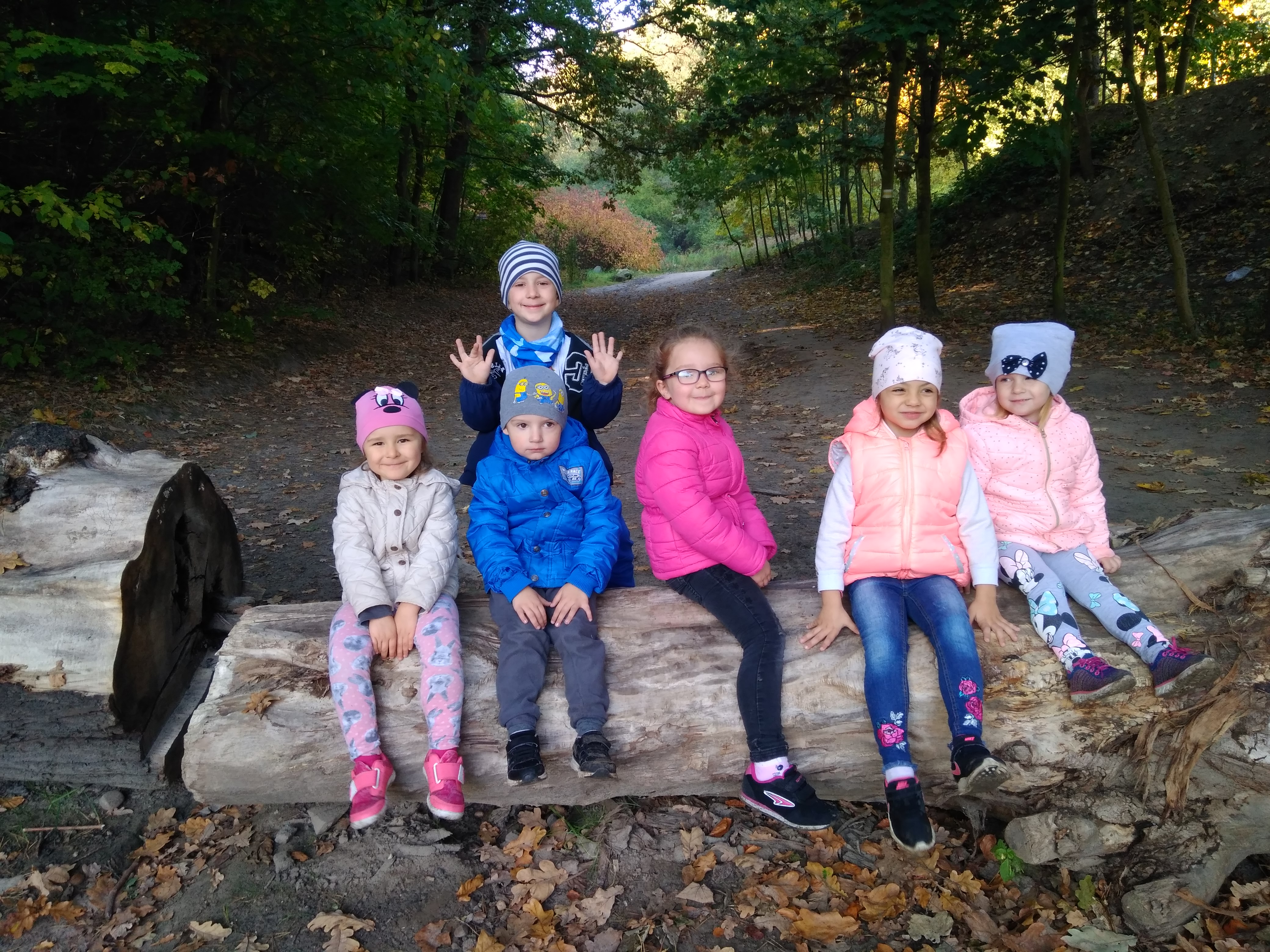 11.10.2018 najmłodsza grupa korzystając z pięknej jesiennej pogody wybrała się na spacer na „Podleśną Polanę”. Dzieci aktywnie spędziły czas na świeżym powietrzu, rozwijając swoją koordynację i współpracę. Nie obyło się bez wesołego zbierania liści, kasztanów i żołędzi oraz rysowania patykami po ziemi. Kontakt z naturą i docenianie jej piękna, to bardzo potrzebny element w rozwoju dzieci.