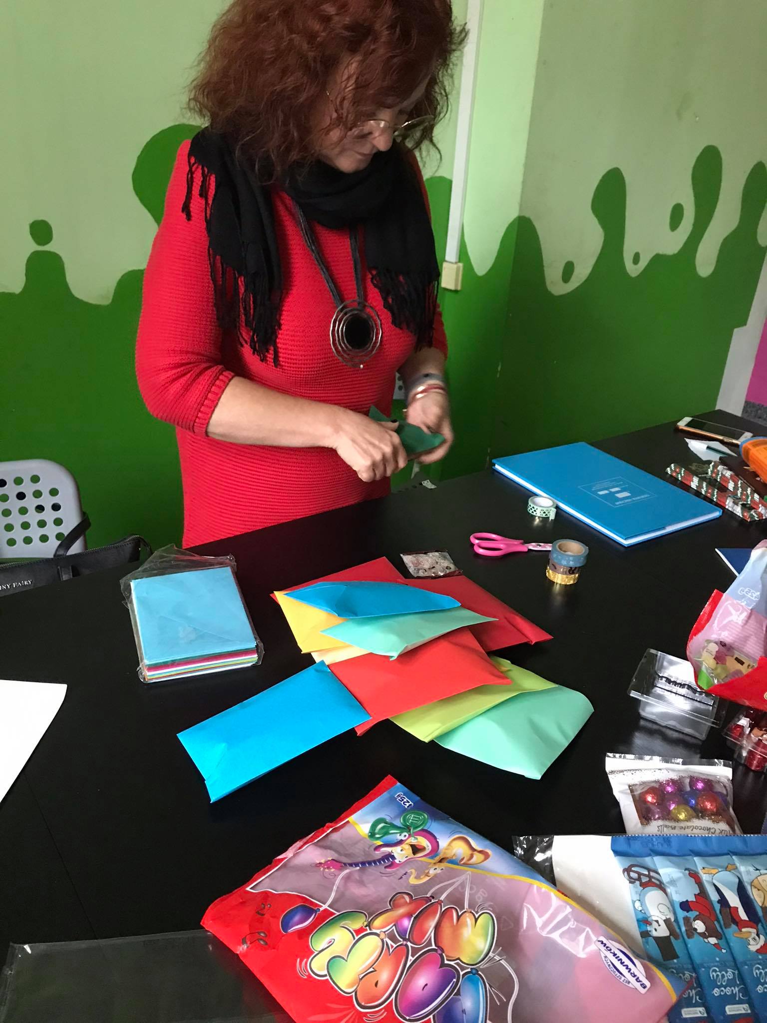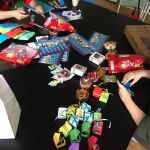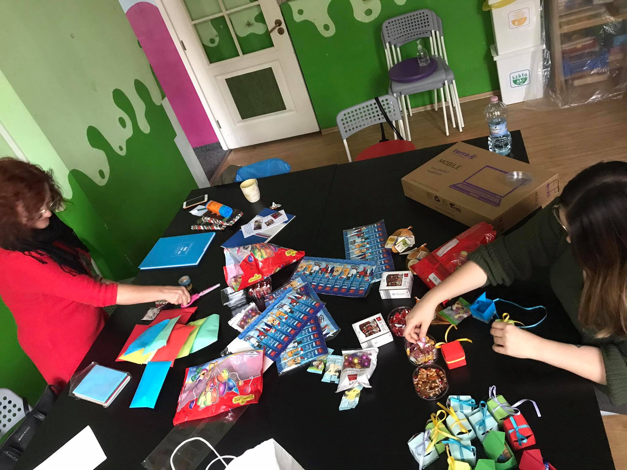 - Stół zapełniony różnymi słodkościami przeznaczonymi do stworzenia kalendarza adwentowego dla naszych podopiecznych.