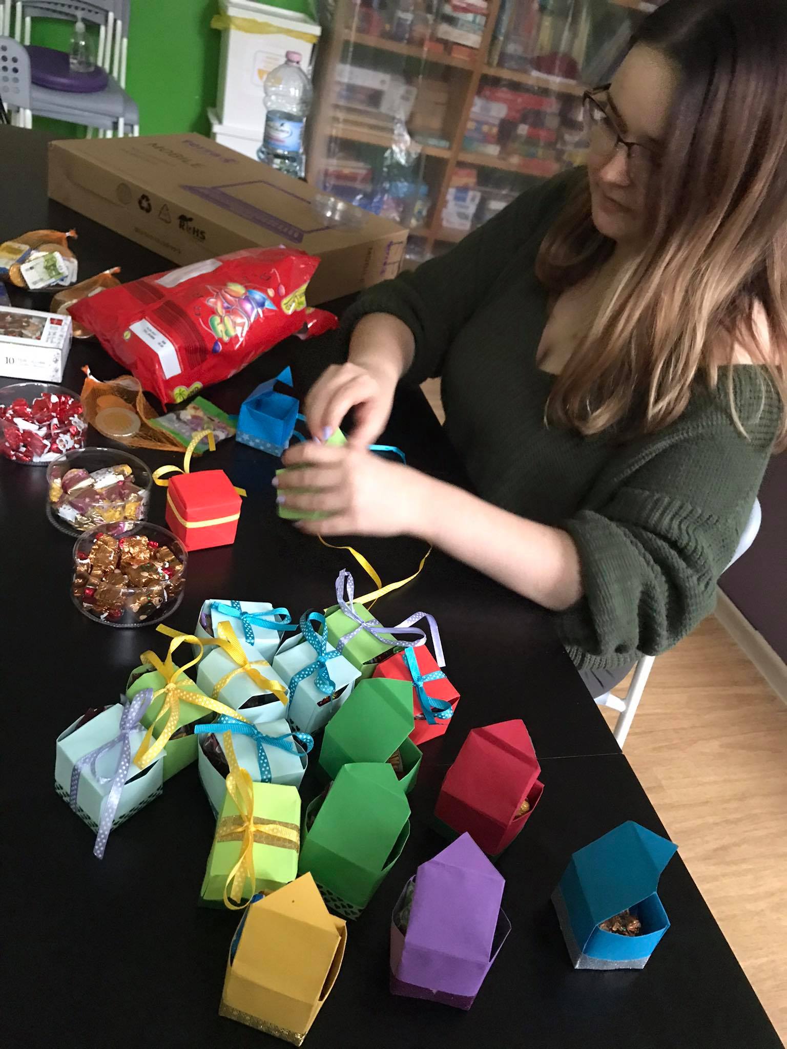 Nasza Placówka nadal realizuje swoją pracę z wykorzystaniem metod i technik działania na odległość, ale to nie przeszkadza nam w tworzeniu iście świątecznego nastroju wśród naszych podopiecznych! Od 01.12.2020r. przeprowadzamy losowania wśród członków każdej z naszych trzech grup: „Radosne Krasnale”, „Anielska Kraina” i „Sparta”. Każdego dnia wylosowane osoby są szczęściarzami, którzy odbierają niespodzianki zawarte w naszych kalendarzach adwentowych 😉 Znajduje się tam coś słodkiego i nie tylko… Najważniejsze, że przywołujemy uśmiechy na twarze naszcych podopiecznych 😉 Czekamy na Święta!