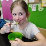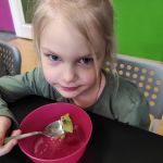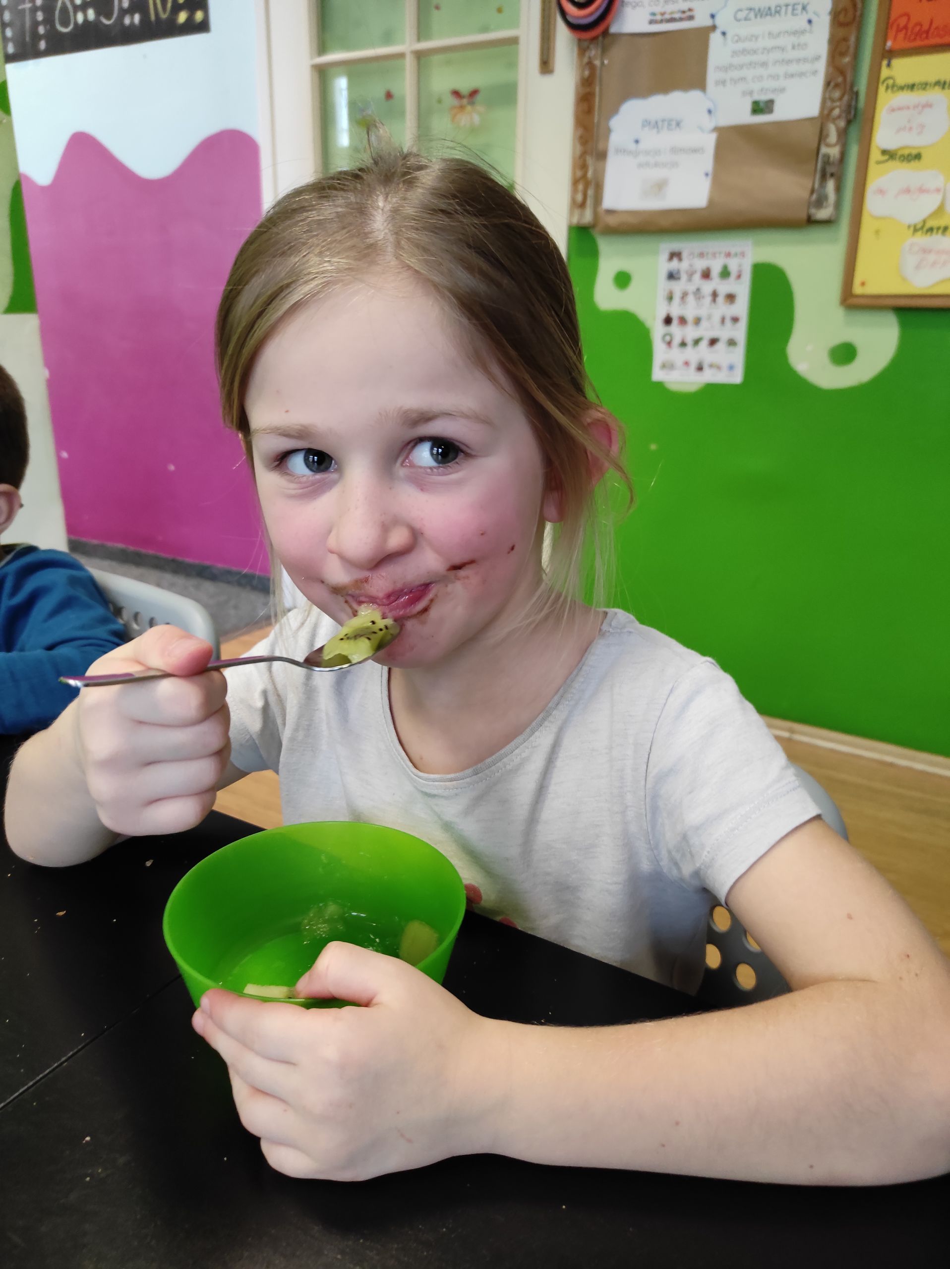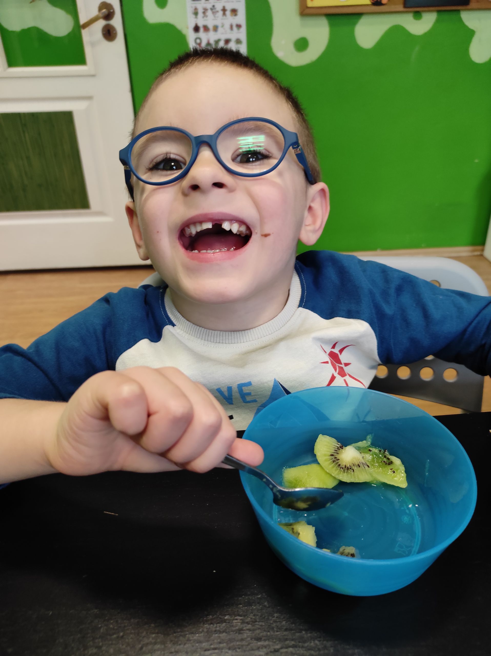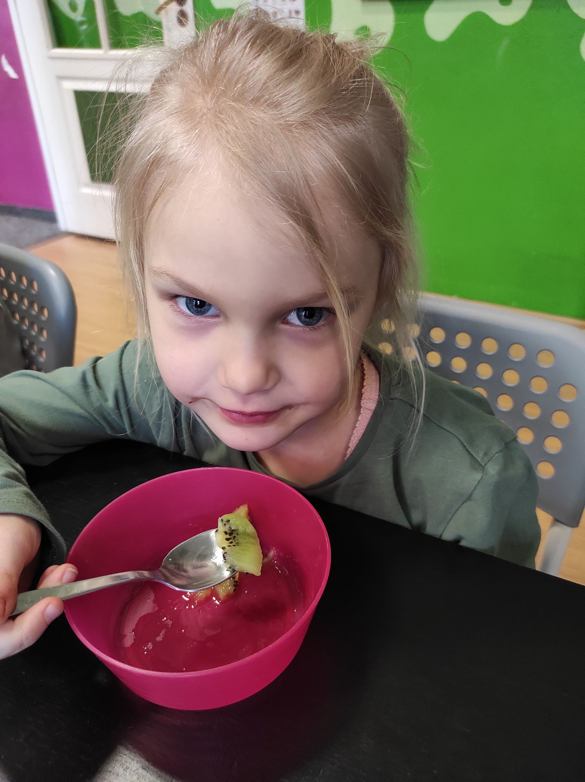 15.02.2022r. na deser królowało u nas kiwi. Sprawdzaliśmy czy jego skórka jest bardzo drapiąca w dotyku i okazało się, że nasze egzemplarze były wyjątkowo milutkie 🙂 Później odkrywaliśmy jakie kolory chowa kiwi w swoim środku, a na koniec dzieciaki degustowały owoc, który okazał się wyjątkowo słodki! Dokładki były tego dnia bardzo pożądane, a wręcz rozchwytywane. Dziękujemy Kulczyk Foundation za takie pyszności!