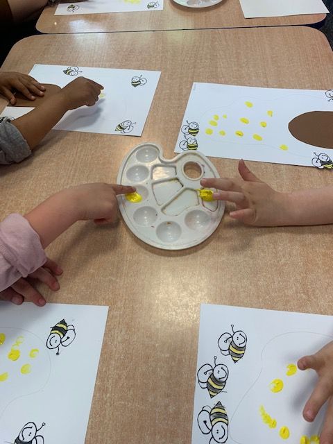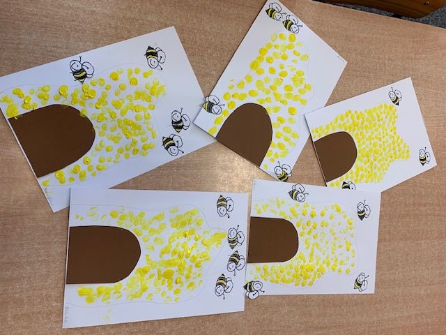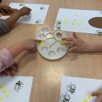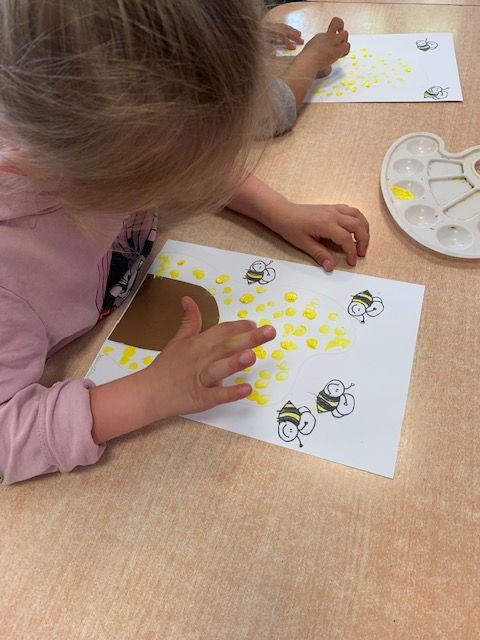 W środę 08.06.2022r. nasze maluchy z grupy „Radosne Krasnale” brały udział w warsztatach profilaktycznych w ramach cyklu zajęć „Zdrowe odżywianie, dbamy o środowisko”. Dzieci wysłuchały wiersza „Pracowita pszczółka” Agaty i Jacka Szaniawskich i oglądały film „Kazio ratuje pszczoły”, dzięki którym dowiedziały się jak pożyteczne i ważne dla środowiska są te małe, brzęczące owady. Ponadto miały okazję do spróbowania miodu, z uśmiechem na twarzy mówiły jak pyszny i zdrowy jest oraz jak bardzo im smakuje. Na koniec nasi podopieczni przygotowali prace plastyczne uwieczniające ul z głównymi bohaterami tego dnia 🙂