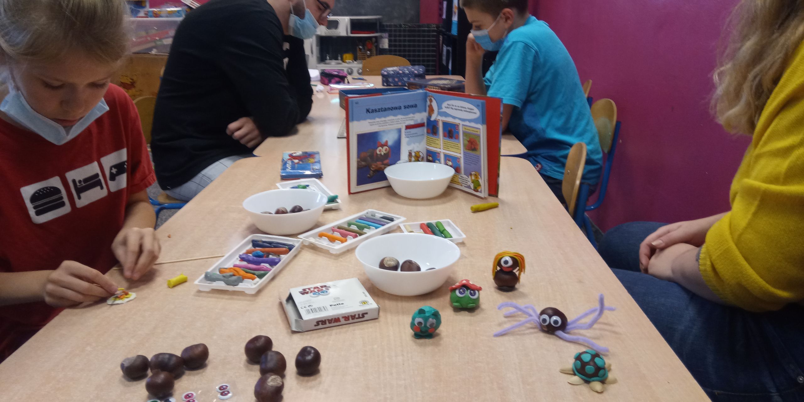 Kasztaniaki! 21.10.2021r. grupa „Anielska Kraina” oraz „Sparta” wzięły udział w prawdziwie jesiennych zajęciach plastycznych. Tego dnia postanowiliśmy wykorzystać kasztany zebrane przez dzieci i przez wychowawców do tworzenia zwierząt. Choć mielismy do dyspozycji rysunki i pomysły, to puścilismy wodze fantazji i każdy stworzył zwierzęta według własnej koncepcji. Powstały pająki, żółwie, żaby i nietoperze. To były bardzo udane zajęcia! 🙂