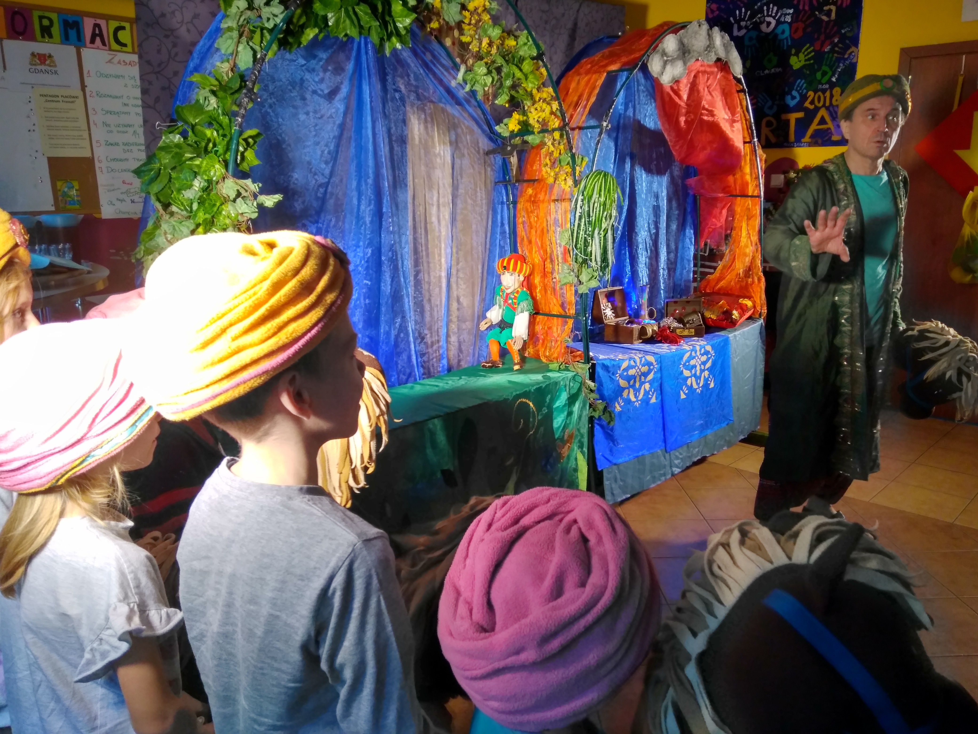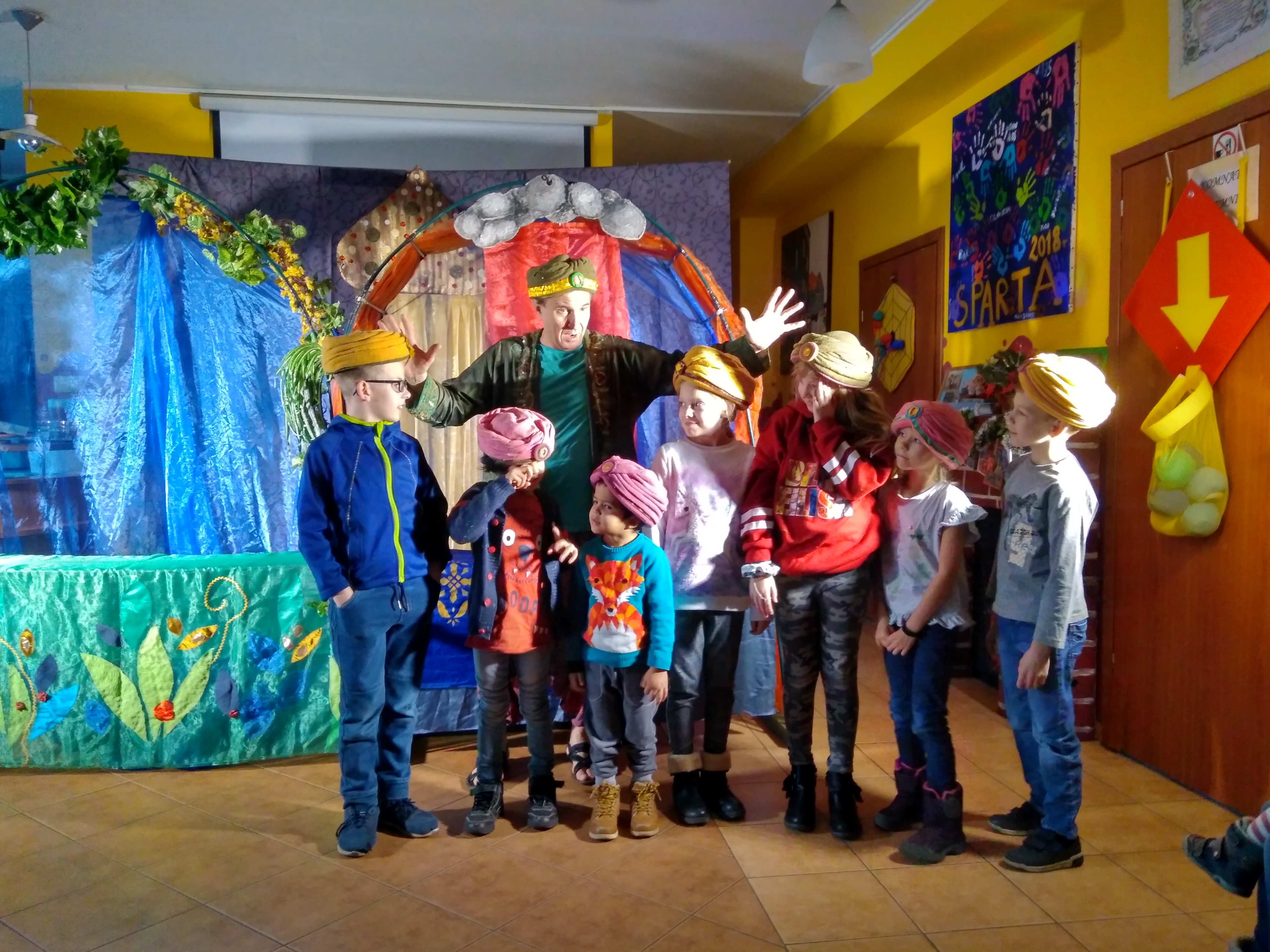 30.11.2019r. świętowaliśmy w naszym Centrum Mikołajki. Jak co roku niezwykłej zabawy dostarczył nam Teatr Qfer z kolejnym, przezabawnym przedstawieniem. Tym razem przenieśliśmy się do gorącej Persji i bardzo nam się spodobała taka zmiana klimatu! Było dużo śmiechu, trochę śpiewu, tańca i zagadek. Wisienką na torcie były odwiedziny samego Mikołaja, który wręczył nam swoje czekoladowe podobizny. Nie zabrakło też słodkiego poczęstunku. Szkoda, że Mikołajki są tylko raz do roku 😉