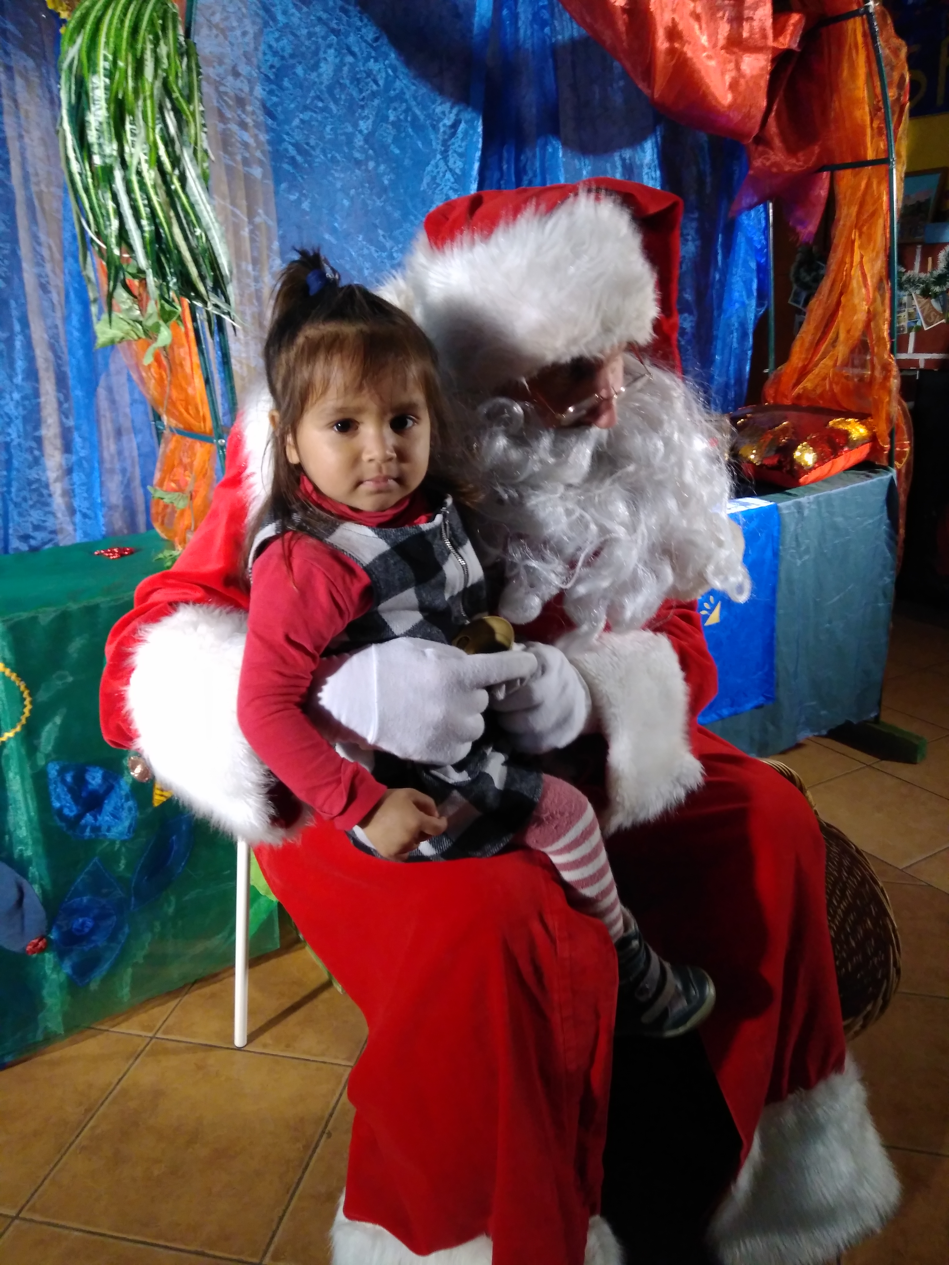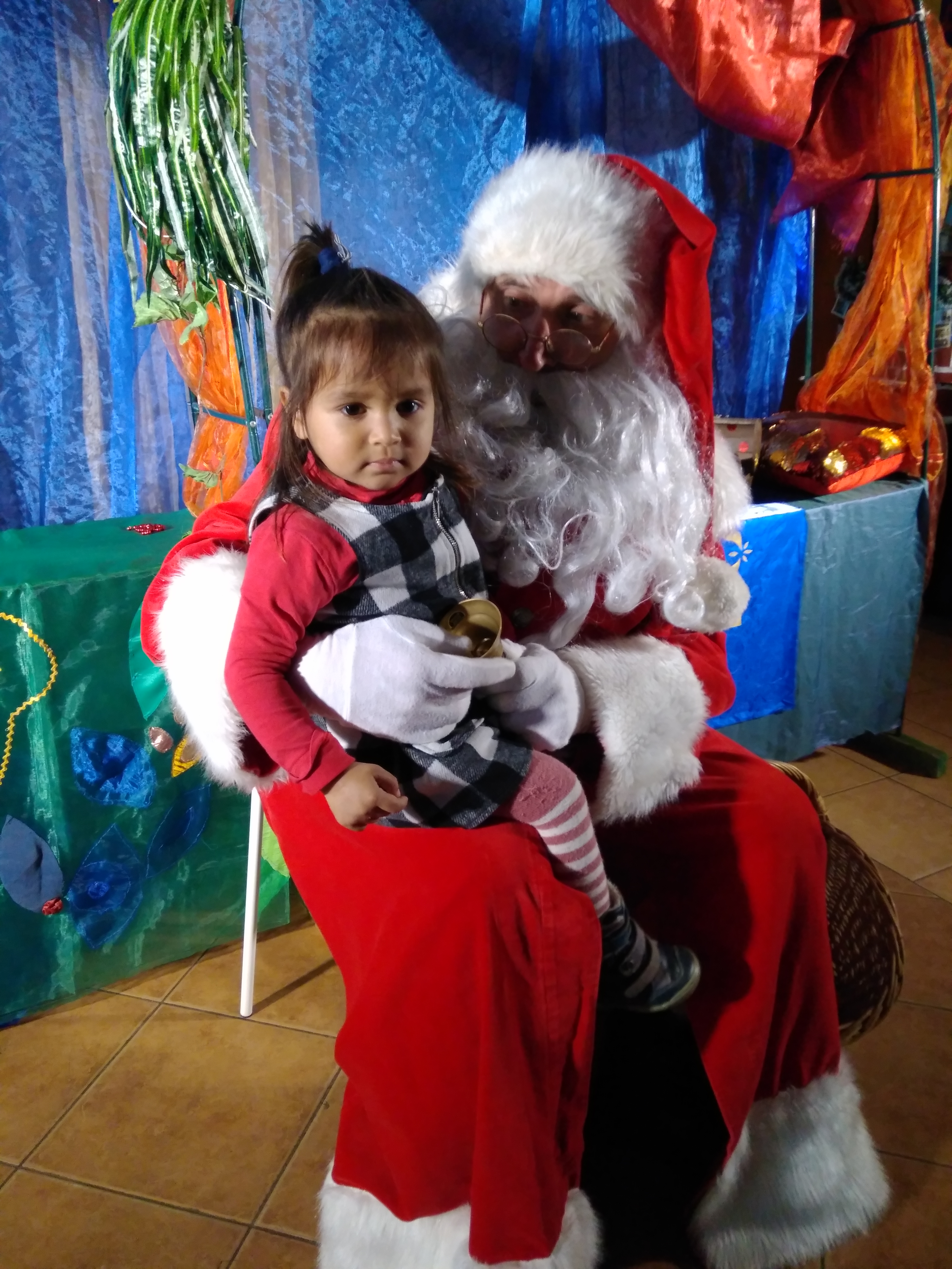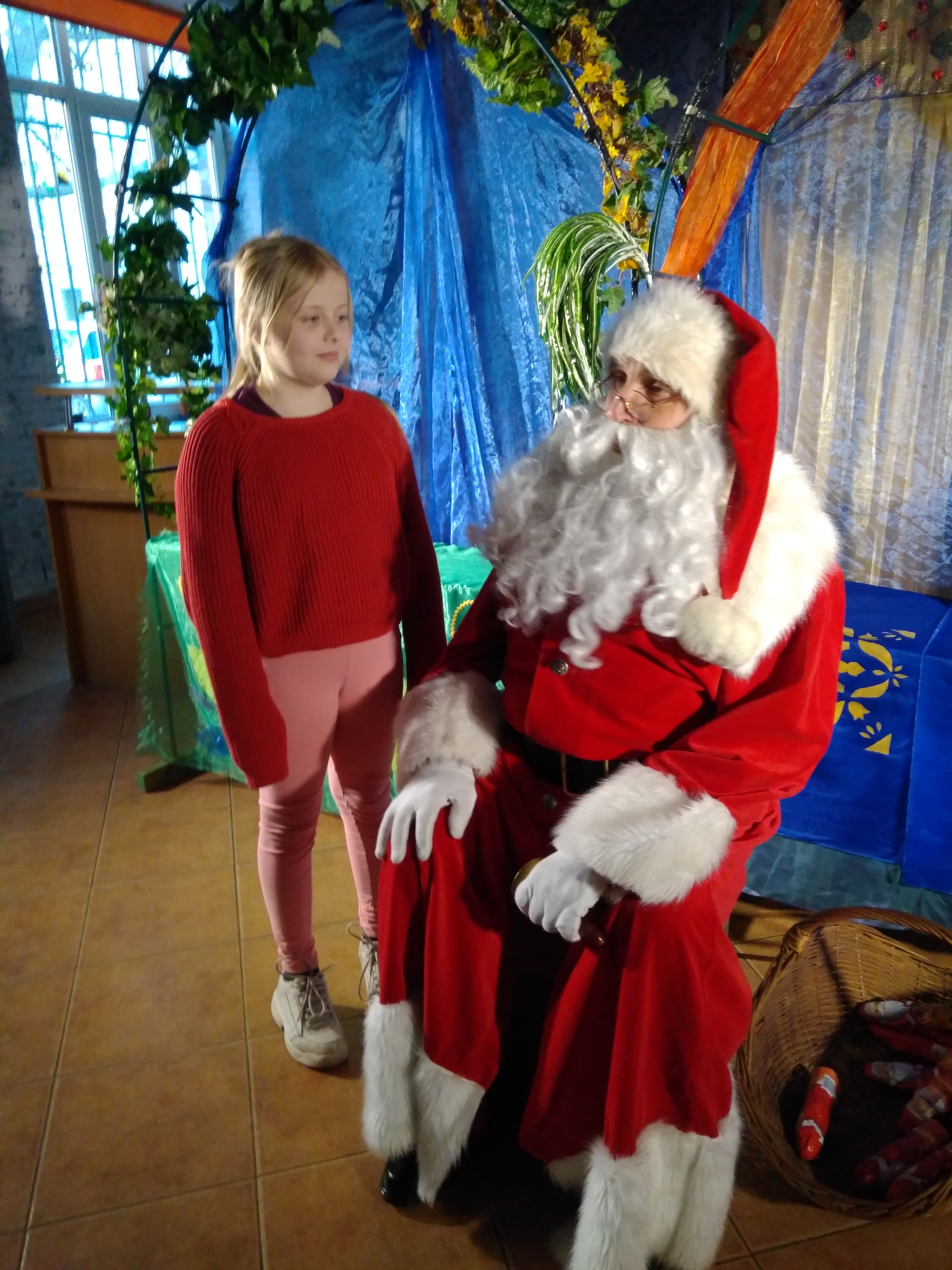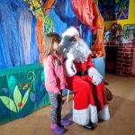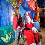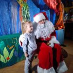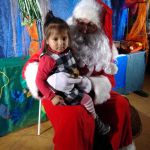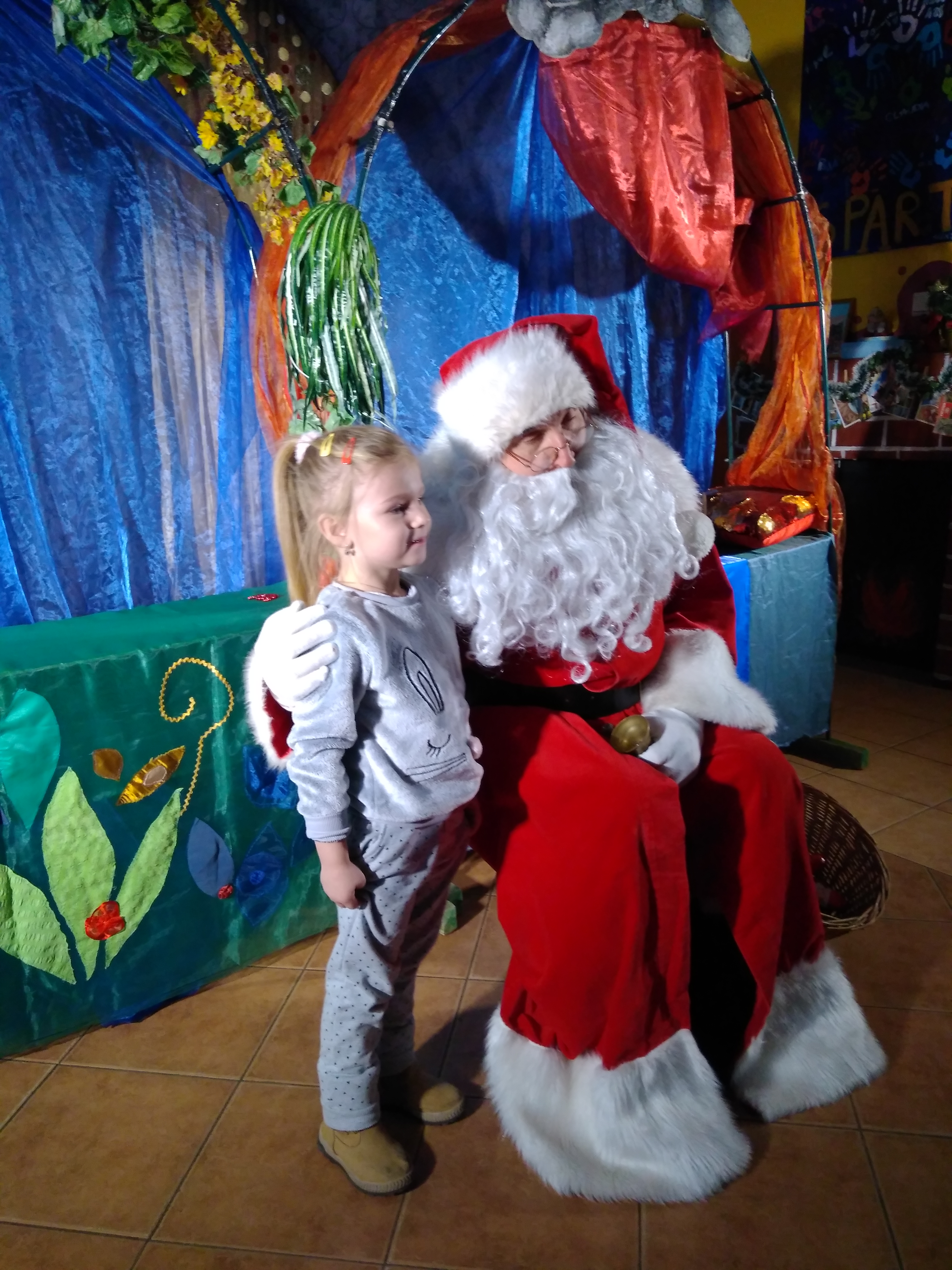 - Dziewczynka siedzi na kolanach u Mikołaja.
