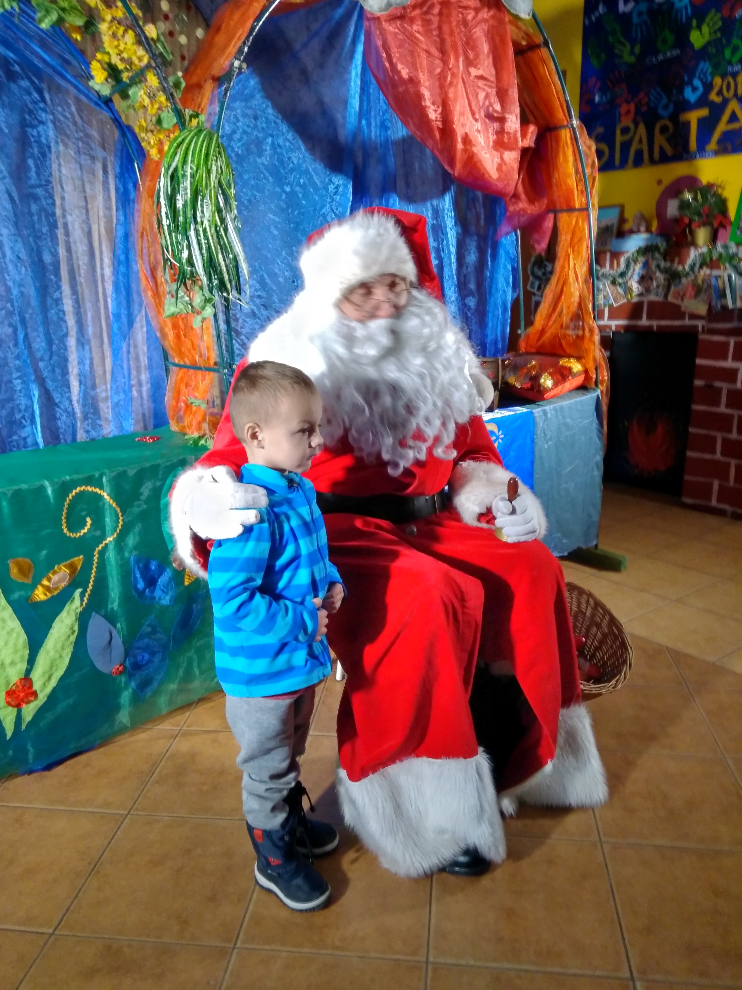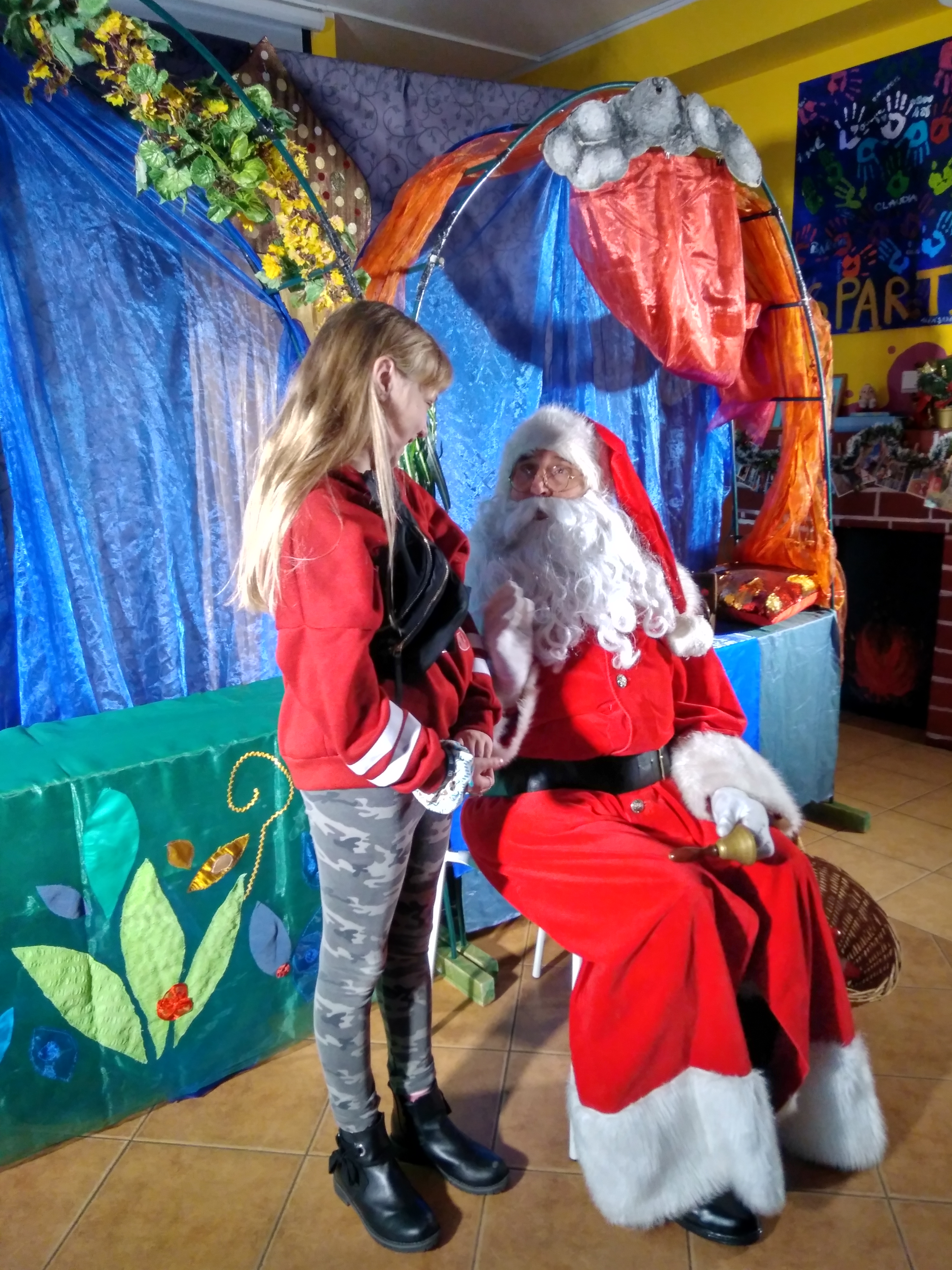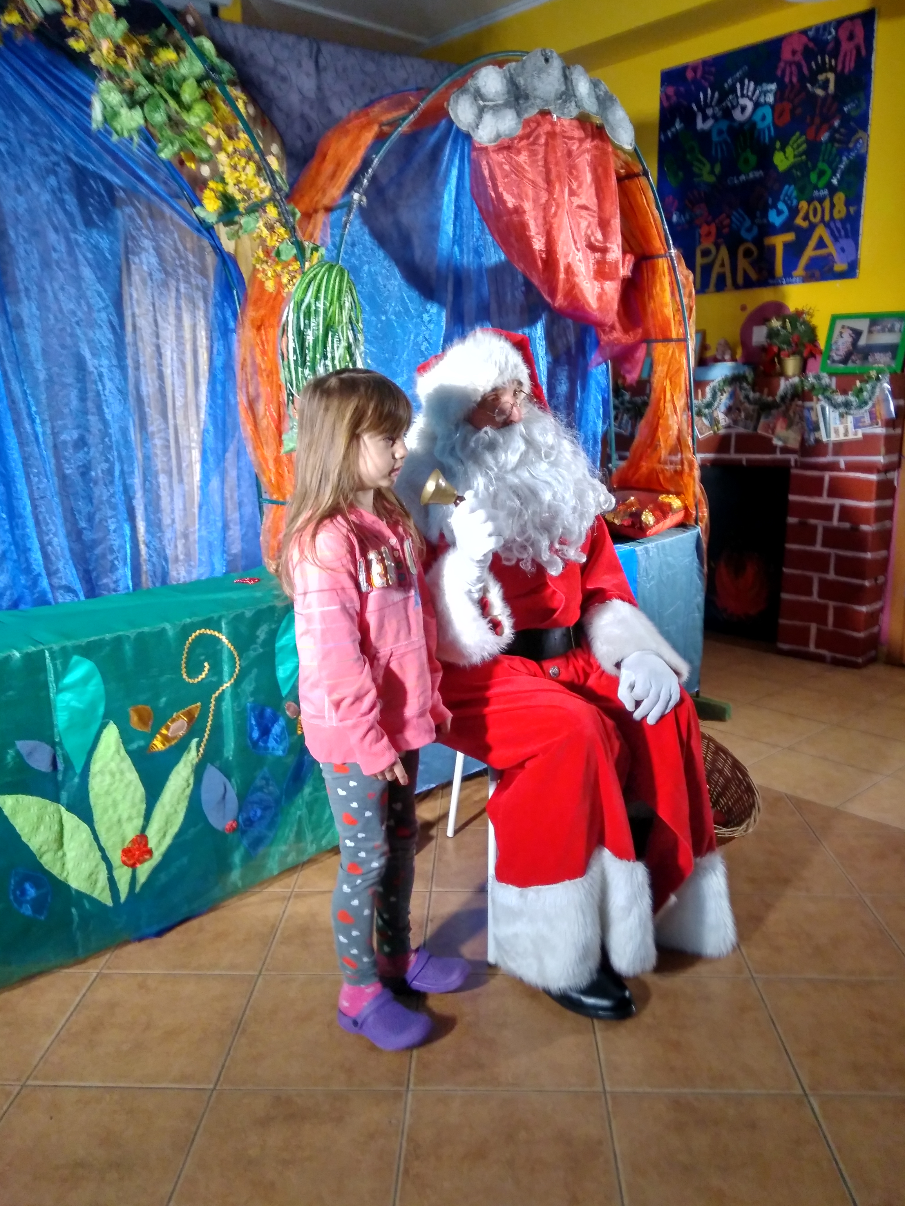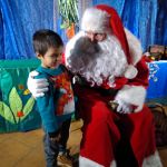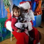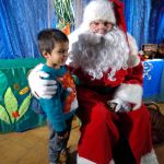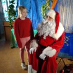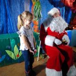- Dziewczynka siedzi na kolanach u Mikołaja.