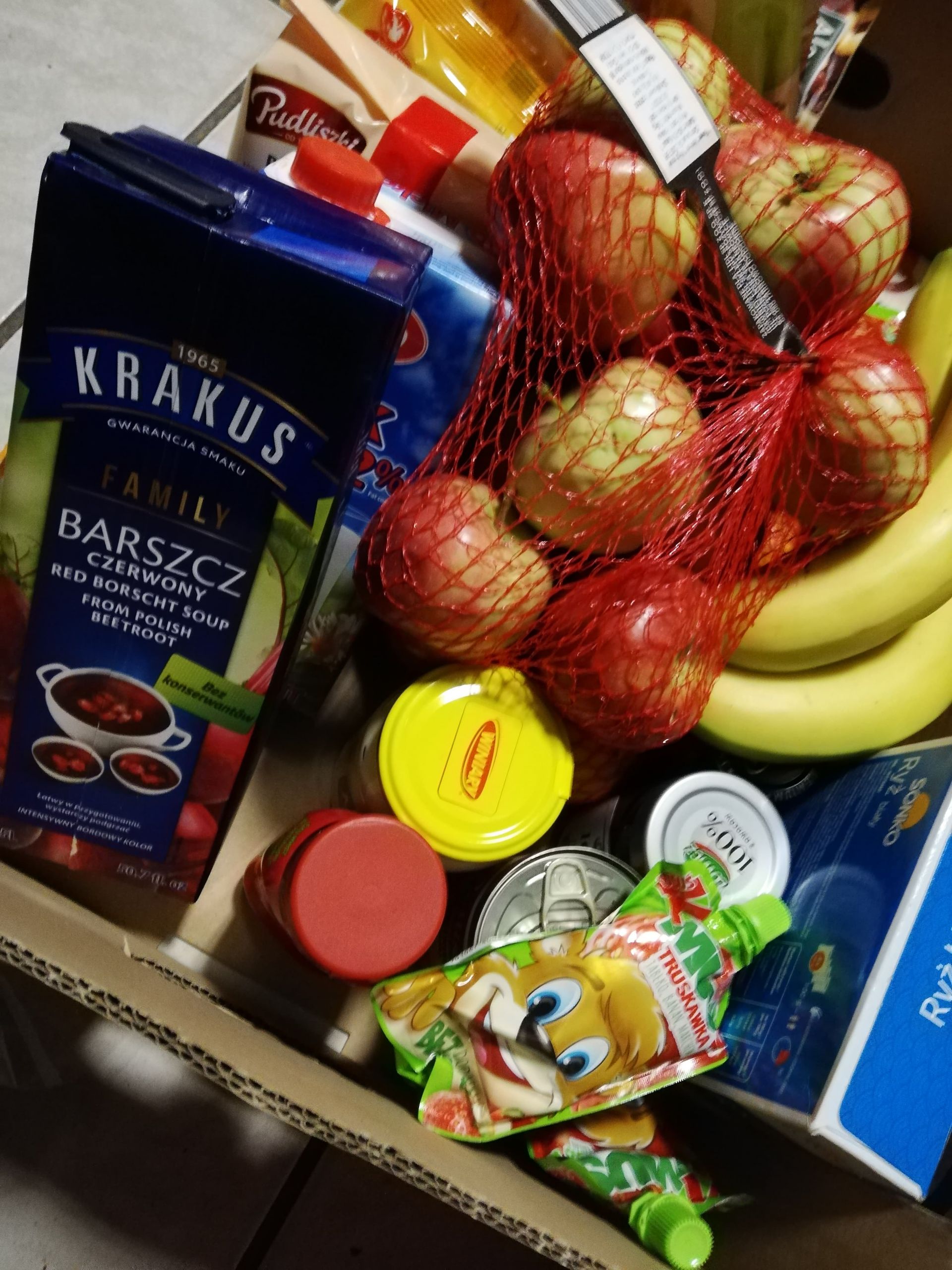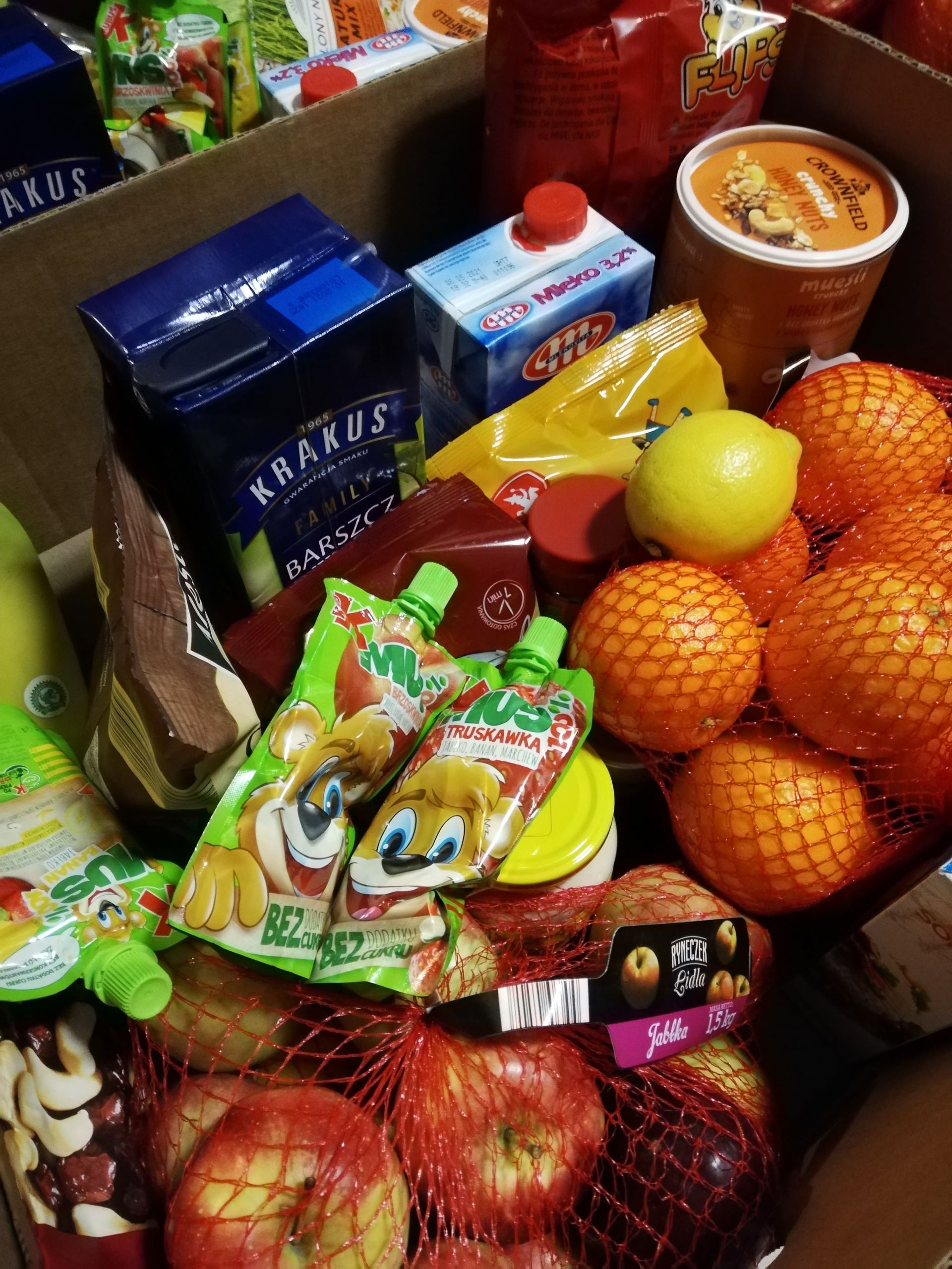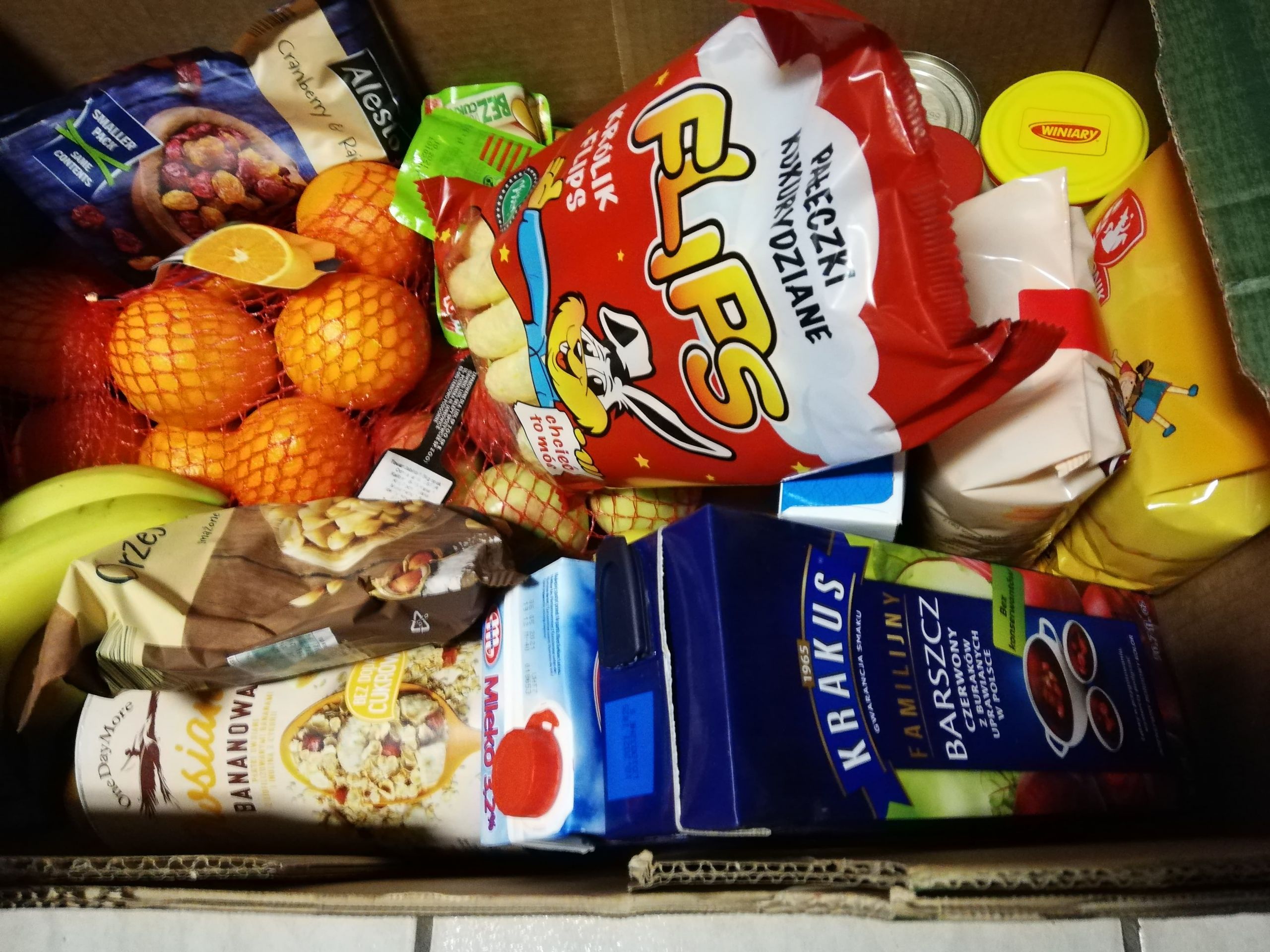 - Paczki żywnościowe dla naszych podopiecznych, zawierające podstawowe produkty spożywcze.