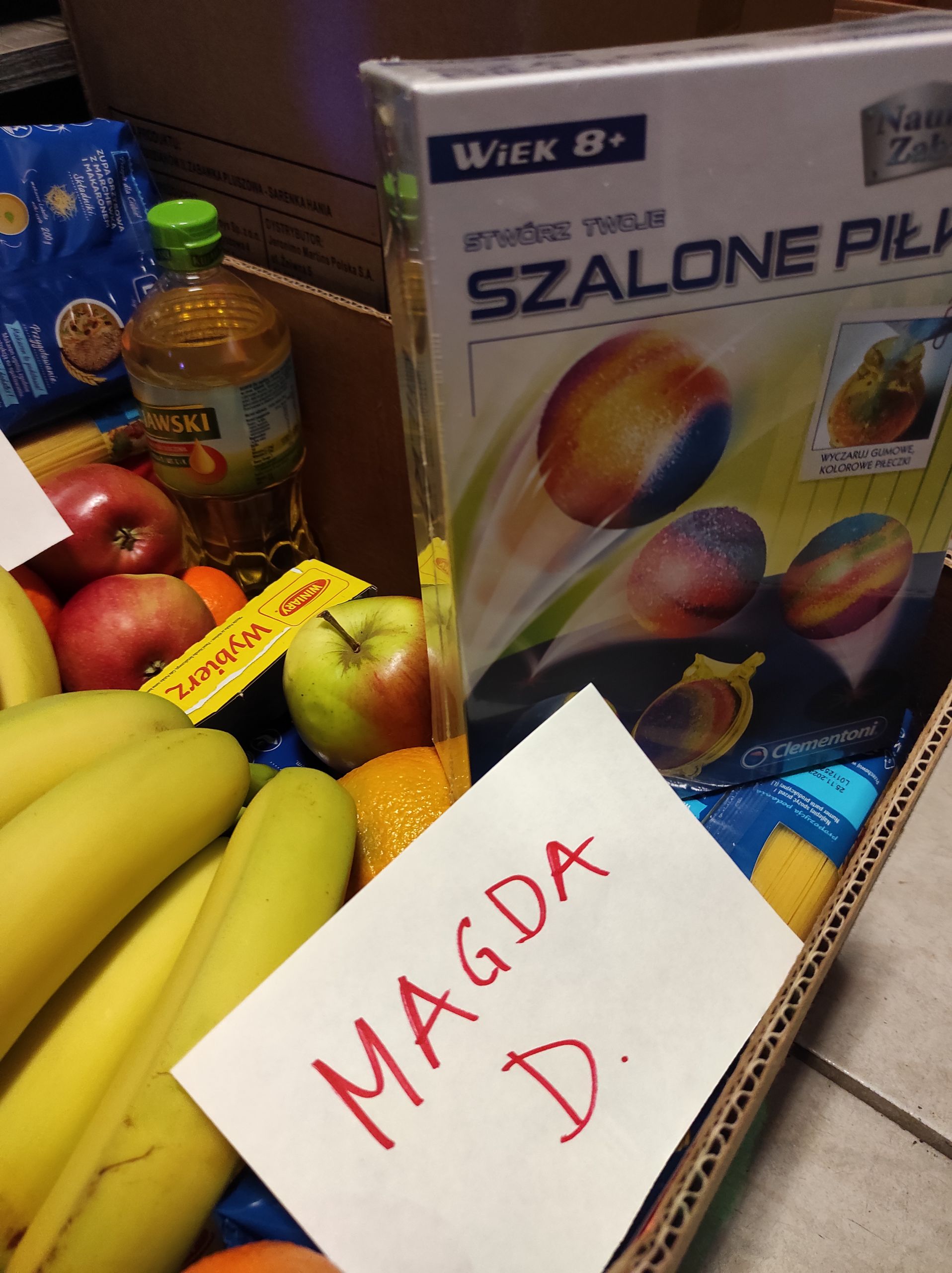 23.12.2020r. nasi podopieczni otrzymali kolejne paczki żywnościowe z drobnymi upominkami, za które jeszcze raz dziękujemy firmie Clementoni. Prezenty oraz artykuły spożywcze przyniosły ogrom uśmiechów naszym dzieciakom oraz ich rodzinom. Dobro i radość się mnoży gdy się je dzieli – jesteśmy ogromnie szczęśliwe, że mogłyśmy dołożyć do tej akcji swoją cegiełkę.