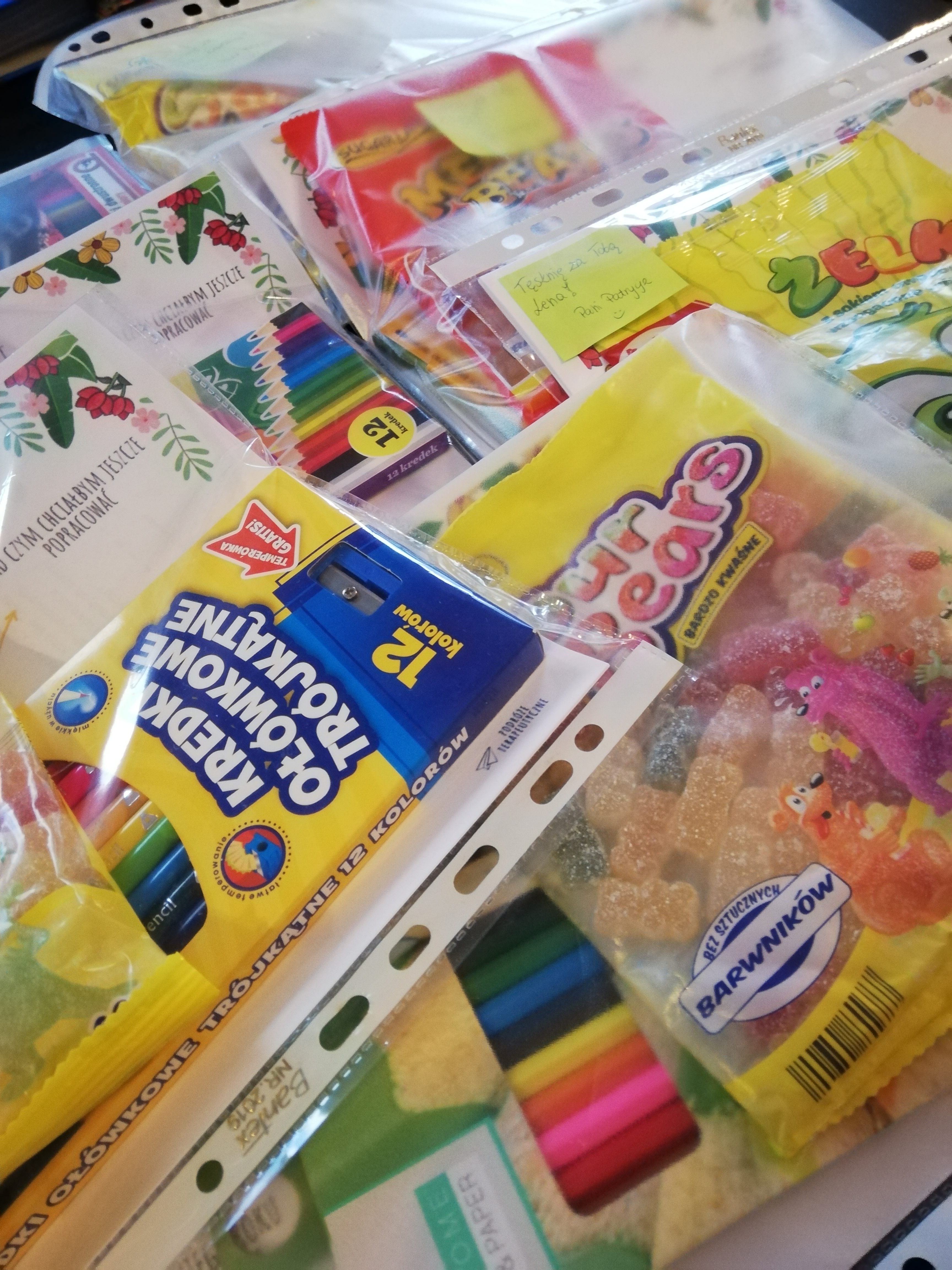 Dodatkowo każde dziecko otrzymało zestaw kredek oraz słodką niespodziankę za wykonaną pracę.
