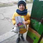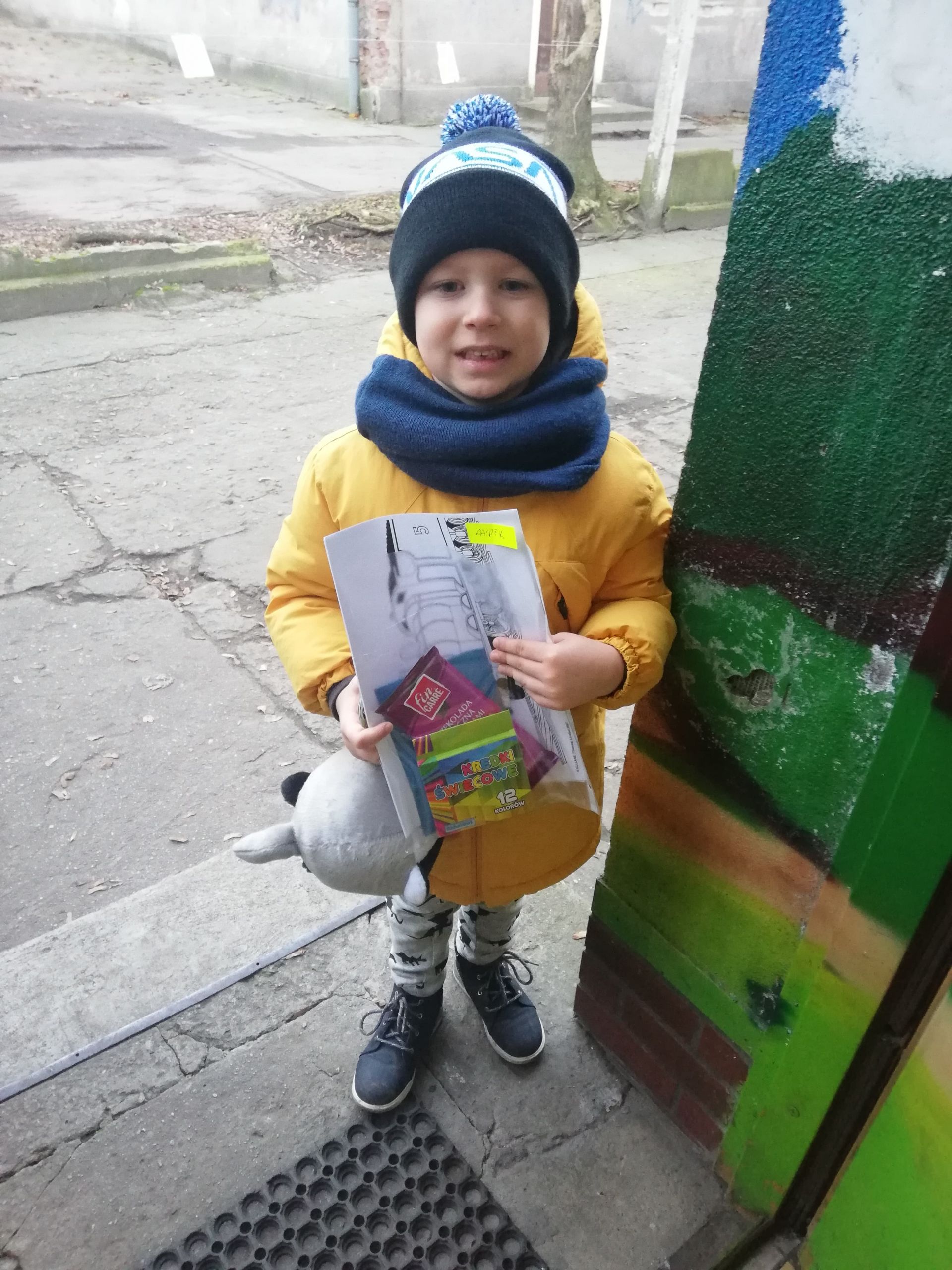 - Chłopiec odbierający oakiet edukacyjny z naszego Centrum.