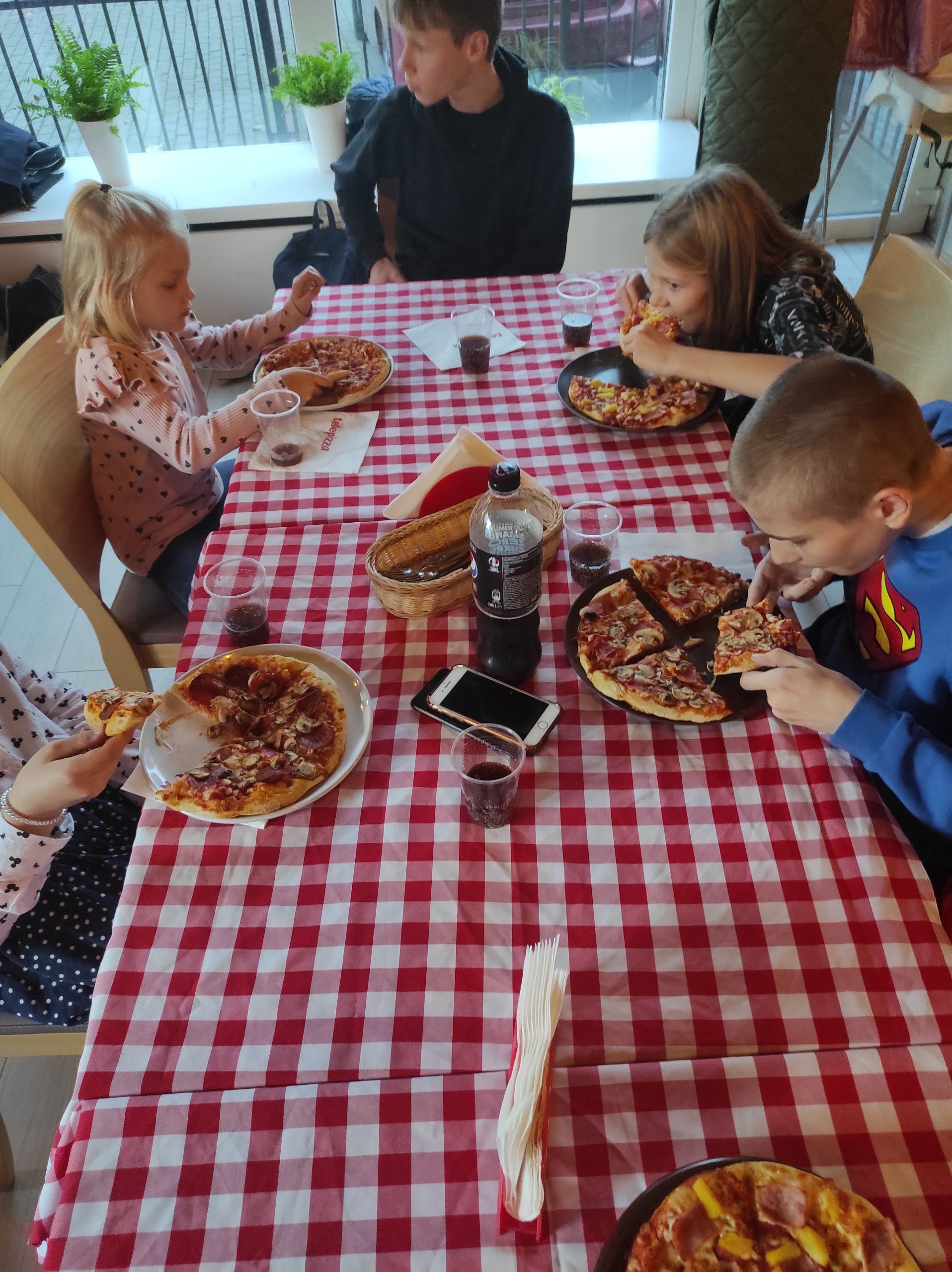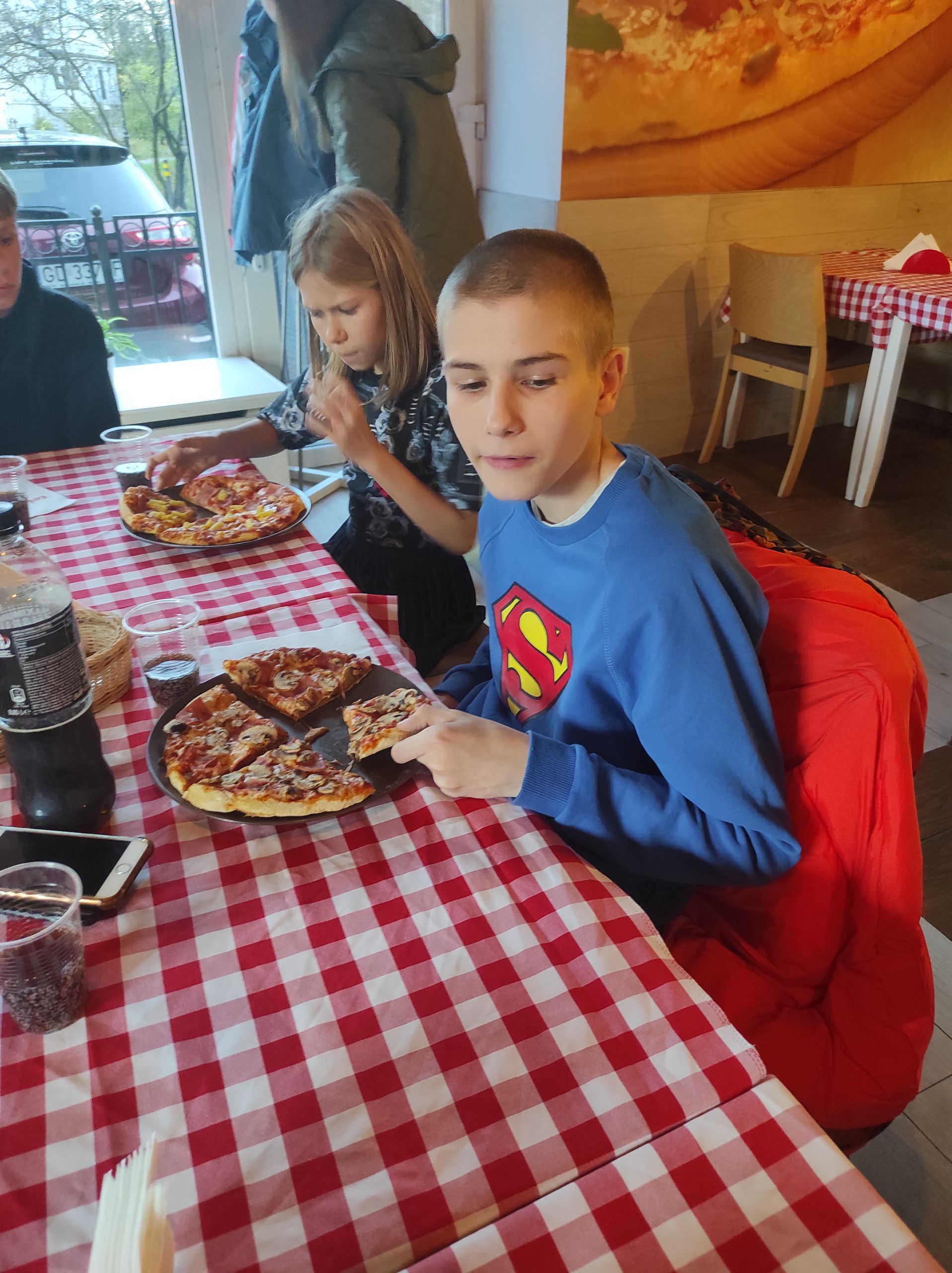 10.11.2022r. grupa „Anielska Kraina” wybrała się na pizzę, żeby uczcić zbliżający się długi weekend. Każdy mógł wybrać sobie taki rodzaj pizzy jaki lubi najbardziej. Przy okazji mieliśmy sporo czasu na rozmowy i żarty, takie wyjście zawsze pozytywnie wpływa na naszych podopiecznych oraz na nasze wspólne relacje. Niektórzy uznali, że to była najlepsza pizza jaką kiedykolwiek jedli. Dziękujemy Wam za wspólnie spędzony czas! 🙂