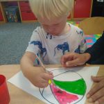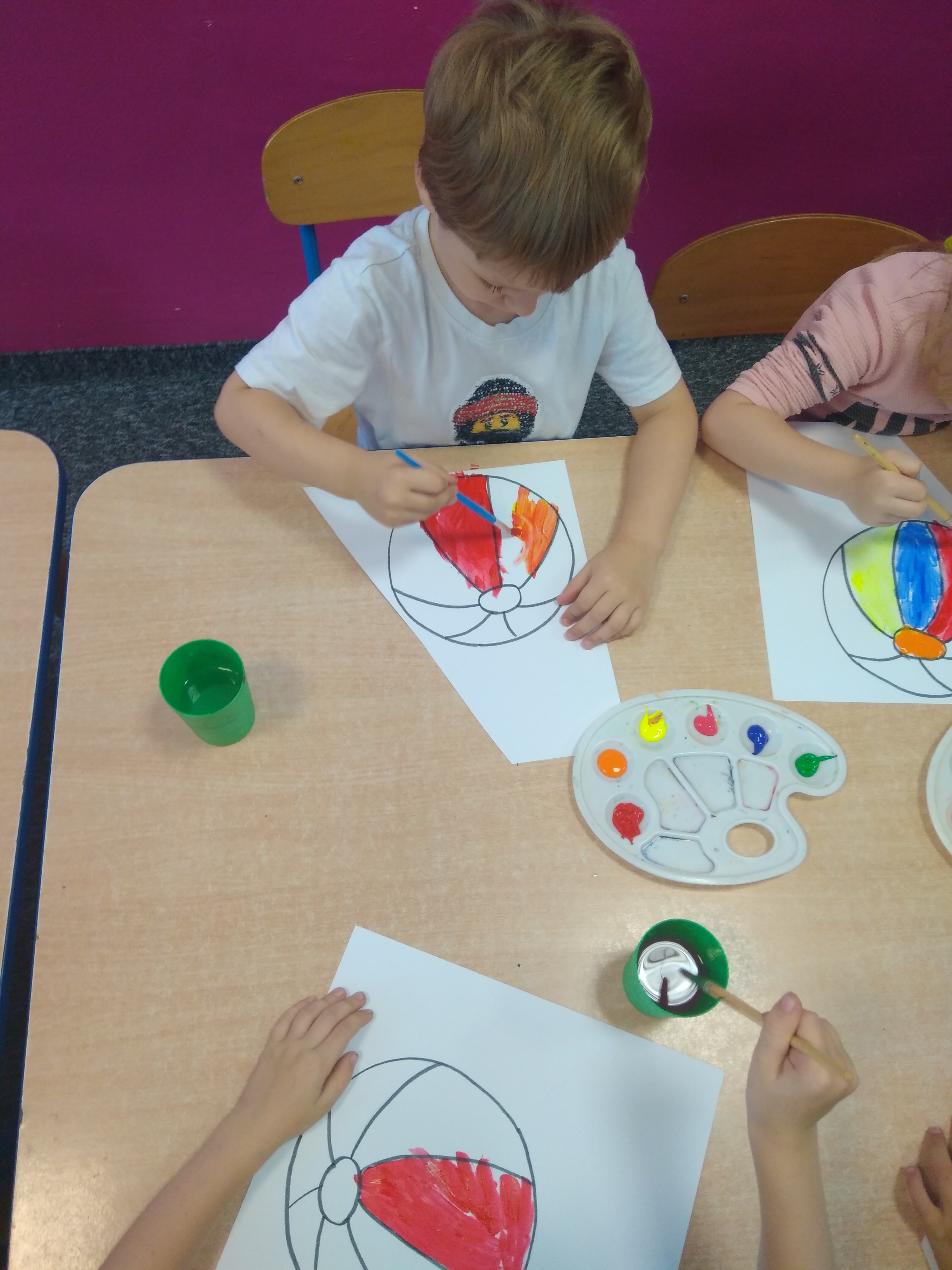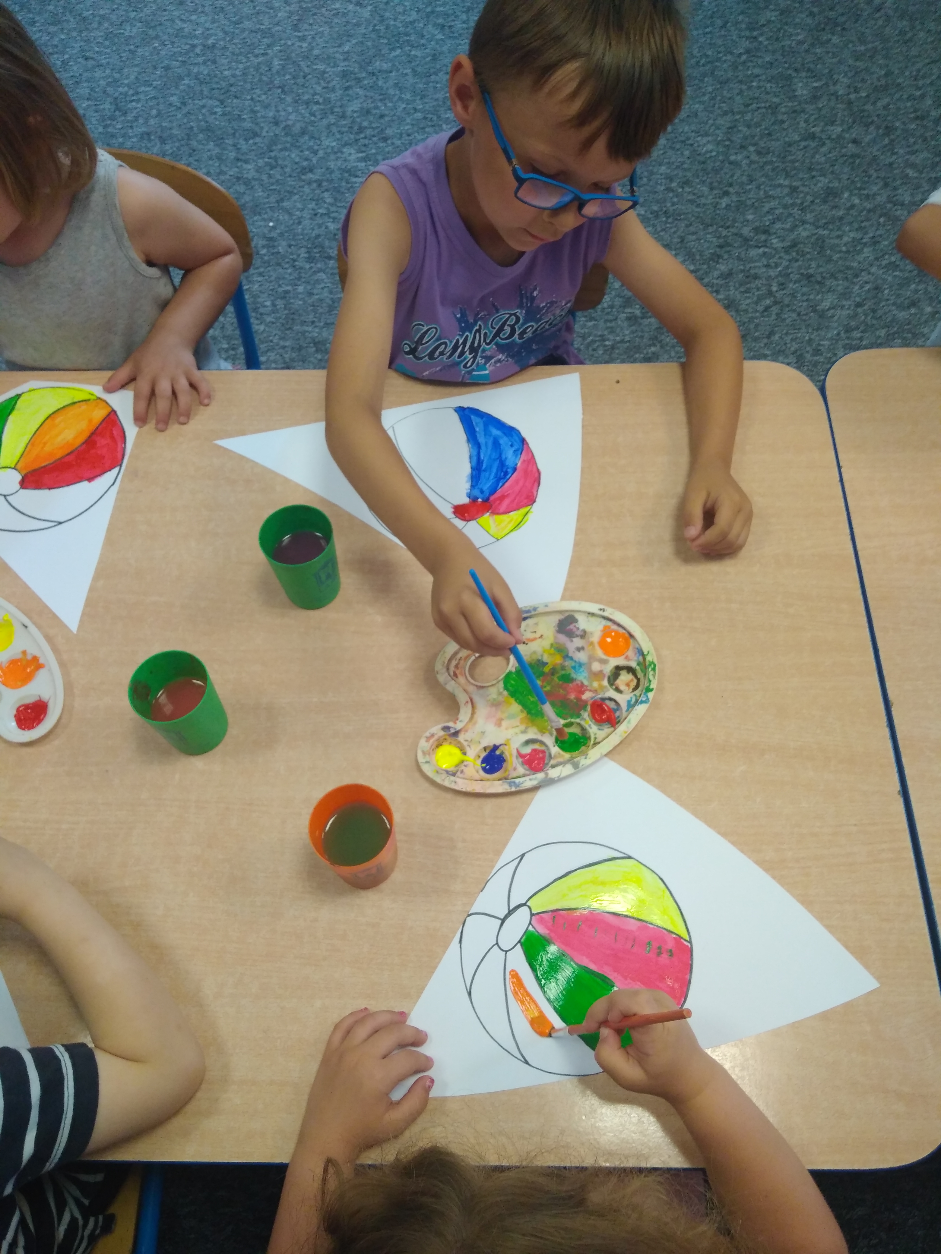 02.07.2019r. „Radosne Krasnale” stworzyły wakacyjne prace plastyczne. Rozwijały wyobraźnię, precyzję ruchów, koordynację oko-ręka, koncentrację, a przy okazji, jak zawsze, świetnie się bawiły.