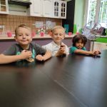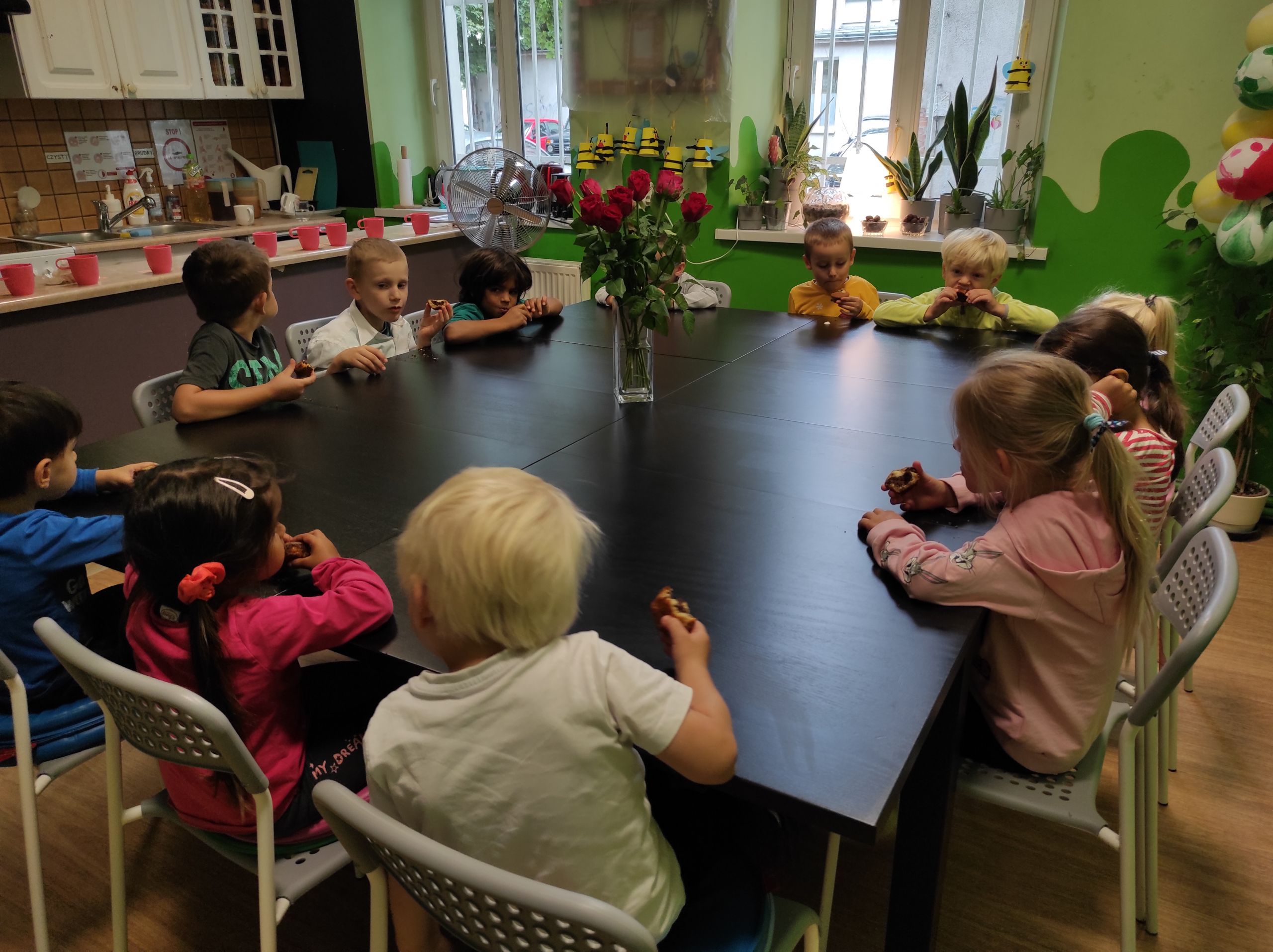 31.08.2021r. mieliśmy w naszym Centrum dzień pełen wzruszeń i wracamy do niego myślami dopiero po dłuższym czasie. To był dzień smutnych pożegnań, ponieważ kolejnego dnia część naszych podopiecznych zaczynała edukację szkolną i opuszczała grupę „Radosnych Krasnali” na zawsze. Mieliśmy czas, żeby powspominać minione miesiące, albo i dni! Ponieważ niektórzy nasi podopieczni byli z nami odkąd skończyli 3 lata! Nie zabrakło również pysznych lodów z bitą śmietaną, ciasteczek i wyjątkowego nastroju.