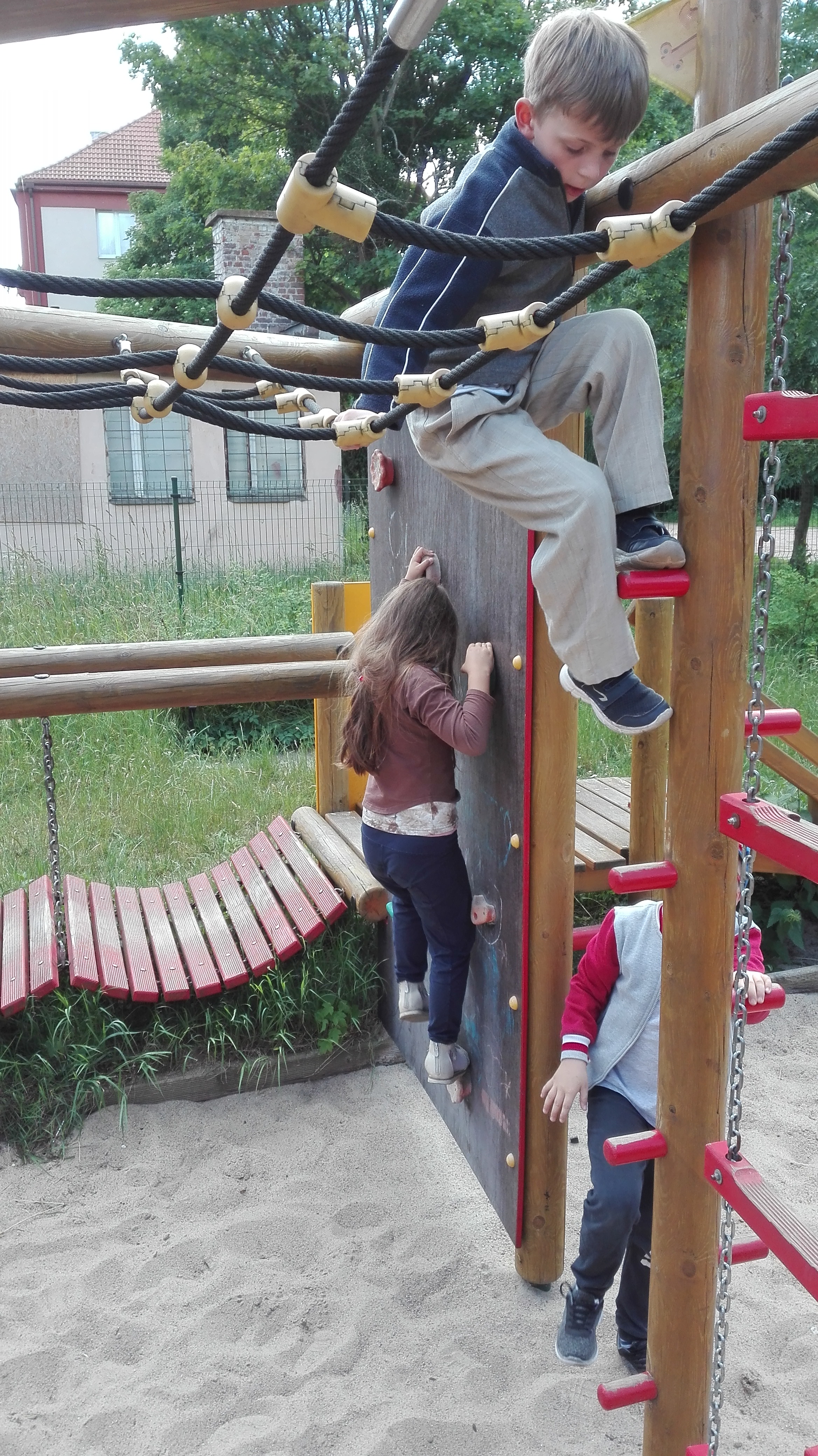 Korzystając z ładnej pogody i wakacyjnego czasu dzieciaki z „Anielskiej Krainy” chętnie wychodzą  w teren, na place zabaw itp. aby ćwiczyć swoją sprawność i oczywiście dobrze się wspólnie bawić.