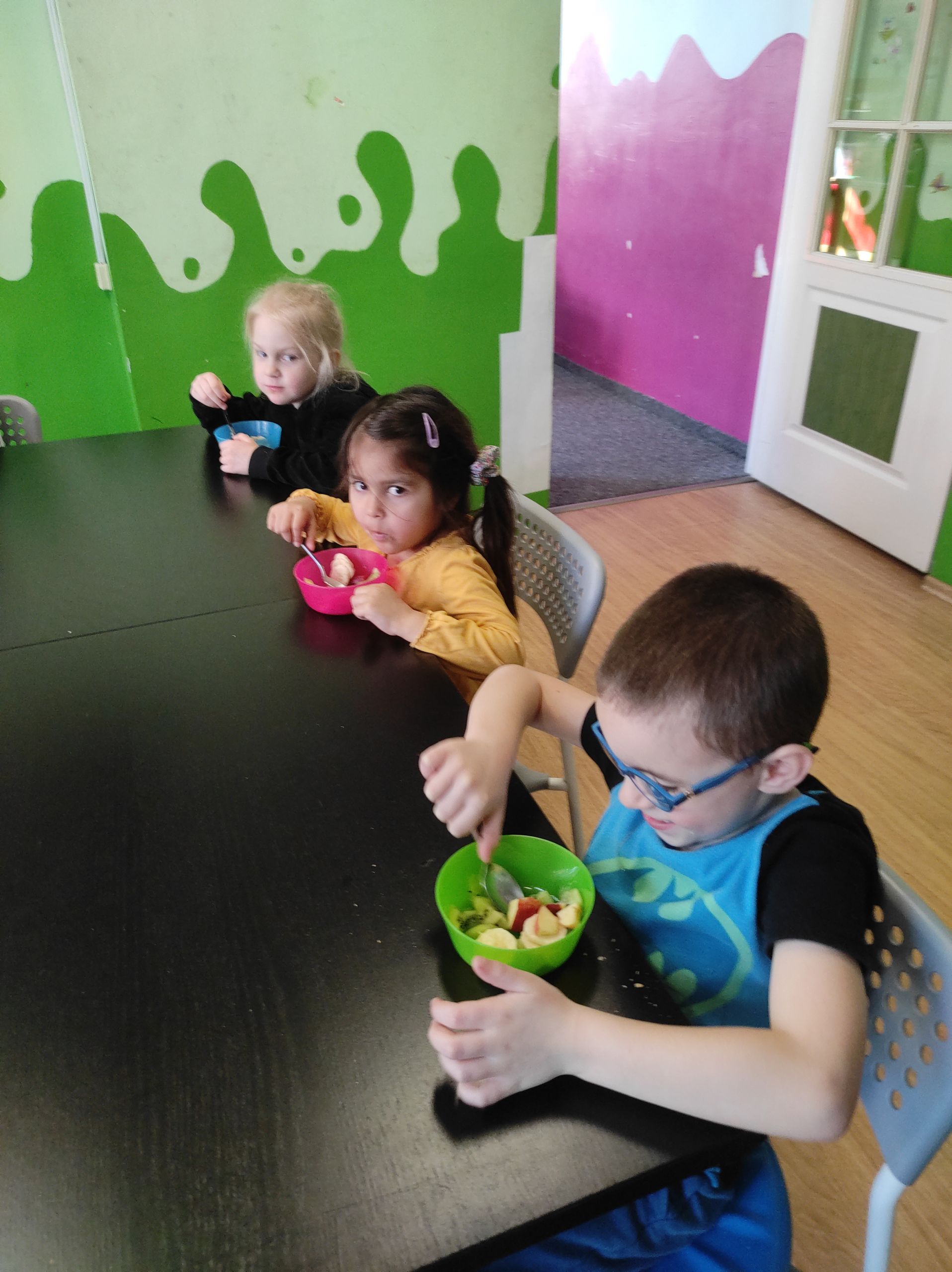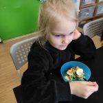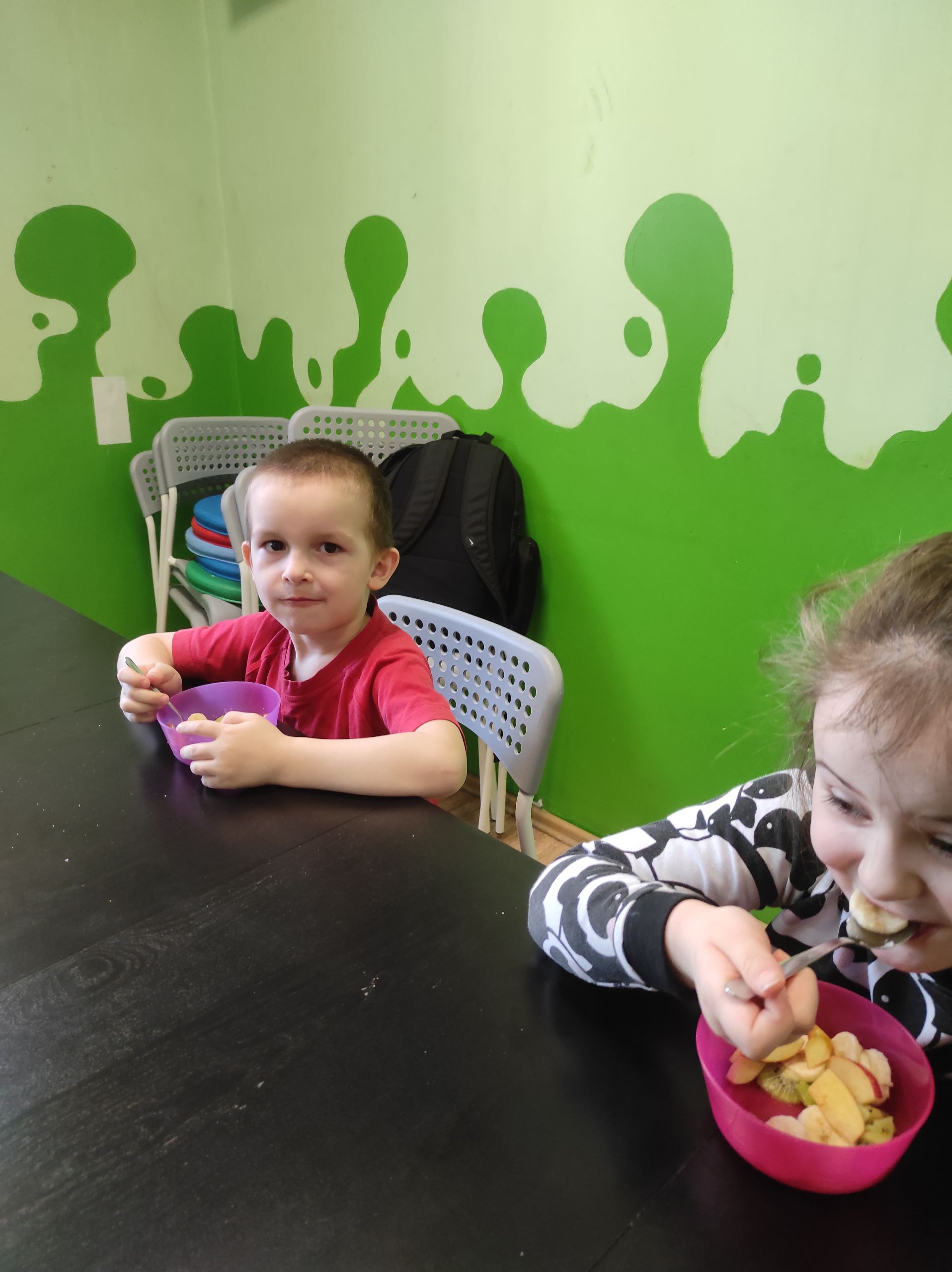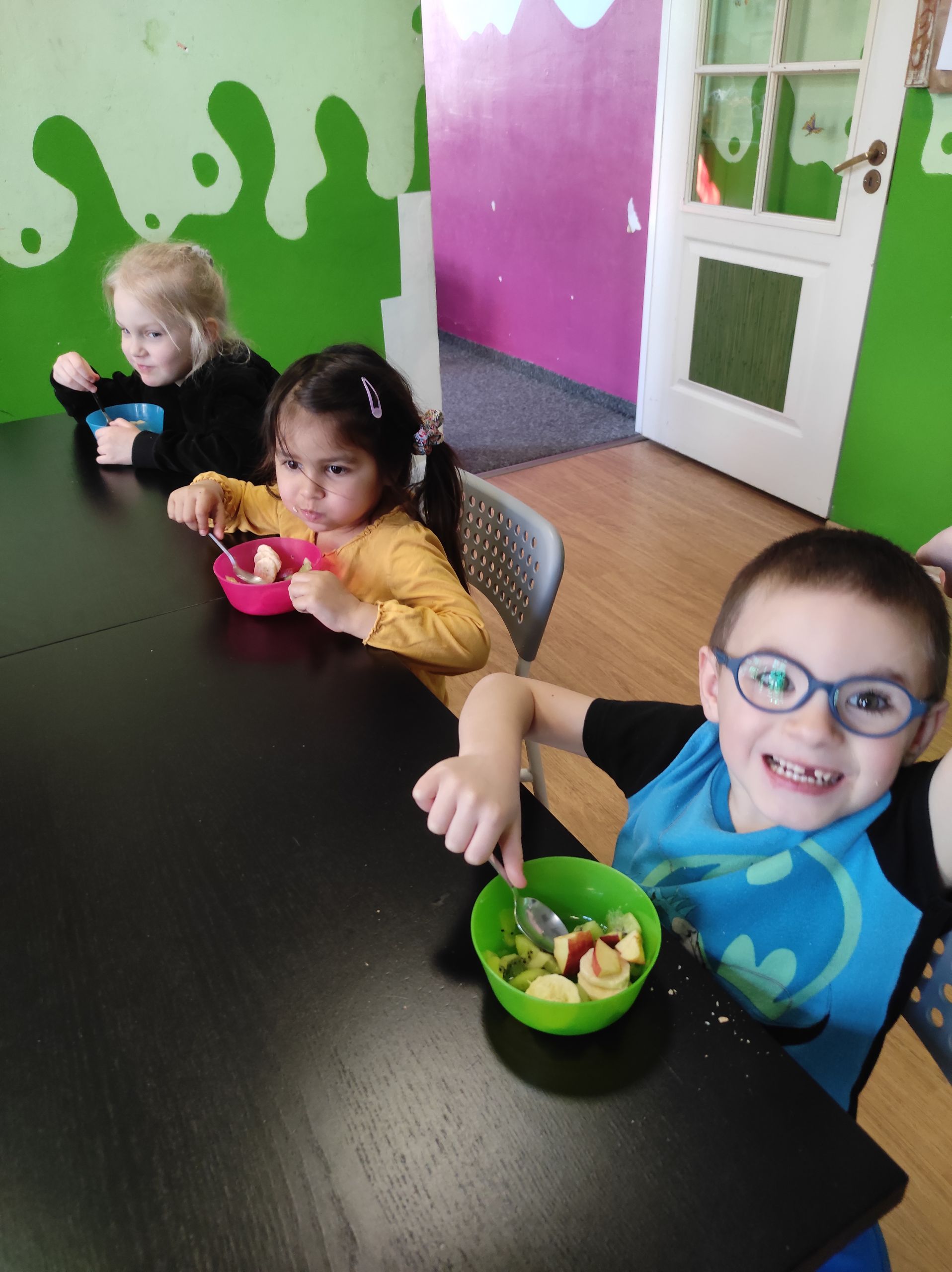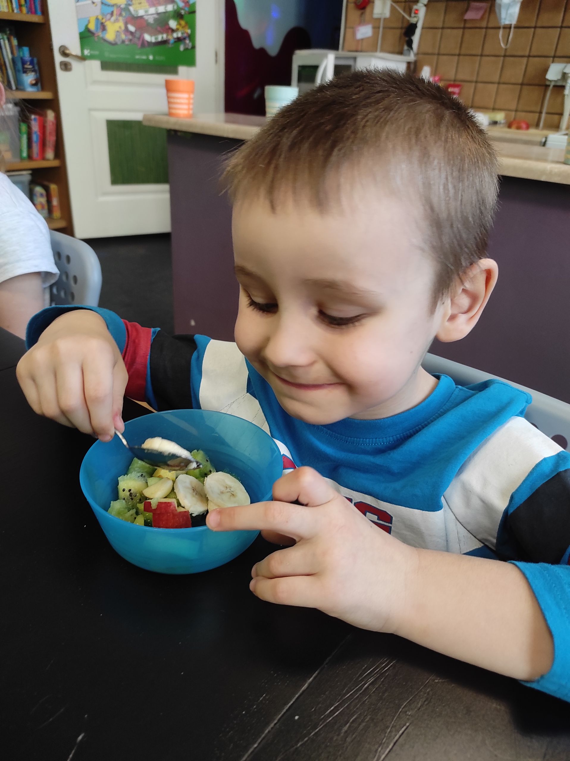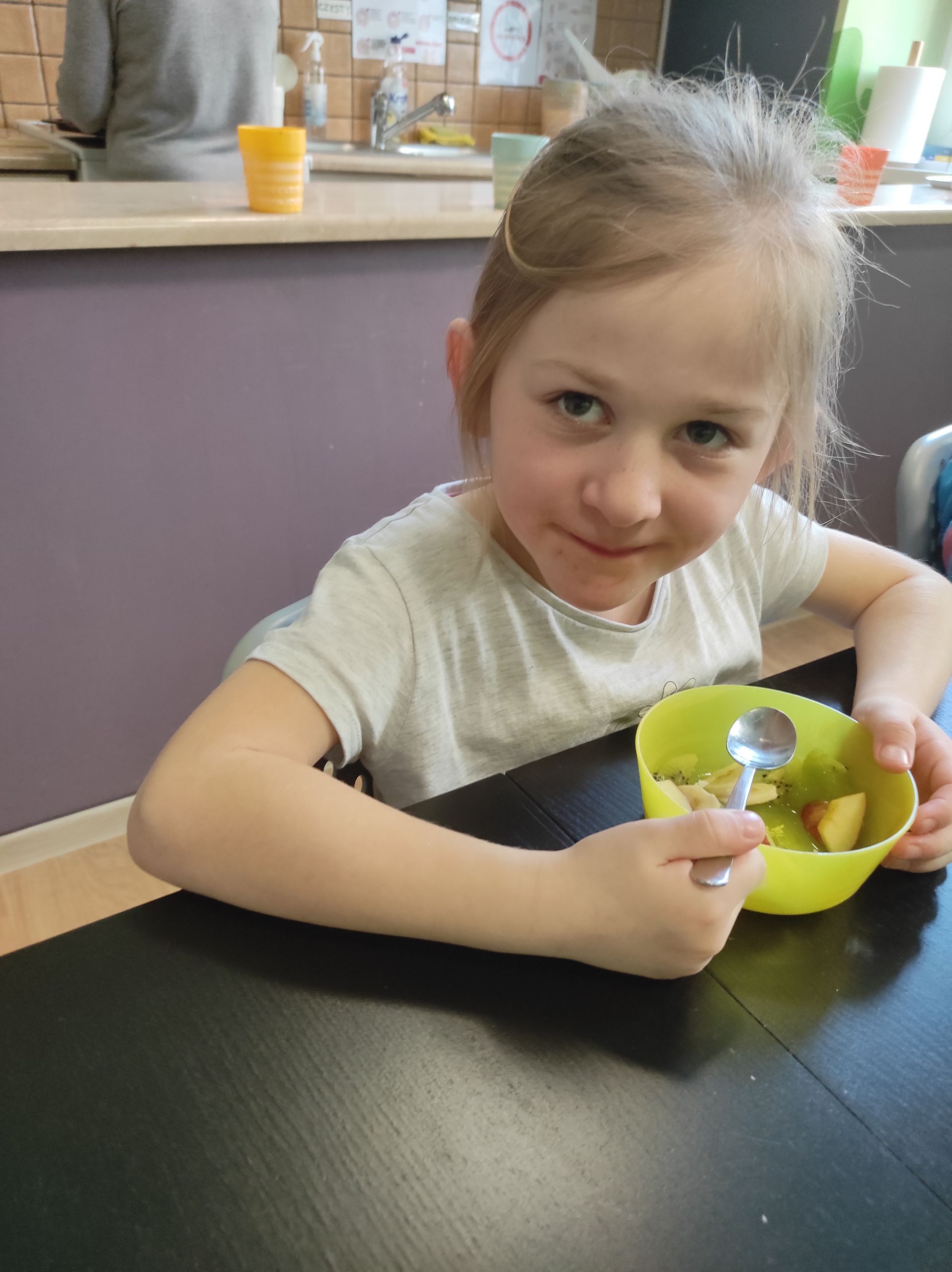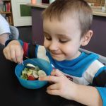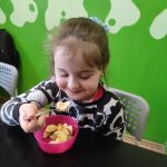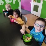15.03.2022r. „Radosne Krasnale” skorzystały z dobrodziejstwa programu Żółty Talerz i delektowały się sałatką owocową. Podczas rozmowy kierowanej dzieci rozmawiały o tym jakie owoce można wykorzystać do sałatek i jakie połączenia byłyby ich ulubione. A u nas pojawiła się niezawodna i pyszna klasyka – banan, jabłko i kiwi. Nasze przedszkolaki zajadały taką sałatkę ze smakiem i nauczyły się nowej formy deseru.