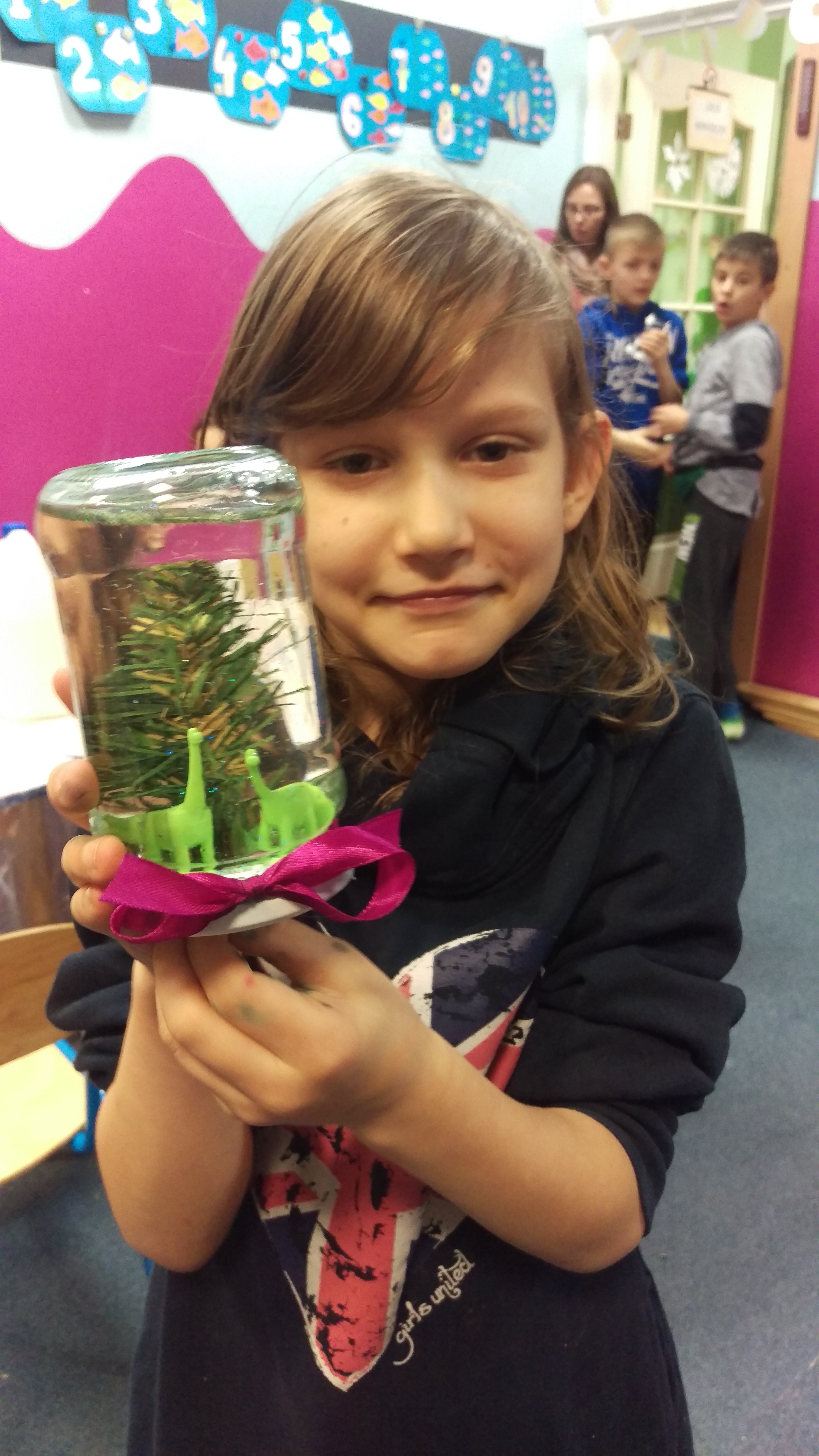 III Społecznego Gimnazjum STO Gdańsk, którzy przygotowali dla nas przygodę w zimowej krainie. Z ich pomocą tworzyliśmy piękne zimowe pejzaże, dla nikogo nie zabrakło choinek, domków, śniegu, gwiazdek czy też przeróżnych figurek, które wykorzystaliśmy w bardzo kreatywny sposób. Zwieńczeniem naszej pracy było dolanie wody i dosypanie sporej ilości brokatu do słoików, które zamieniły się w magiczne „Słoiki śnieżne”. Praca i jej efekty przyniosły wszystkim mnóstwo zabawy i pod koniec dnia na każdej buzi było widać uśmiech. Dziękujemy!