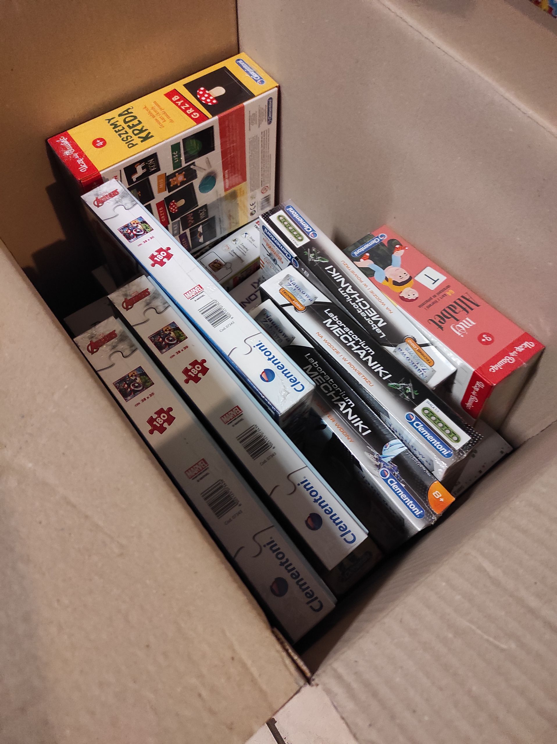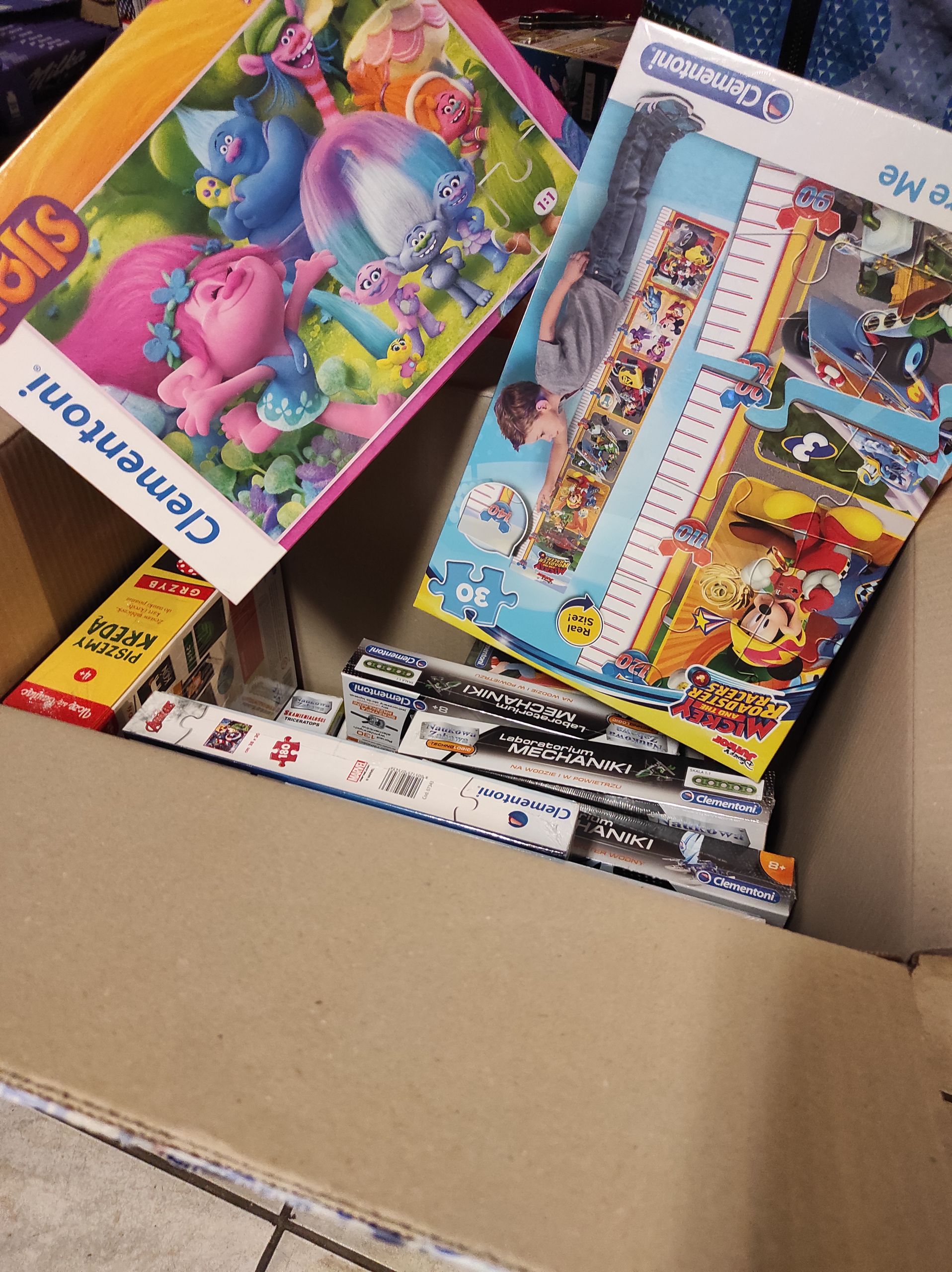 - Paczka z grami, puzzlami i zabawkami dla naszych podopiecznych.