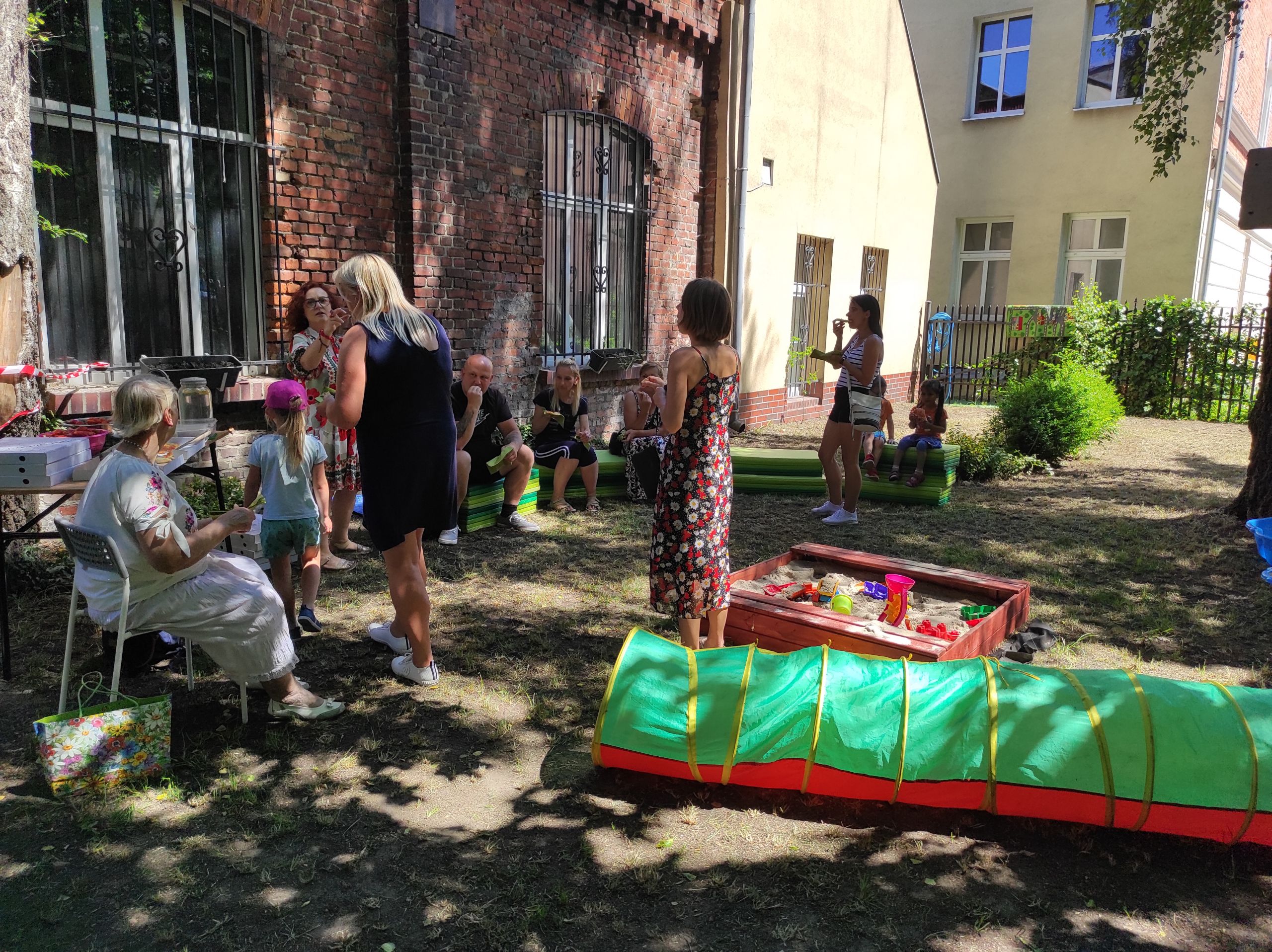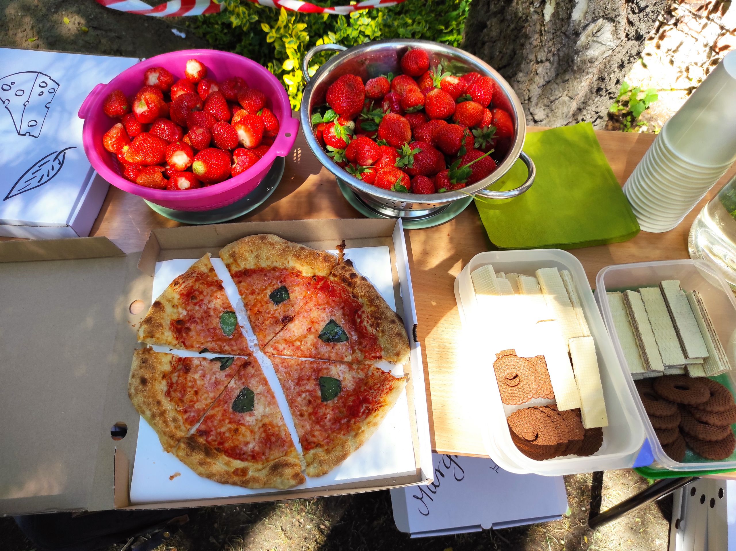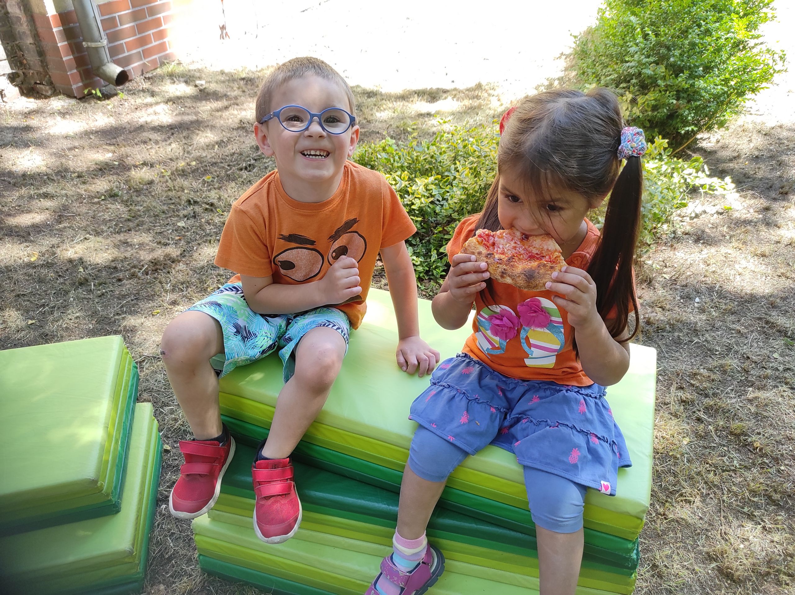 17.06.2021r. w podziękowaniu dla rodziców naszych Krasnali zorganizowaliśmy piknik w naszym ogródku. Rodzice na początku wiosny bardzo się zaangażowali w prace ogrodowe oraz zakupili nową piaskownicę do ogródka. Dzięki ich pracy oraz wsparciu nasze dzieciaki mają teraz piękne miejsce do zabawy i aktywnego wypoczynku. Na naszym pikniku nie zabrakło pyszności – pizzy, truskawek oraz kilku słodkości, które wszyscy zajadali ze smakiem. Urzekły nas pudełka od pizzy, które miały śliczne rysunki, żaden z nich nie powtarzał się dwa razy. Mielimy też czas na różnego rodzaju zabawy oraz puszczanie baniek mydlanych, które przyniosły dużo uśmiechu dla dzieci, jak i dla dorosłych 🙂 🙂 🙂