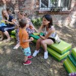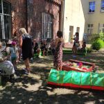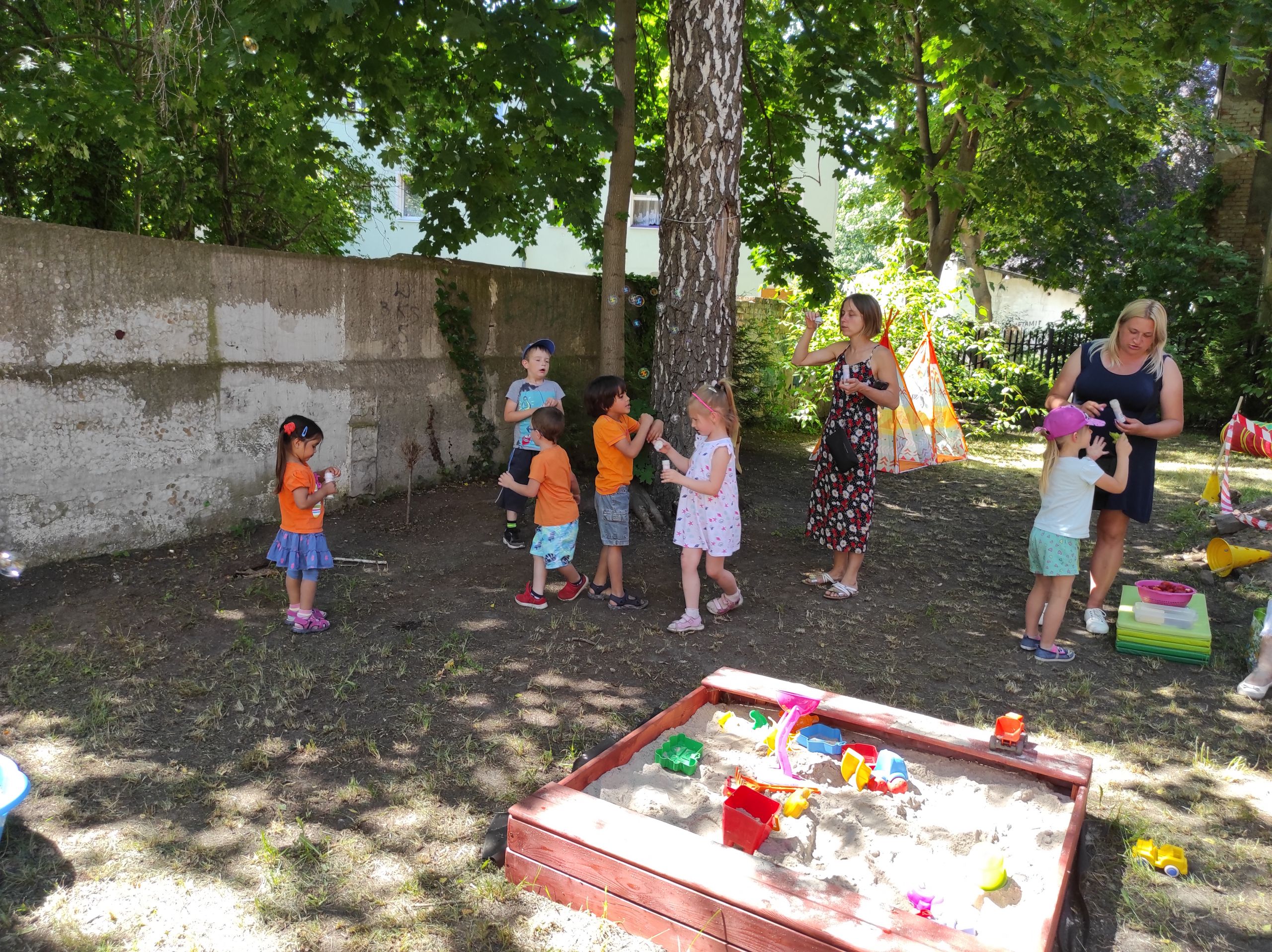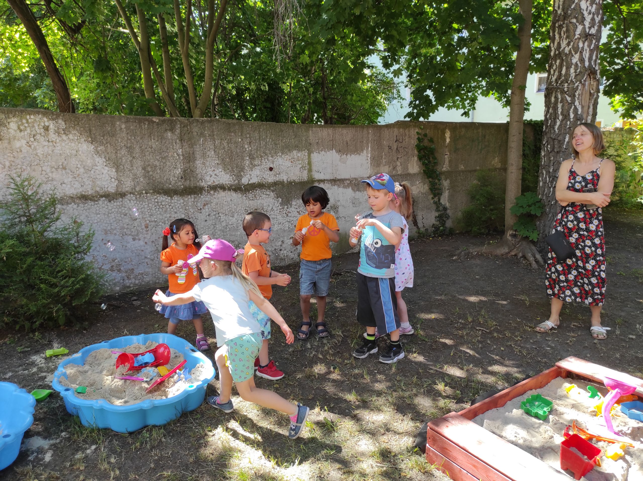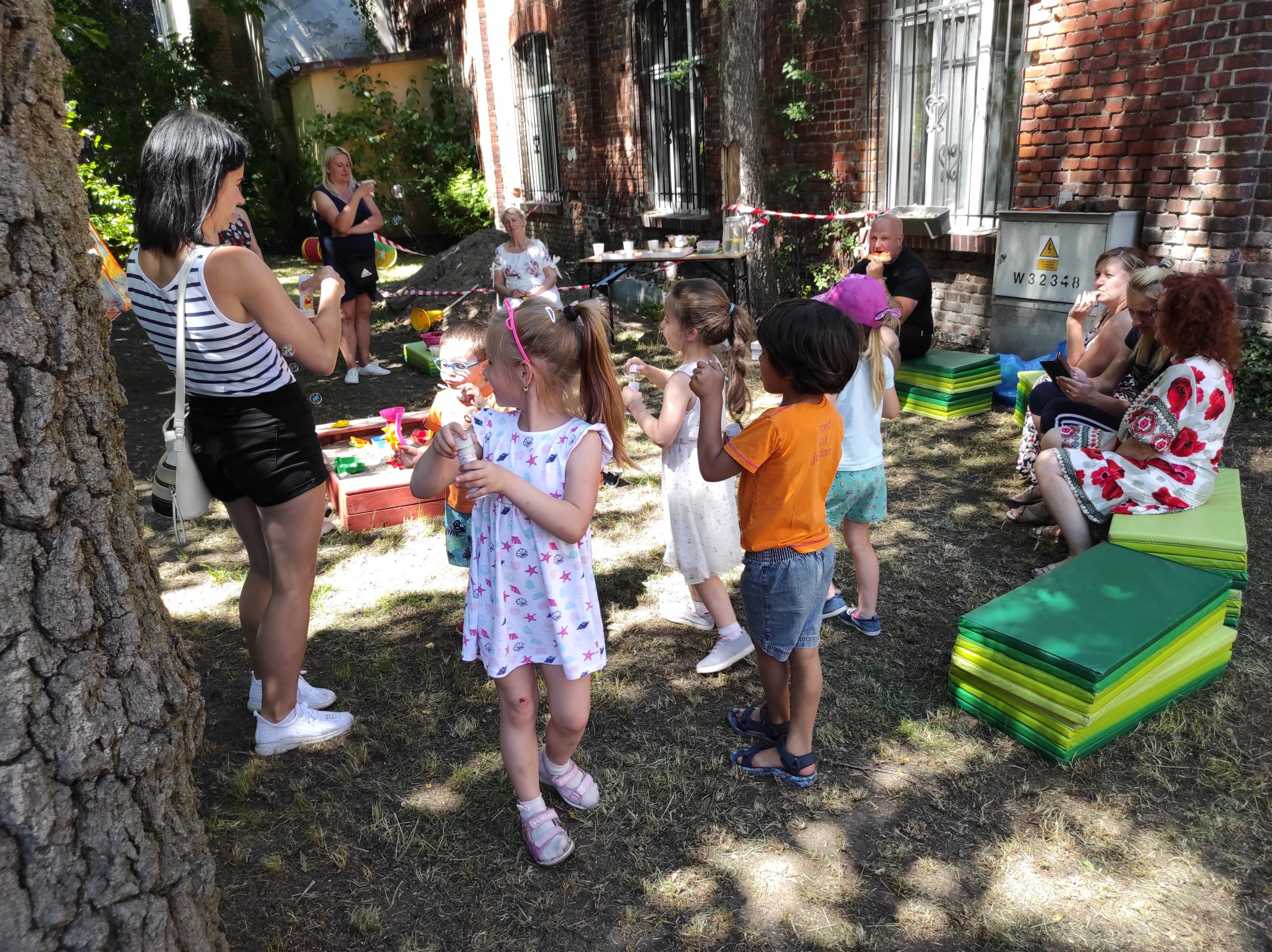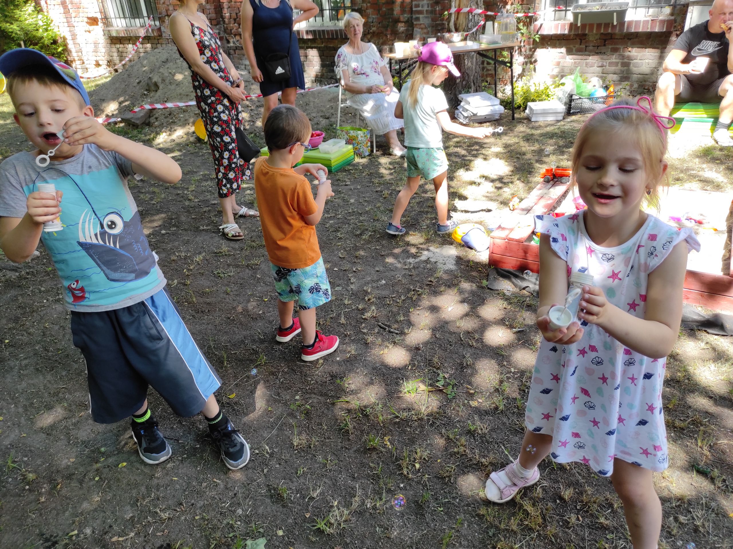 17.06.2021r. w podziękowaniu dla rodziców naszych Krasnali zorganizowaliśmy piknik w naszym ogródku. Rodzice na początku wiosny bardzo się zaangażowali w prace ogrodowe oraz zakupili nową piaskownicę do ogródka. Dzięki ich pracy oraz wsparciu nasze dzieciaki mają teraz piękne miejsce do zabawy i aktywnego wypoczynku. Na naszym pikniku nie zabrakło pyszności – pizzy, truskawek oraz kilku słodkości, które wszyscy zajadali ze smakiem. Urzekły nas pudełka od pizzy, które miały śliczne rysunki, żaden z nich nie powtarzał się dwa razy. Mielimy też czas na różnego rodzaju zabawy oraz puszczanie baniek mydlanych, które przyniosły dużo uśmiechu dla dzieci, jak i dla dorosłych 🙂 🙂 🙂