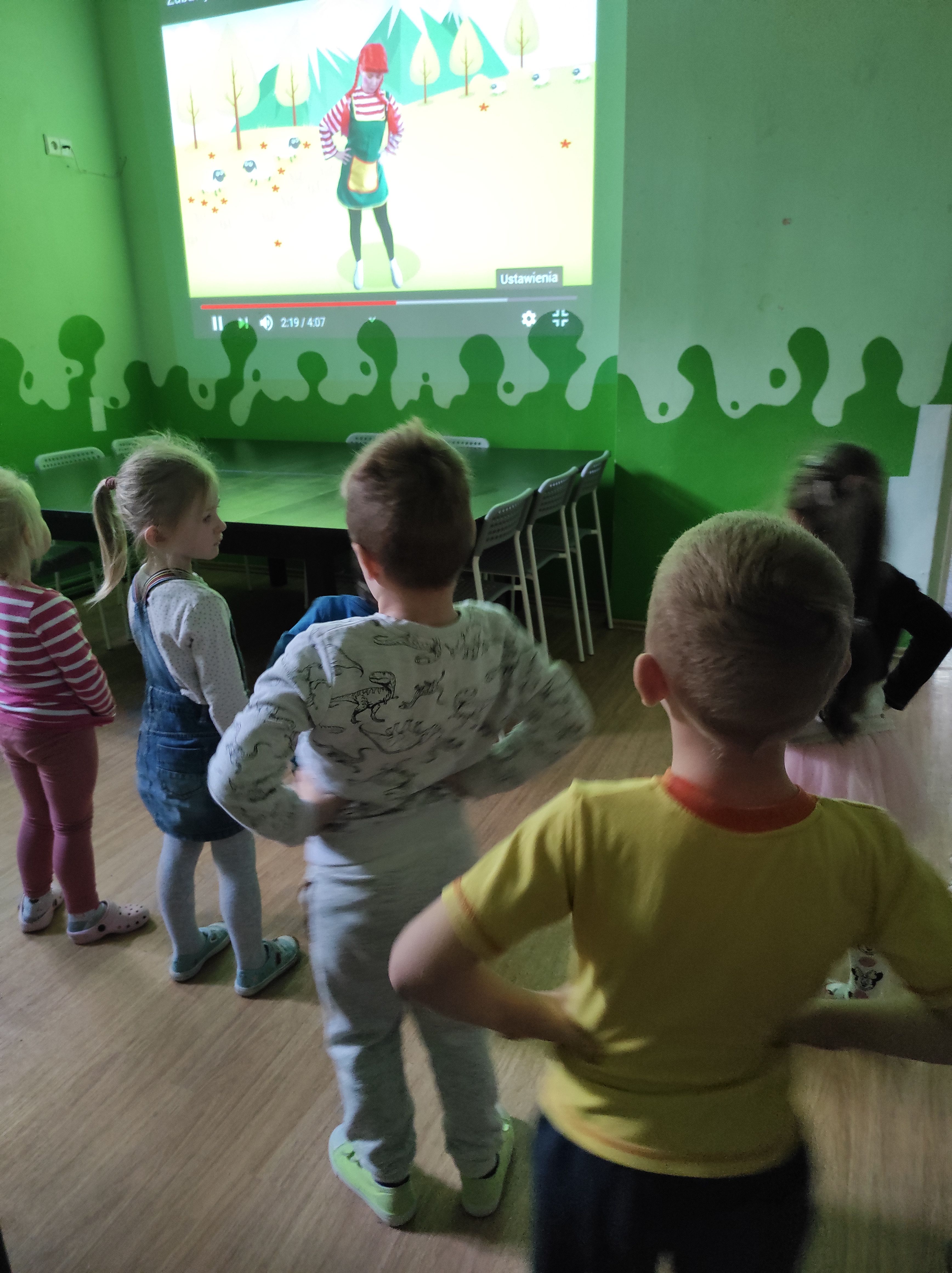 „Radosne Krasnale” regularnie uczestniczą w zajęciach rytmiczno-tanecznych, które uwielbiają! Zajęcia te dodatkowo rozwijają koordynację ruchów, motorykę dużą oraz poczucie rytmu i muzykalność, które również są bardzo pomocne w całościowym wspieraniu rozwoju dzieci przedszkolnych. 28.10.2020r. nasze maluchy, dzięki nowemu projektorowi, wzięły udział w zajęciach ruchowych z Pipi – najpierw była rozgrzewka, a potem różne ruchy taneczne do muzyki. Krasnale świetnie się bawiły, a my cieszymy się, że projektor wspiera naszą codzienną pracę i poszerza możliwości 🙂