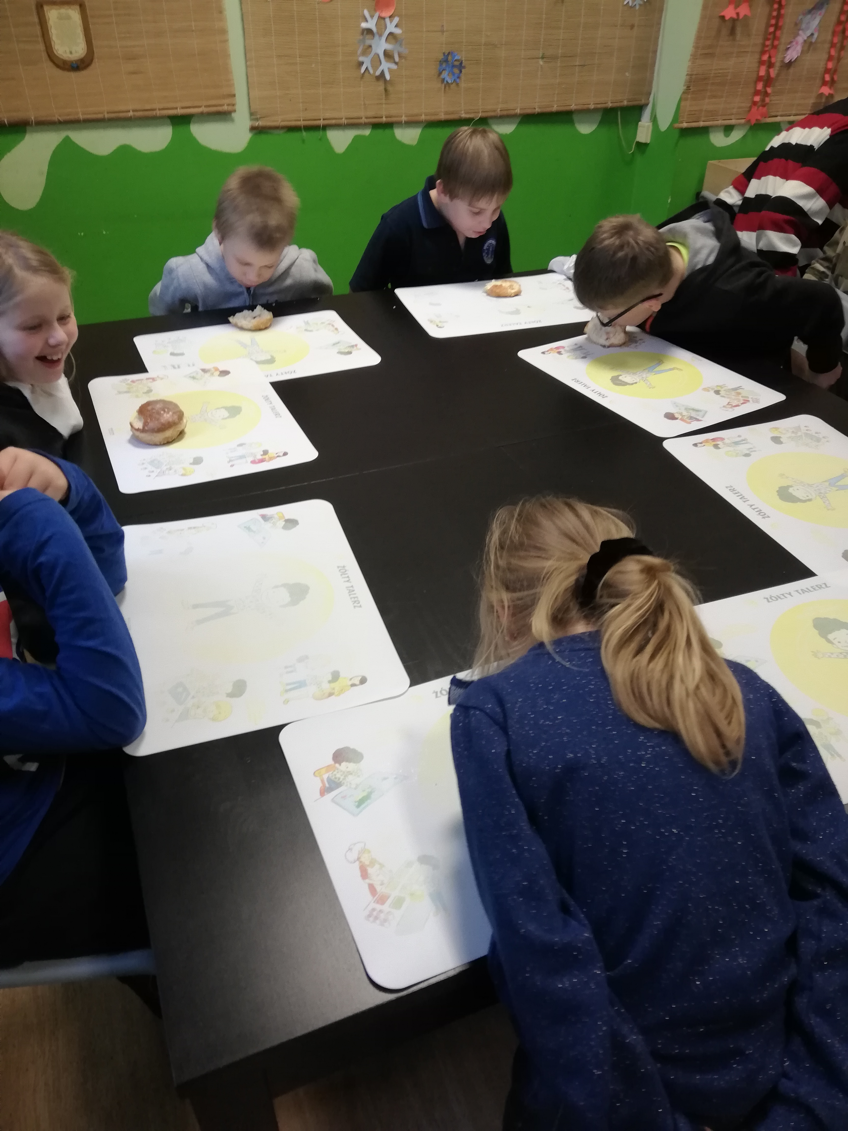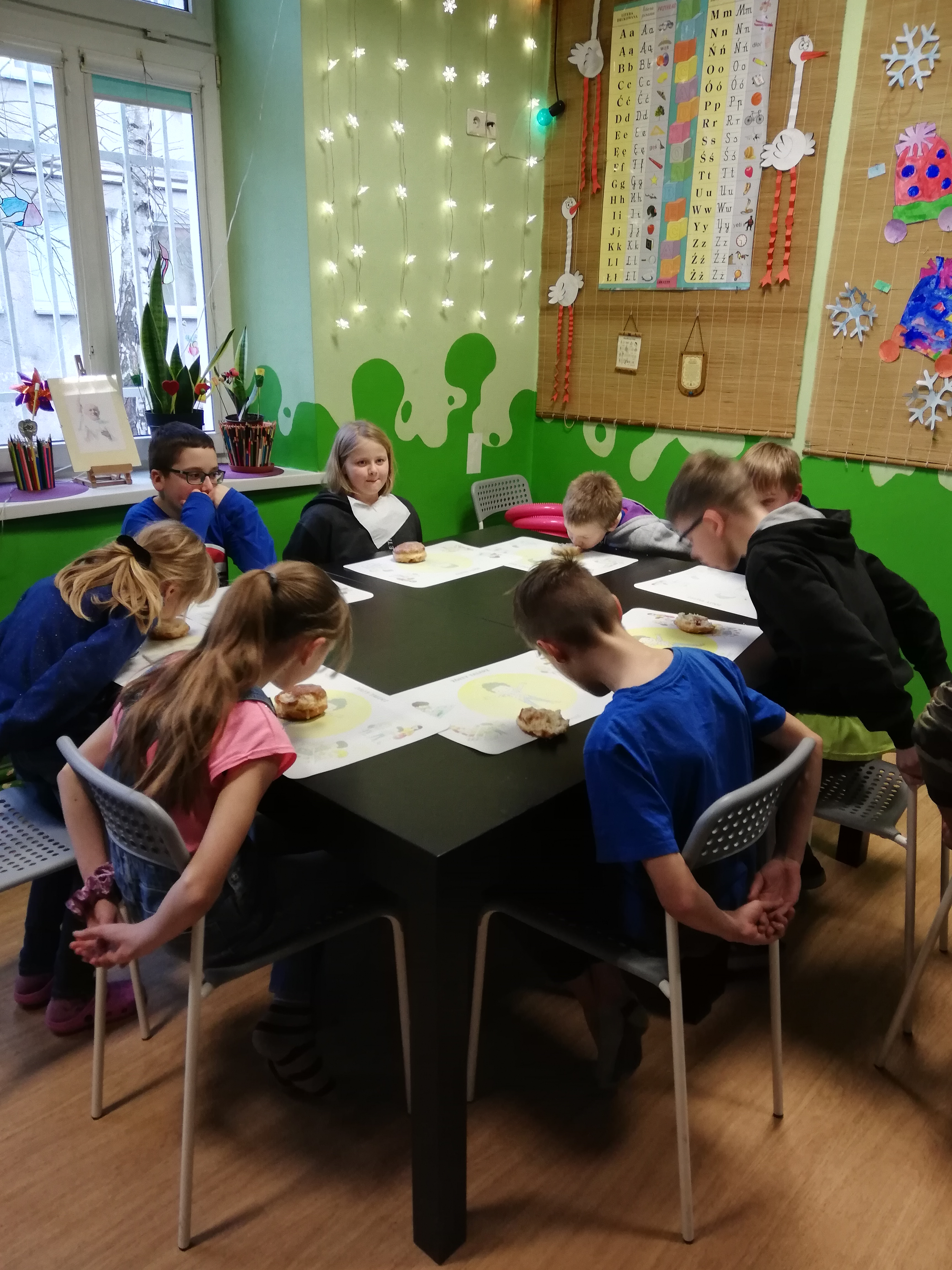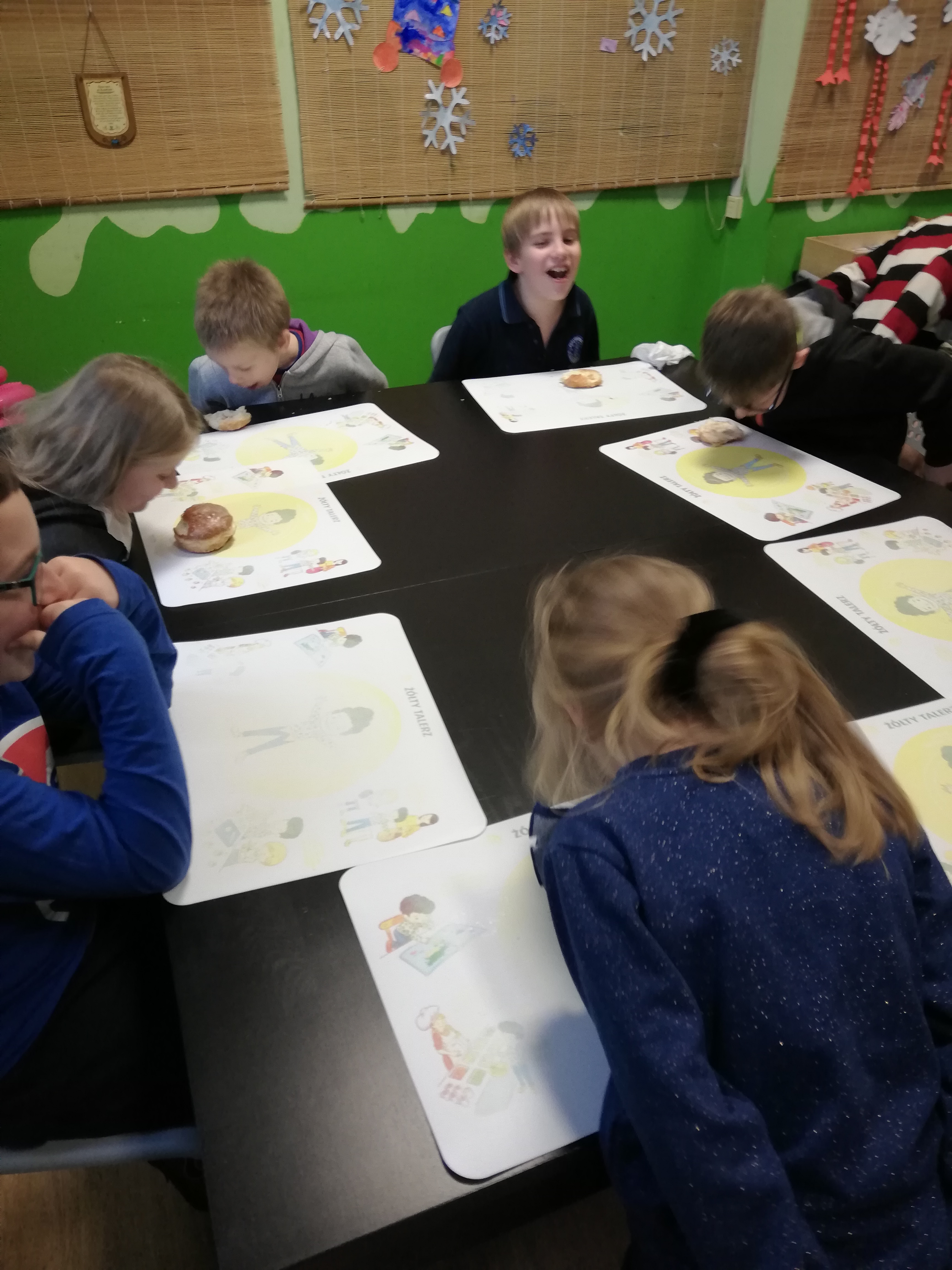 20.02.2020r. obchodziliśmy w naszym Centrum Tłusty Czwartek. Było wyjątkowo, ponieważ maluchy specjalnie na tę okazję nauczyły się wiersza o pączku, a grupa „Anielska Kraina” urządziła zawody na jedzenie pączków bez użycia rąk. Na koniec dzieci kolorowały podobizny pączków. Było bardo wesoło i przepysznie! Dziękujemy Piekarni Graham z Sierakowic za wsparcie nas takimi pysznościami!