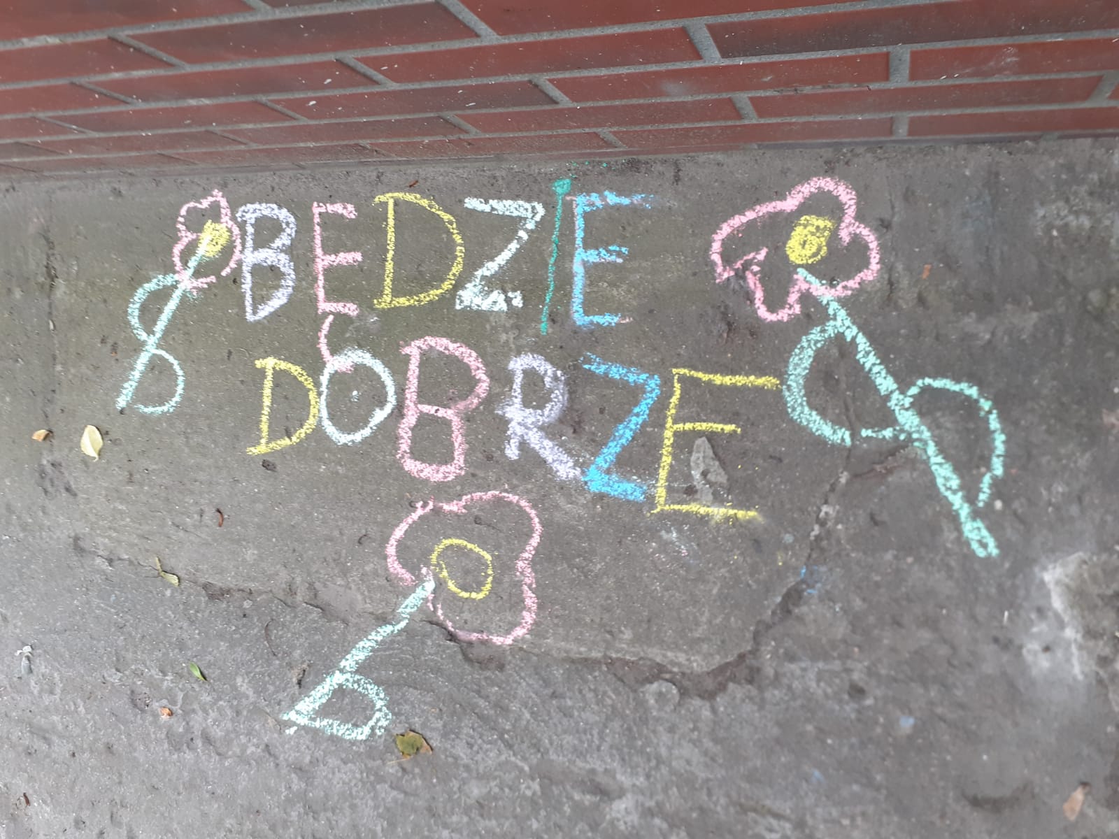 02.07.2020r. uczestnicy naszych zajęć tworzyli optymistyczne kredowe napisy przed naszą placówką. Rysowanie czy pisanie kredą, to od zawsze uwielbiane zajęcie dzieciaków, więc cieszymy się, że mogliśmy w taki pozytywny sposób ozdobić okolicę 😉 Mamy nadzieję, że chociaż jedna osoba uśmiechnęła się dzięki naszej pracy!