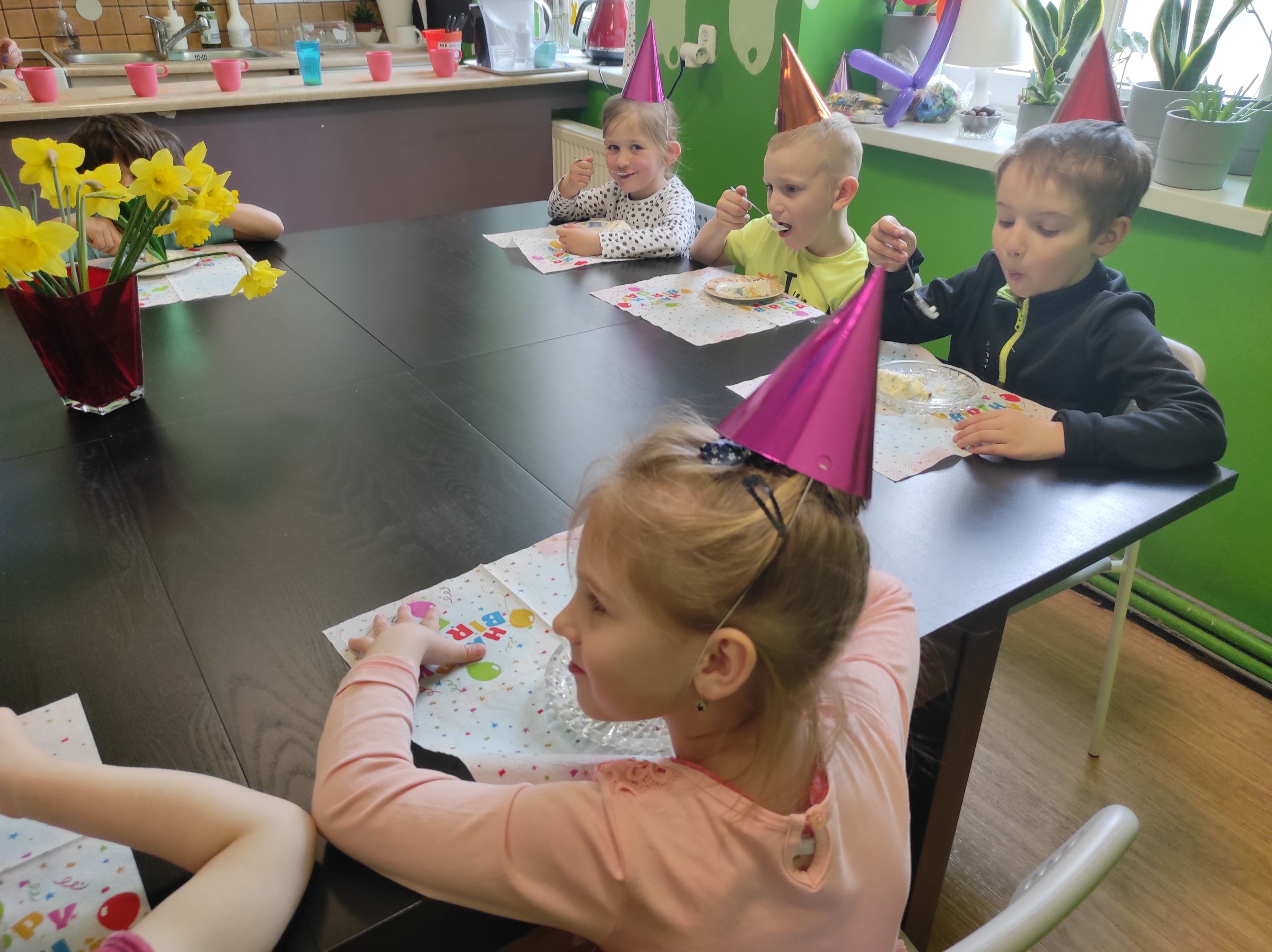 21.04.2021r. świętowaliśmy urodziny Nikolki z grupy „Radosne Krasnale”. Takie świętowanie, to zawsze duże przeżycie dla naszych dzieciaków, a szczególnie dla naszej solenizantki! Nikola pięknie się ubrała i zadbała o wspaniałe dekoracje naszej sali. To był dzień pełen radości, wspaniałych życzeń i uśmiechu. Z resztą zdjęcia mówią same za siebie – zapraszamy do galerii 🙂 A dla Nikolki jeszcze raz – wszystkiego najlepszego!