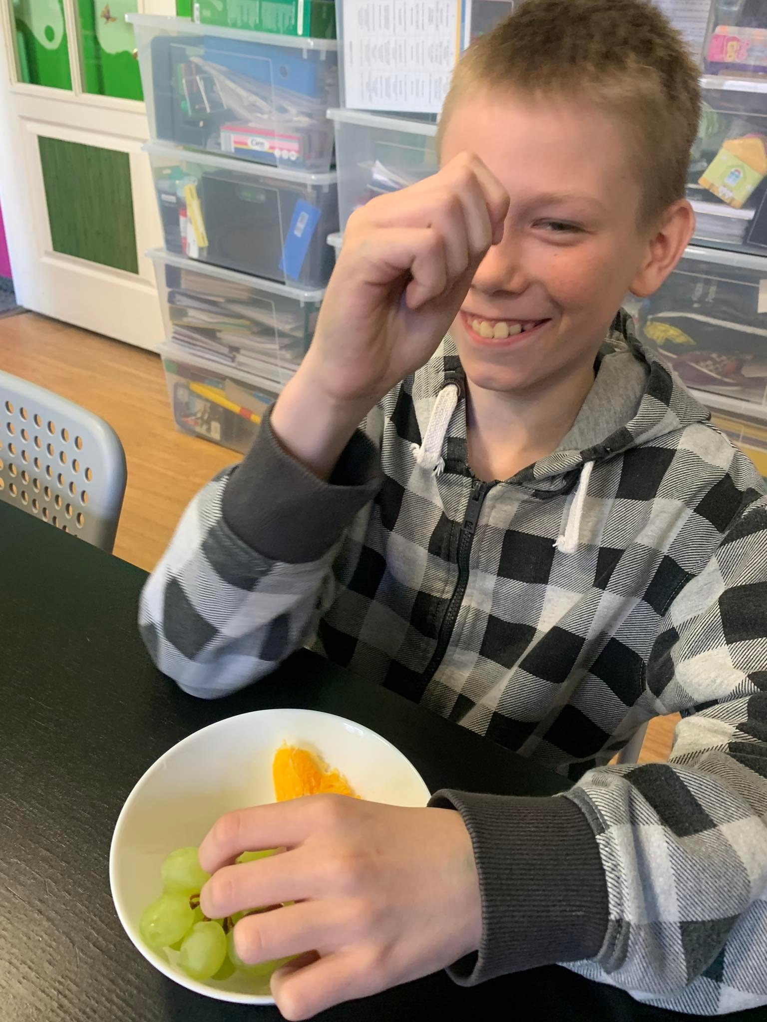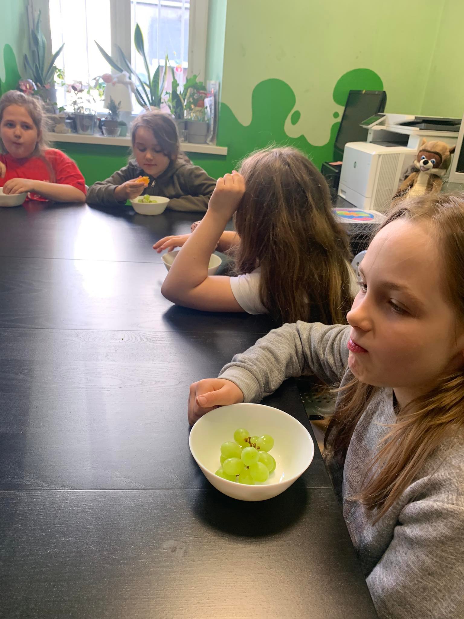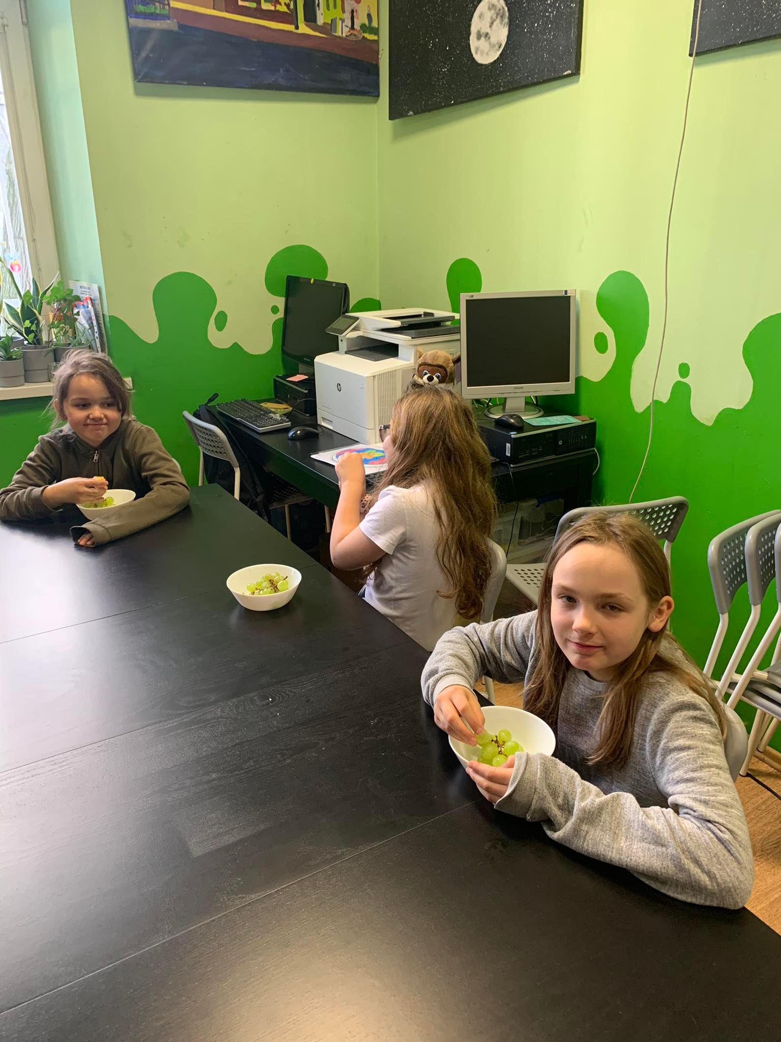 Dnia 12.04.2022r. uczestnicy naszych zajęć mieli okazję spróbować pysznych winogron i pomarańczy. Aby jeszcze bardziej urozmaicić im słodką przekąskę wychowawcy przygotowali krótkie zajęcia i rozmowę kierowaną – dzieci mówiły gdzie rosną dane owoce, a także z jakich krajów pochodzą. Następnie odbyło się głosowanie, co im bardziej smakowało. Ku zaskoczeniu wszystkich padł remis, dzięki któremu dzieci zgodnie stwierdziły, że oba owoce były przepyszne.