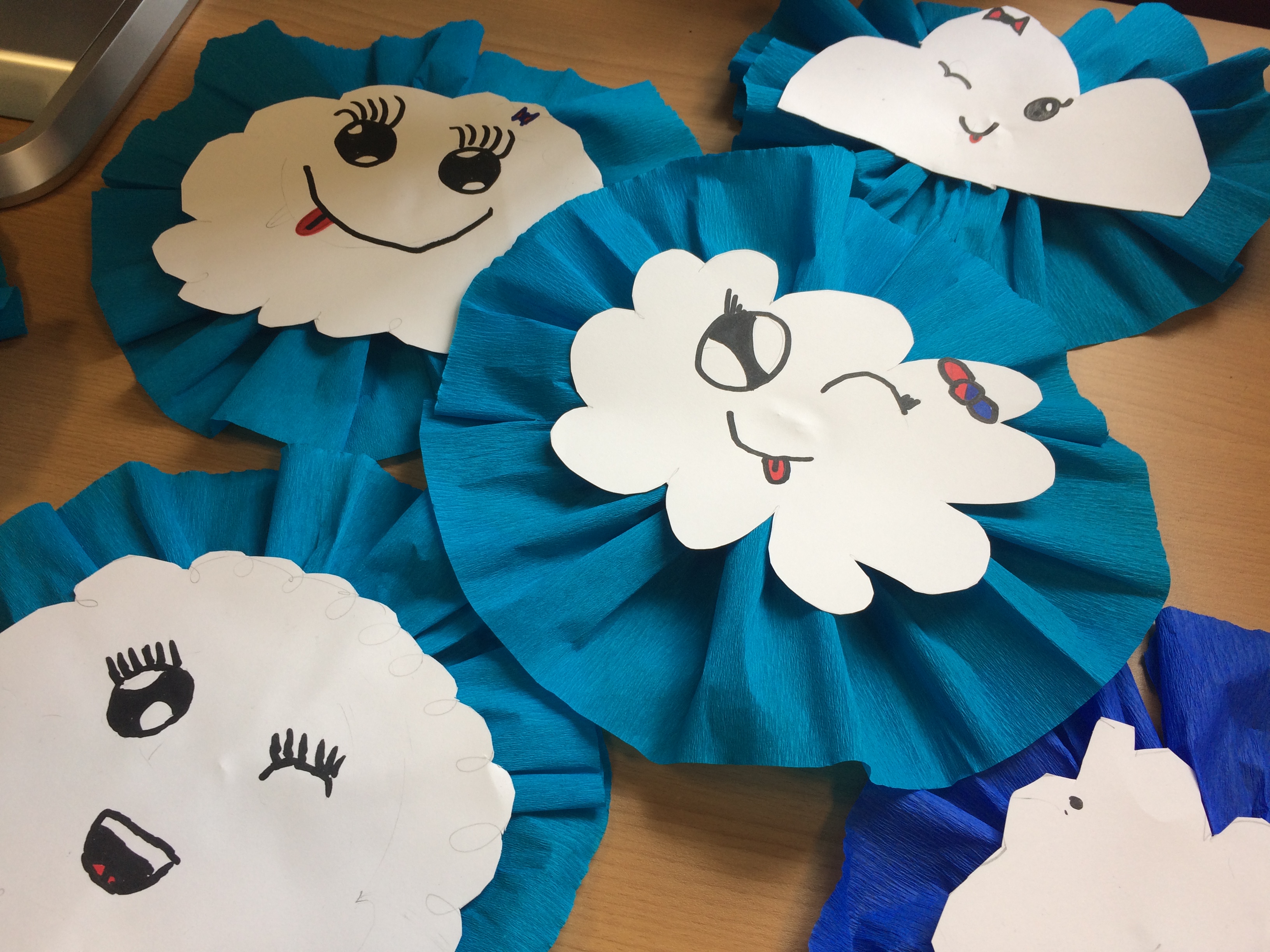 Podczas zajęć plastycznych, 16.04.2018, wychowankowie naszego Centrum tworzyli chmurki z bibuły i papieru. Jak to bywa.., każda inna, ale wszystkie w radosnym, wiosennym nastroju. Chmurki dołączyły do słoneczka, dekorując naszą jadalnię.