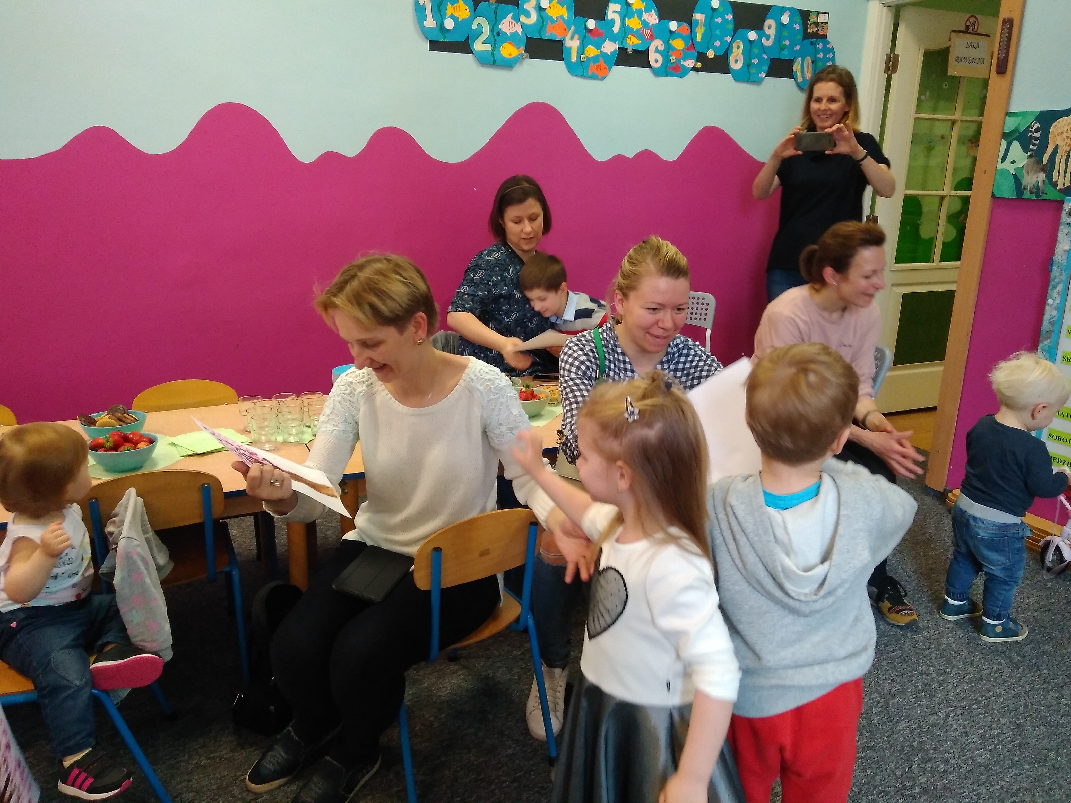 27.05.2019r. „Radosne Krasnale” odwiedzili bardzo specjalnie goście – mamy naszych maluchów. Ten dzień był bardzo wyjątkowy i jeszcze bardziej radosny niż zwykle. Dzieciaki powiedziały wierszyk, którego uczyły się przez cały tydzień oraz wręczyły mamom laurki. Był też przepyszny i zdrowy poczęstunek, który zniknął ze stołów bardzo szybko. Na zakończenie wychowawcy przeprowadzili dla mam zajęcia z zakresu nauki i współpracy ze swoimi dziećmi poprzez zabawę. Było mnóstwo śmiechu i dobrej zabawy – dziękujemy za wizytę i życzymy takich cudownych uśmiechów na co dzień! 🙂