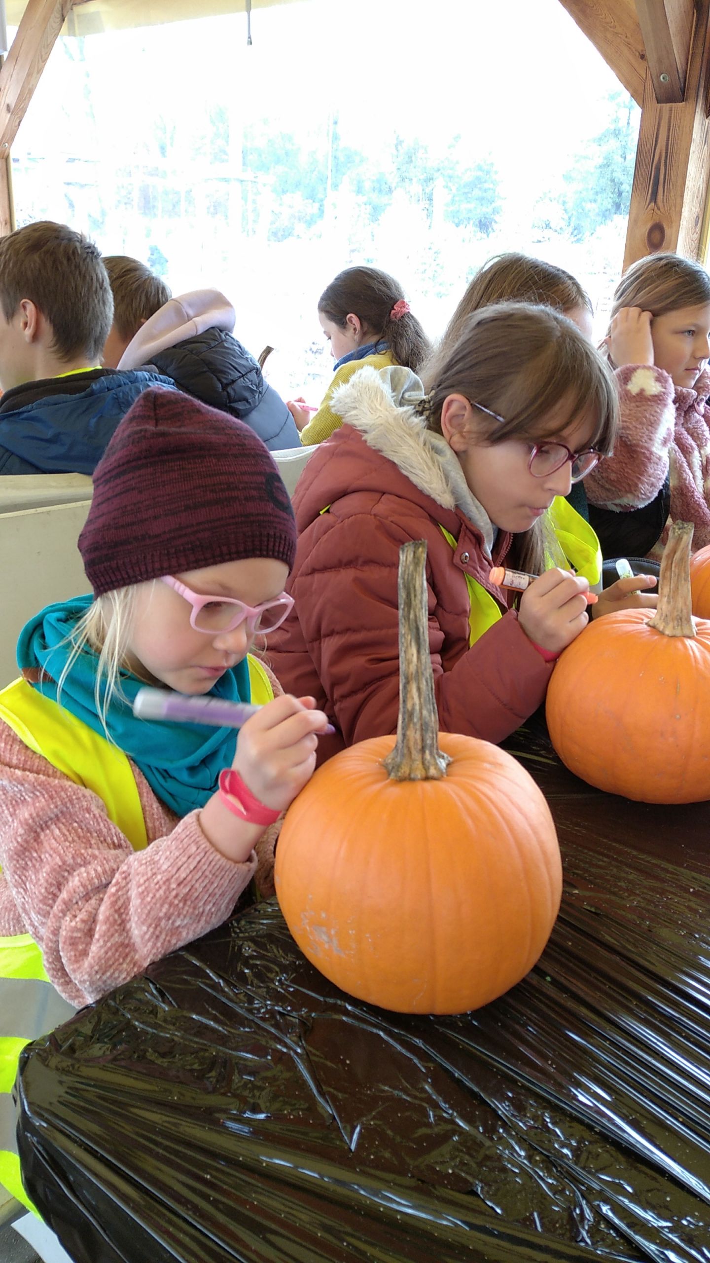 Uczestniczyliśmy również w warsztatach artystycznych, dotyczących jesieni. Malowaliśmy dynie, które zabraliśmy ze sobą do domu!