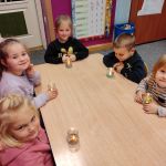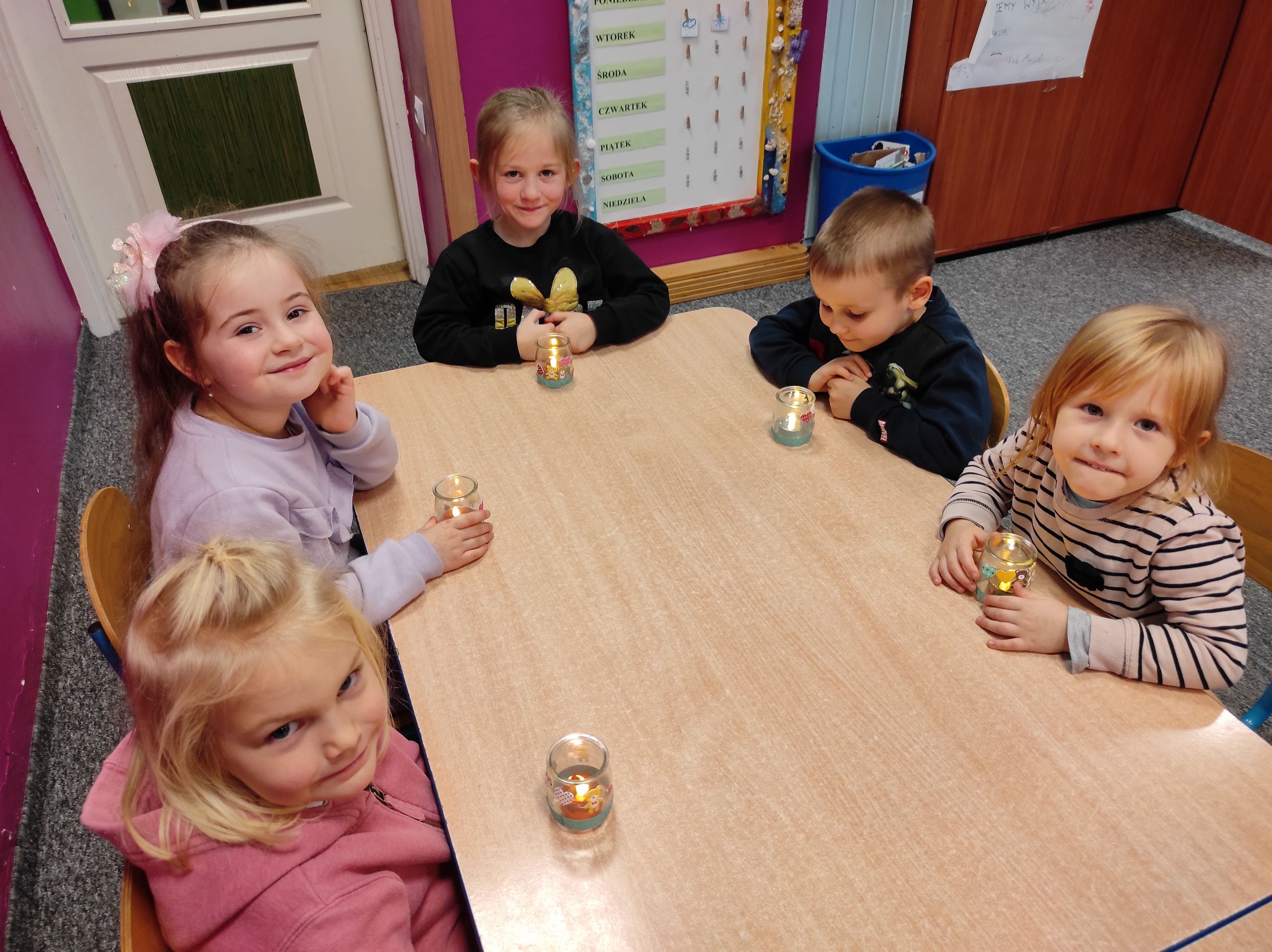 Nasze „Radosne Krasnale” przed przedstawieniem stworzyły swoje własne i jedyne w swoim rodzaju świeczniki, które umiliły im poczęstunek w sali i stworzyły wyjątkowy nastrój. Efekt przyniósł ogrom radości i dumy 🙂