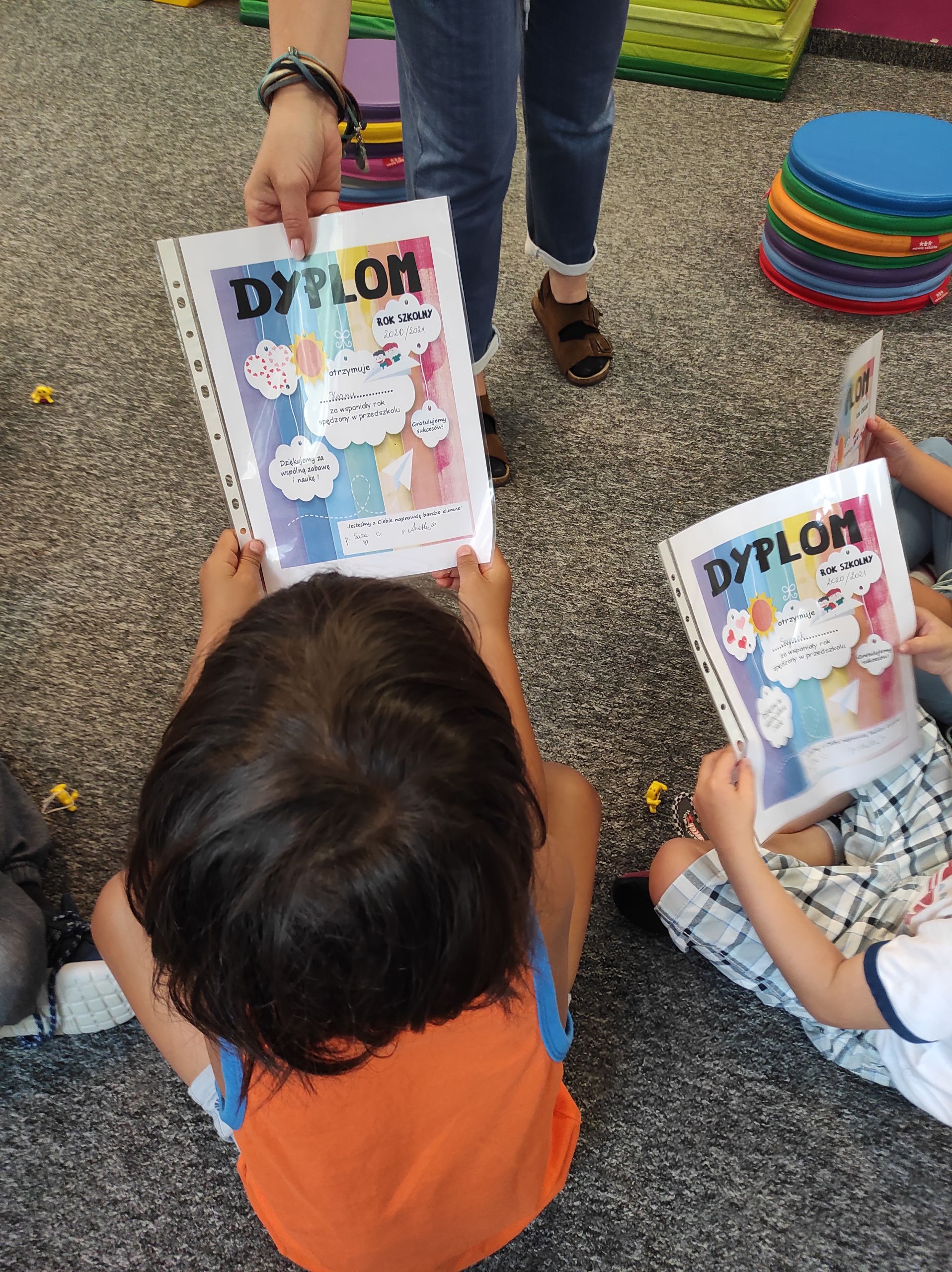 25.06.2021r. w piątek uczciliśmy rok ciężkiej pracy u naszych „Radosnych Krasnali”. Były upominki, niespodzianki oraz dyplomy – wydaje nam się, że te ostatnie uradowały dzieciaki najbardziej 🙂 Był to ważny moment, ponieważ dla części naszych podopiecznych był to ostatni rok szkolny w naszej Placówce zanim pójdą do szkół.