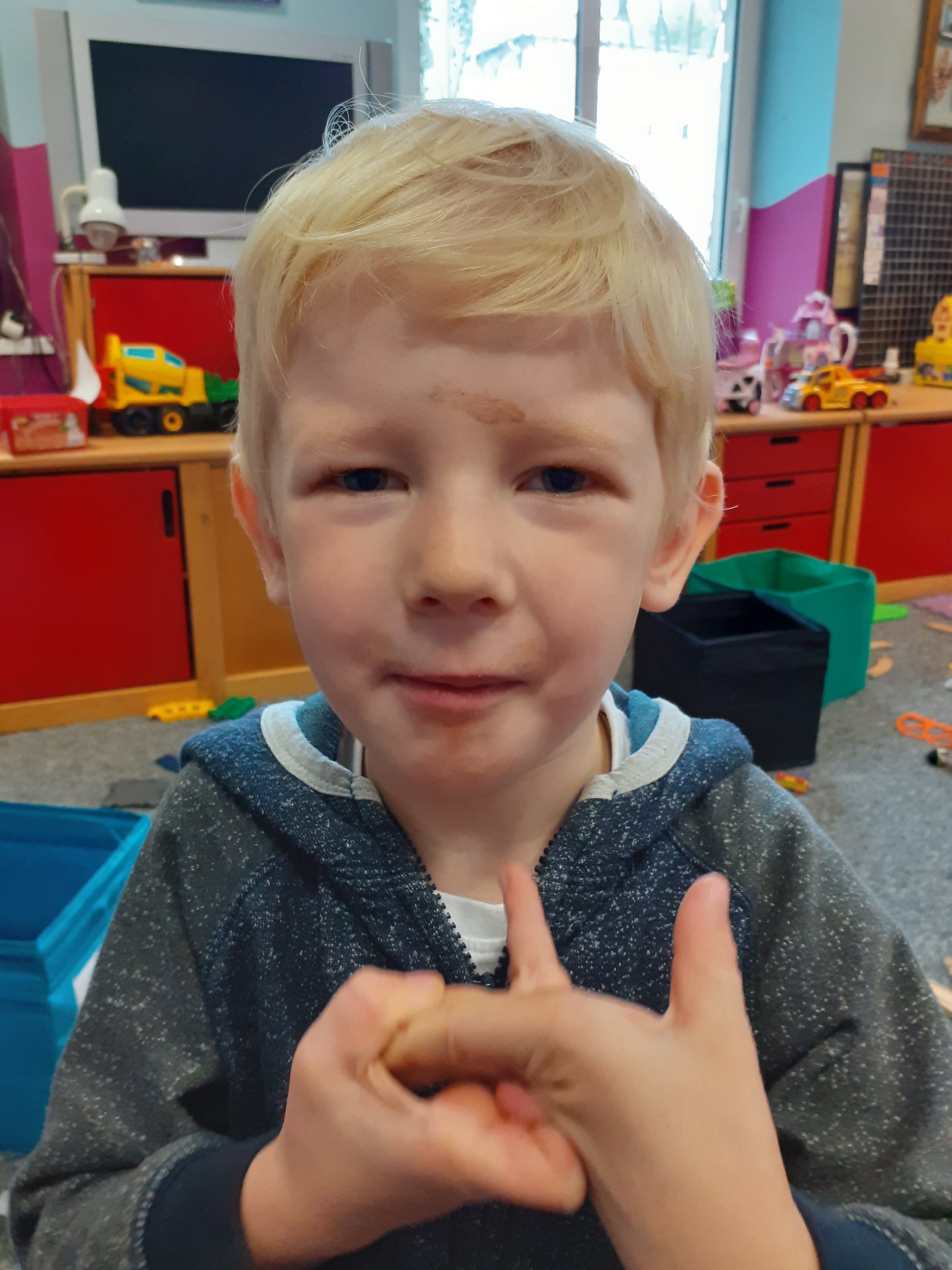 - Chłopiec jedzący suszone jabłko.