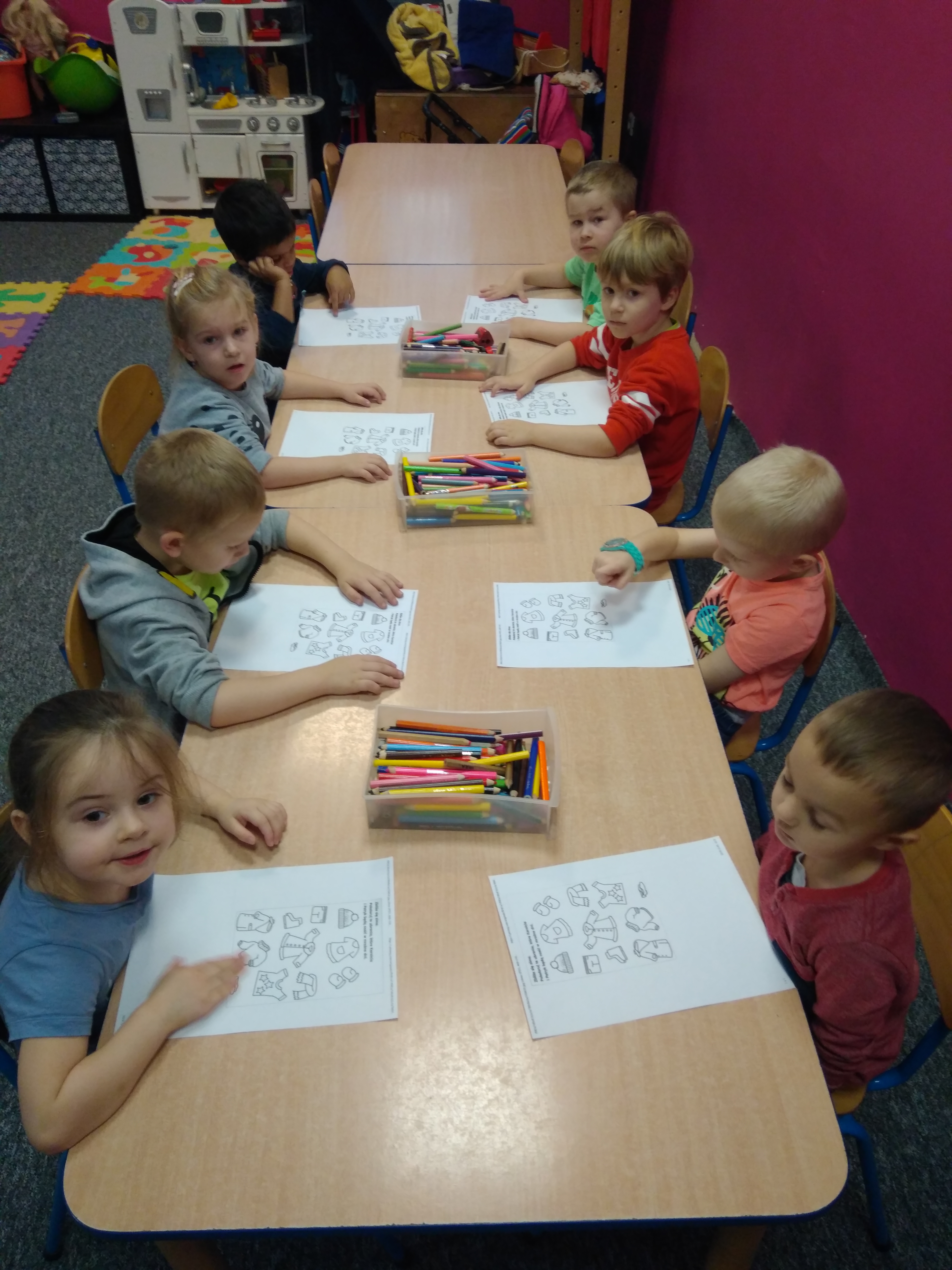 05.12.2019r. „Radosne Krasnale” zaczęły przygotowania do zimy w formie zajęć edukacyjnych oraz grafomotorycznych. Dzieci poznały oraz utrwaliły niektóre ubrania zimowe i dowiedziały się co zrobić, aby rozgrzać się w mroźne zimowe dni. Wszyscy pracowali z przyjemnością, a dodatkowo rozwijali wiele umiejętności.